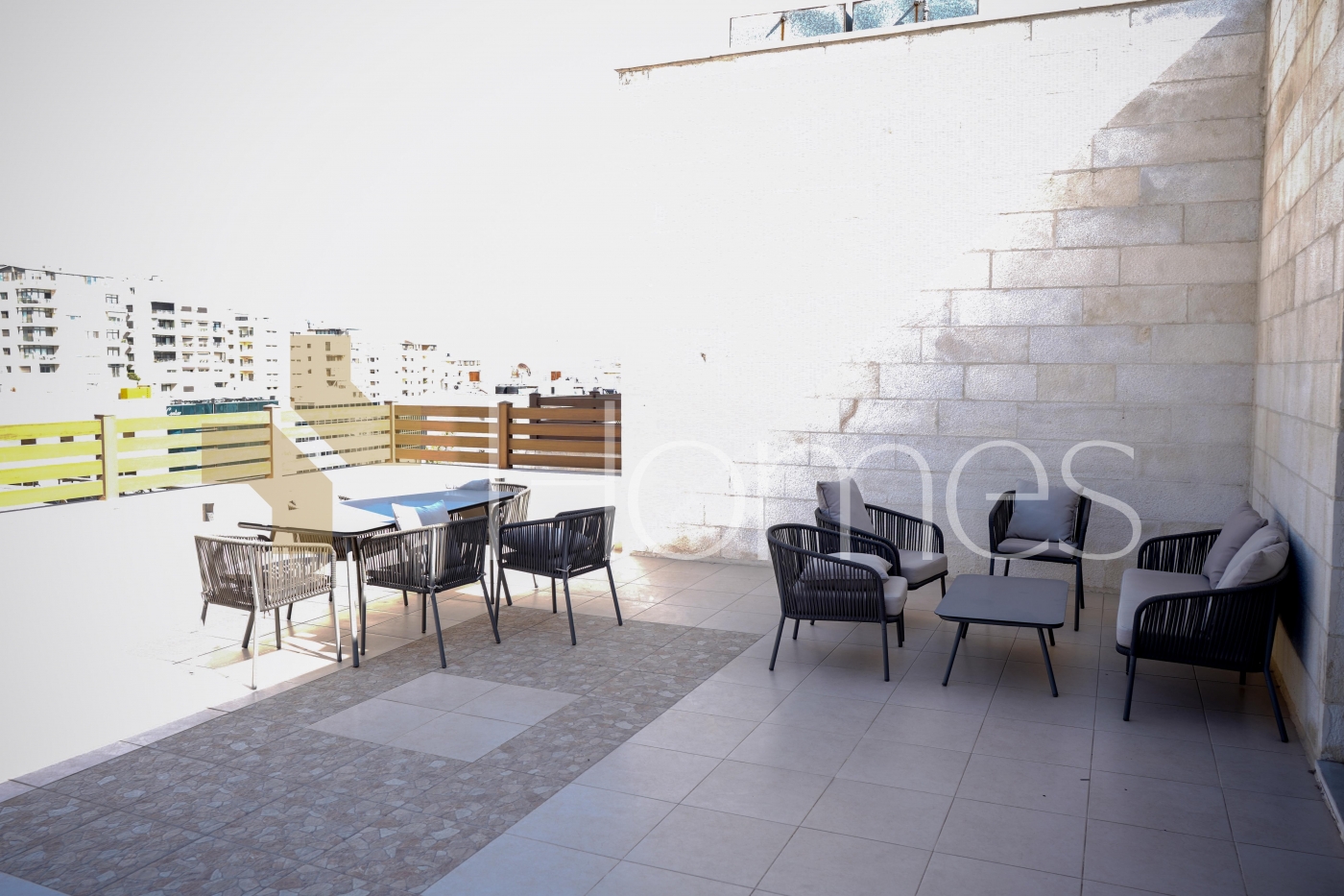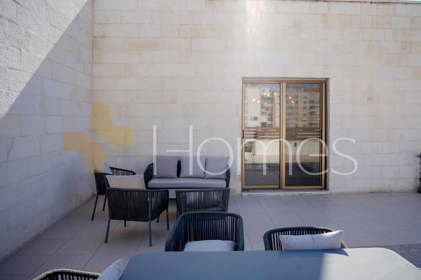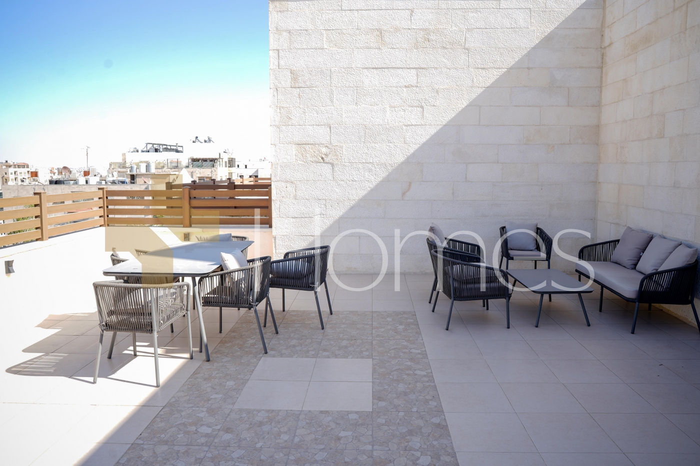 شقة اخير مع روف للايجار في جبل عمان بمساحة اجمالية 285م (مساحة بناء الروف 205م + مساحة بناء الروف 80م) بالاضافة الى مساحة ترس خارجة 30م