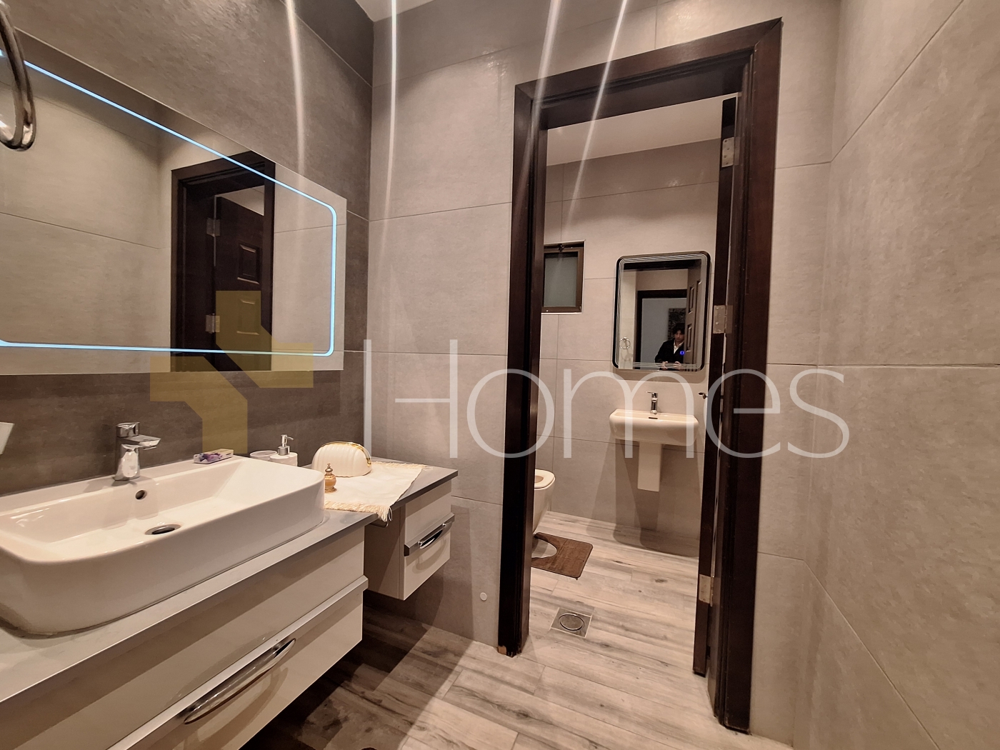 ارضيات بورسلان + رخام - تكييف مركزي - تدفئة تحت البلاط - ديكورات جبصين ndash; حمامات معلقة - ابجورات كهرباء - موقد - شاور بوكس - مصعد ndash; ابواب امان - اناره مخفيه - زجاج دبل - تشطيبات سوبر ديلكوس
