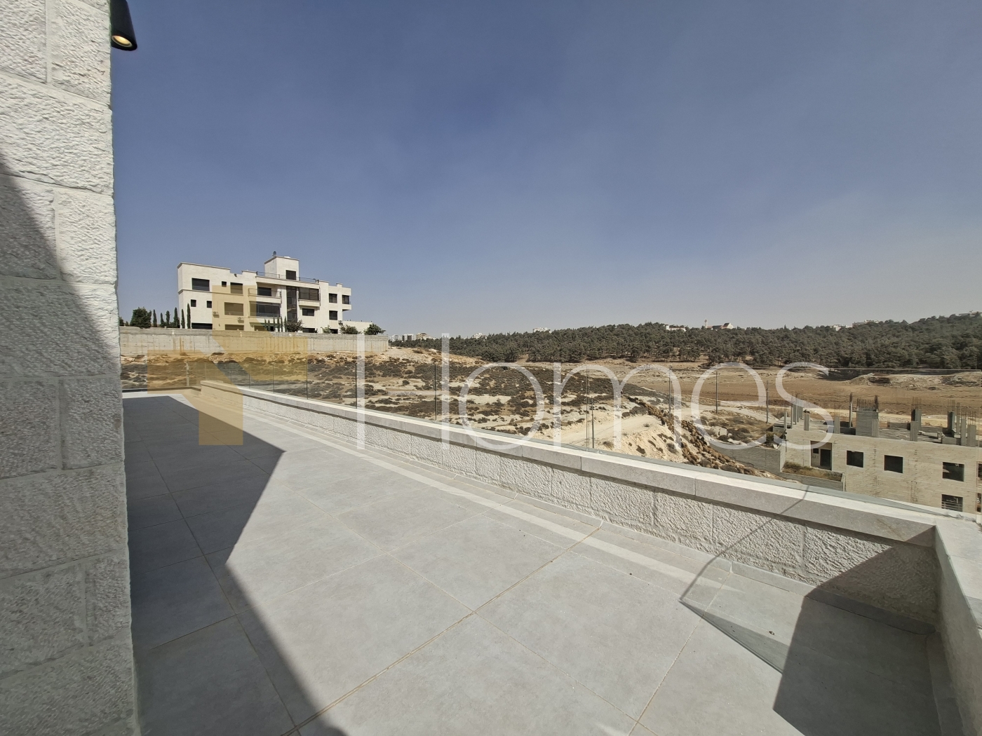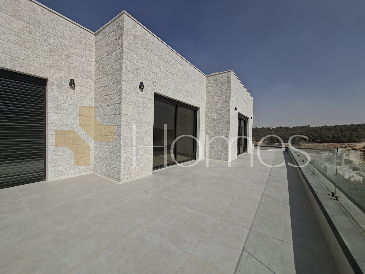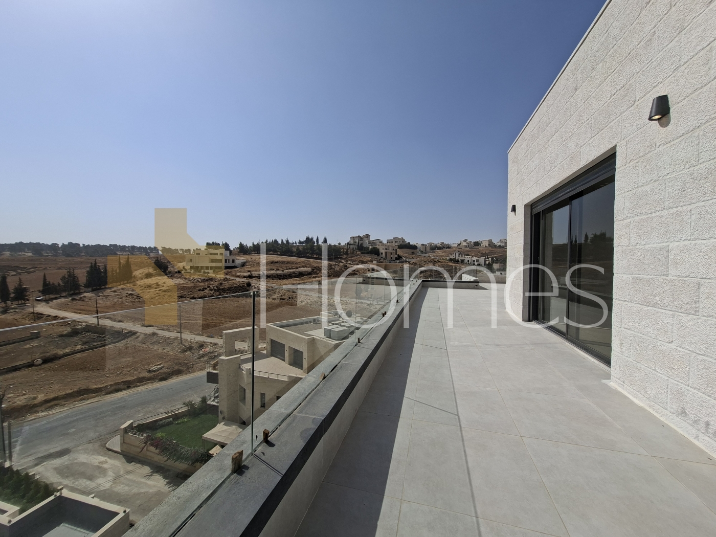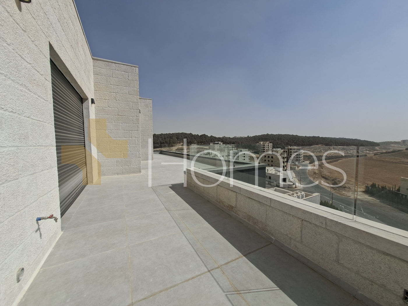 روف طابقي مع ترس باطلالة عالية للبيع في طريق المطار - الحويطي - ضمن منطقة سكن خاص بمساحة بناء 225م، بالاضافة الى مساحة ترس خارجية 175م