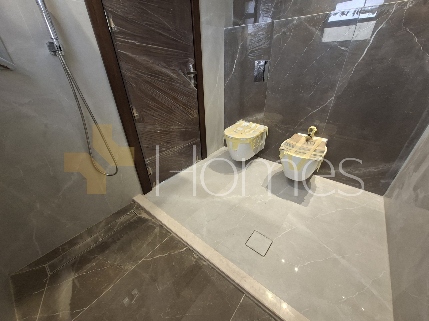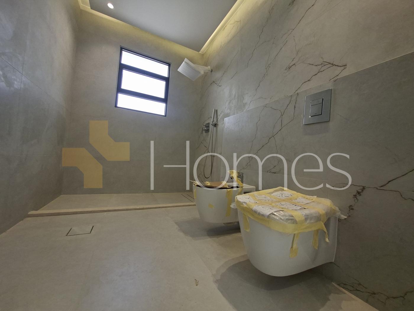 أرضيات بورسلان - وحدات تكييف + مركزي - تدفئة تحت البلاط على الغاز - ديكورات جبصين + خشبية - حمامات معلقة - اباجورات كهربائية - شاور بوكس - موقد - بئر ماء - مصعد - ابواب امان - كاميرات مراقبة - إنارة مخفية - زجاج دبل - تشطيبات سوبر ديلوكس