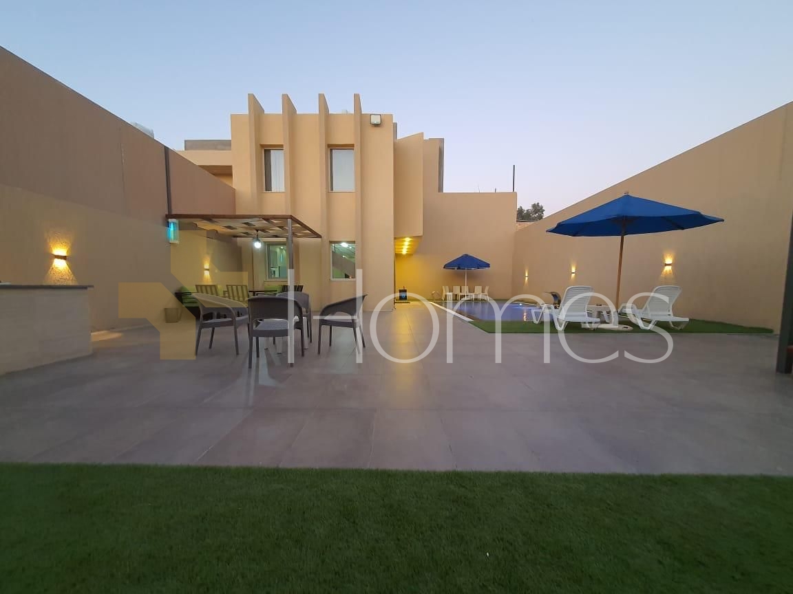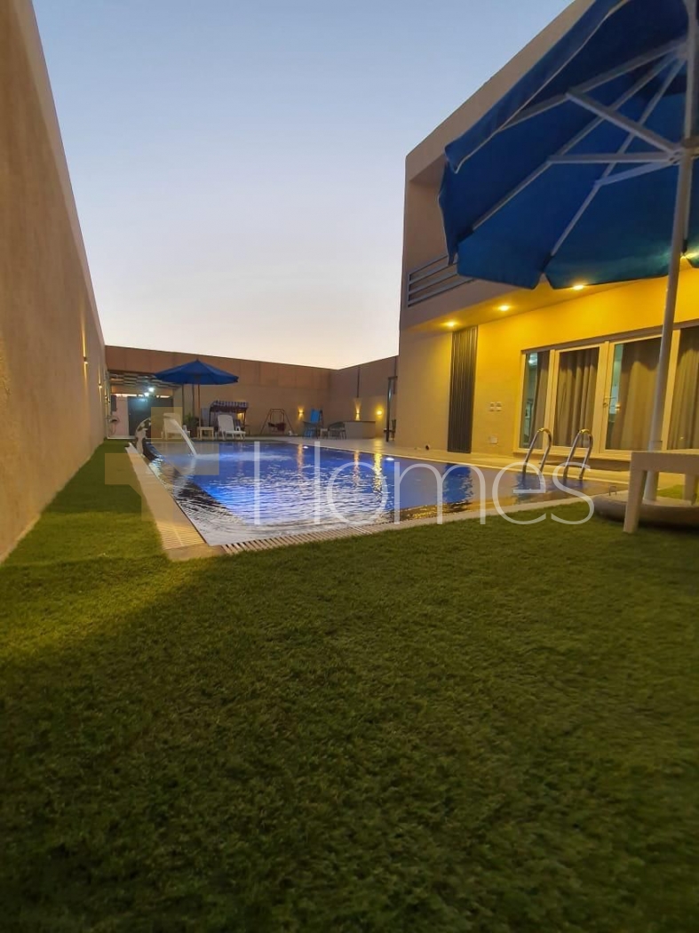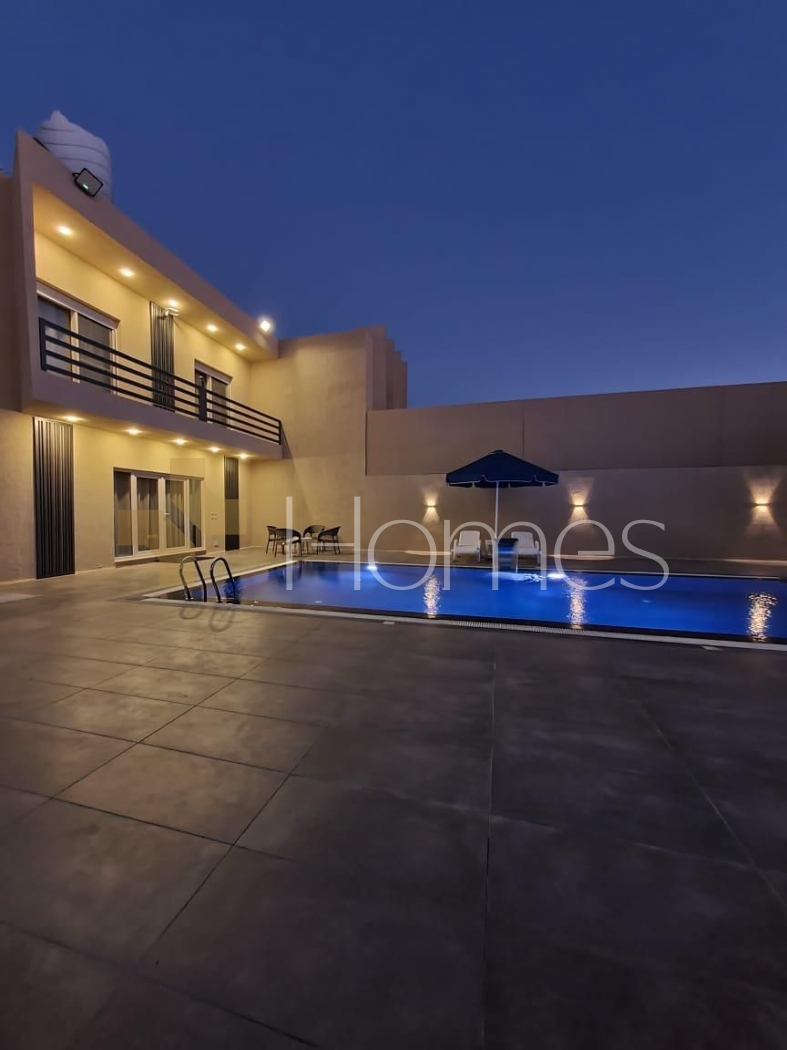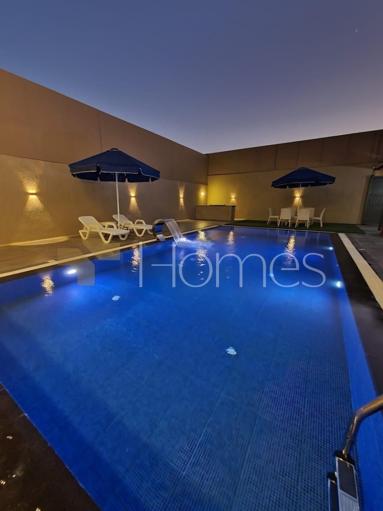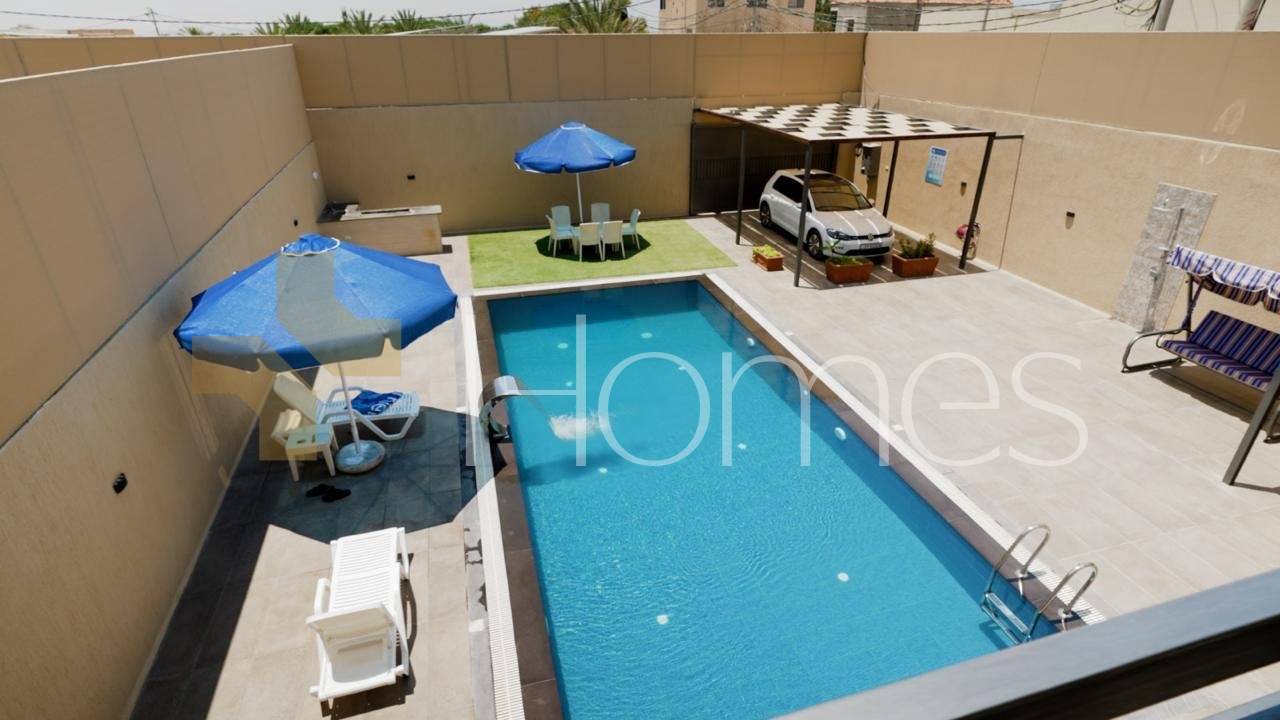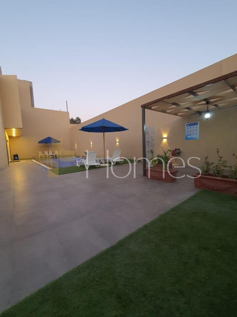 مسبح - ارضيات بورسلان - وحدات تكييف - خزائن بالحائط - ديكورات جبصين + خشبية - حمامات معلقة - شاور بوكس - كاميرات مراقبة - انارة مخفية - زجاج دبل - تشطيبات سوبر ديلوكس