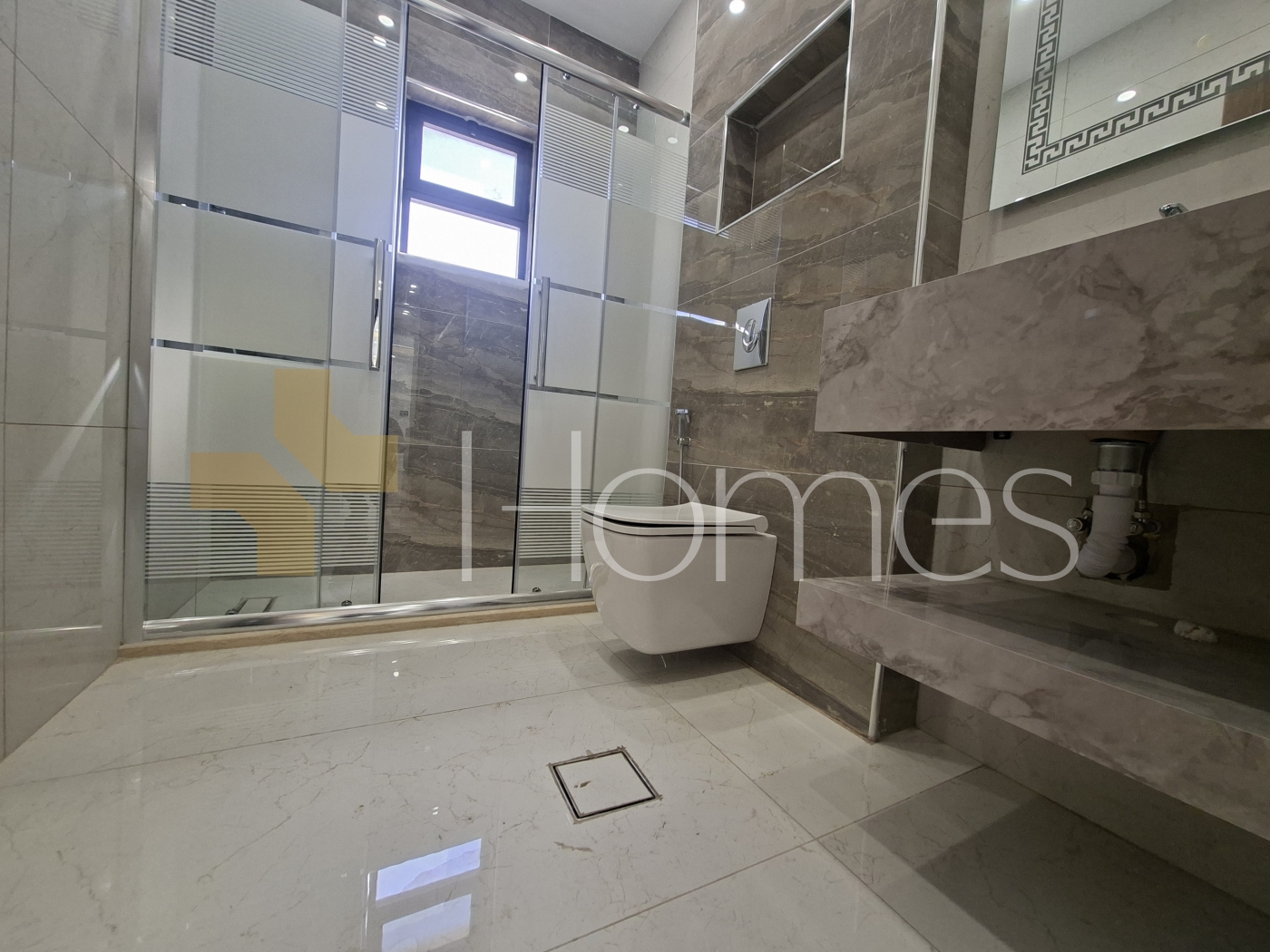 ارضيات بورسلان - تكييف وحدات - تدفئه تحت البلاط على الغاز + روديتر - ديكورات جبصين - حمامات معلقة - اباجورات كهربائية - شاور بوكس - مصعد - ابواب امان - كاميرات مراقبة - انارة مخفية - زجاج دبل - تشطيبات ديلوكس