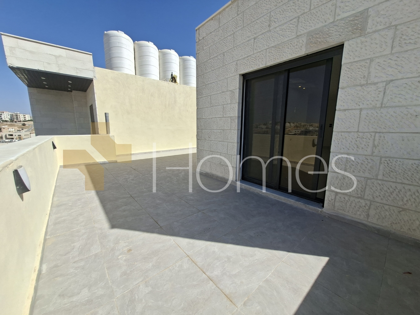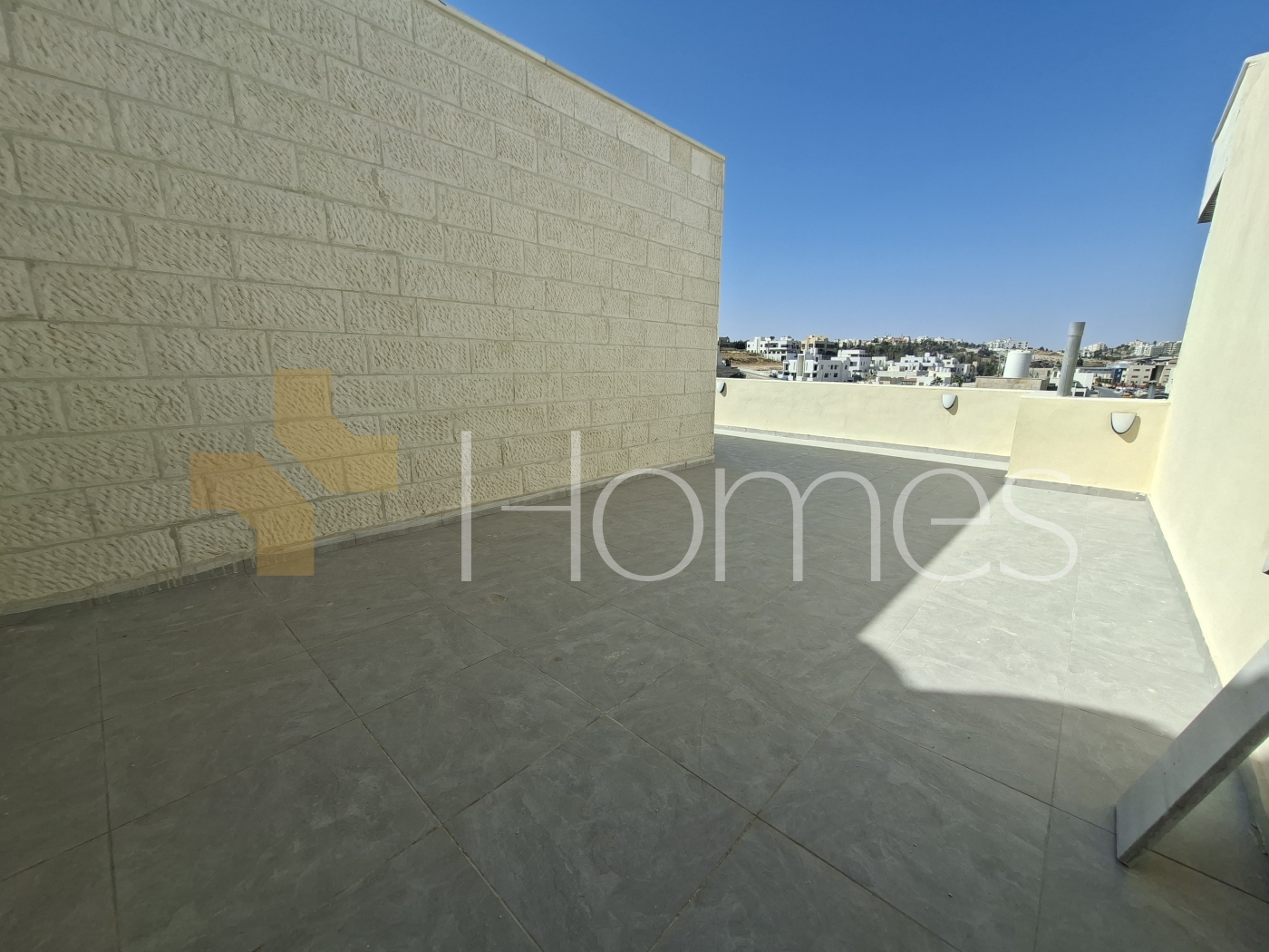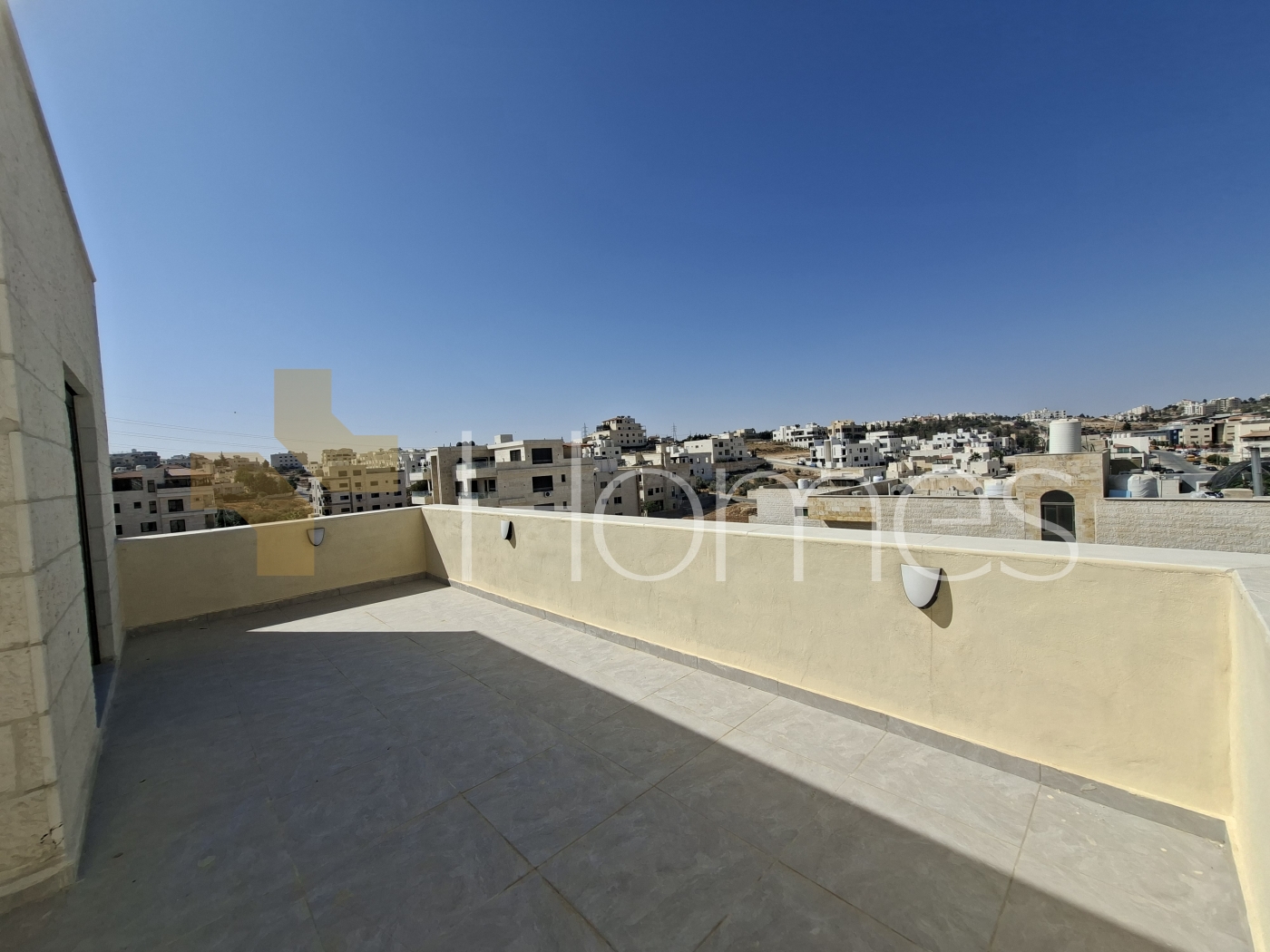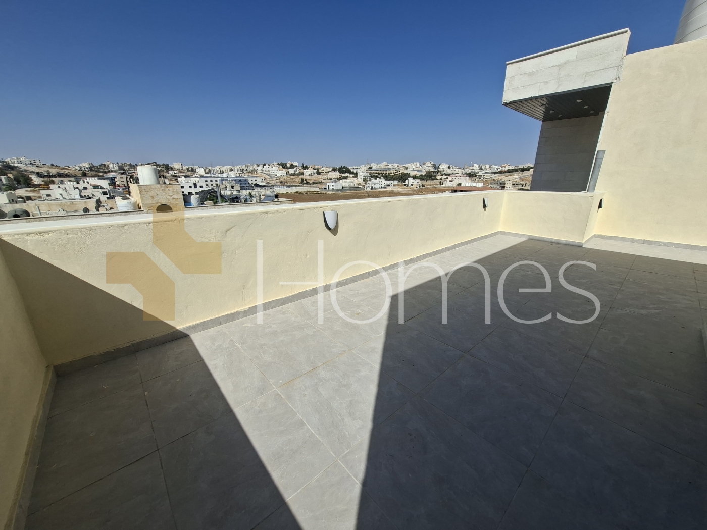شقة اخير مع روف دوبلكس باطلالة عالية للبيع في البنيات بمساحة اجمالية 232م (مساحة بناء الطابق الثالث 182م + مساحة بناء الروف 50م) بالاضافة الى مساحة ترس خارجية 50م