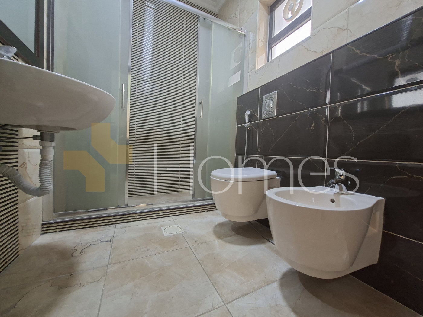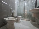 ارضيات بورسلان - وحدات تكييف - تدفئة ديزل - خزائن - مطبخ راكب - ديكورات جبصين + خشبية - حمامات معلقة - اباجورات - شاور بوكس - مصعد - ابواب امان - انارة مخفية - زجاج دبل - تشطيبات سوبر ديلوكس