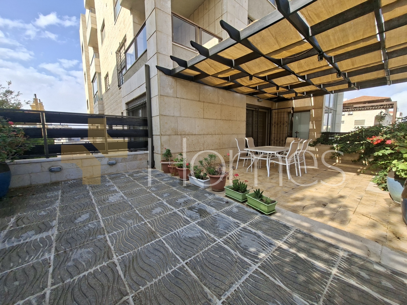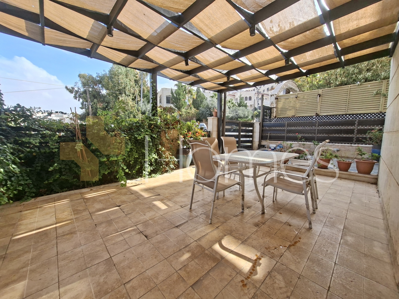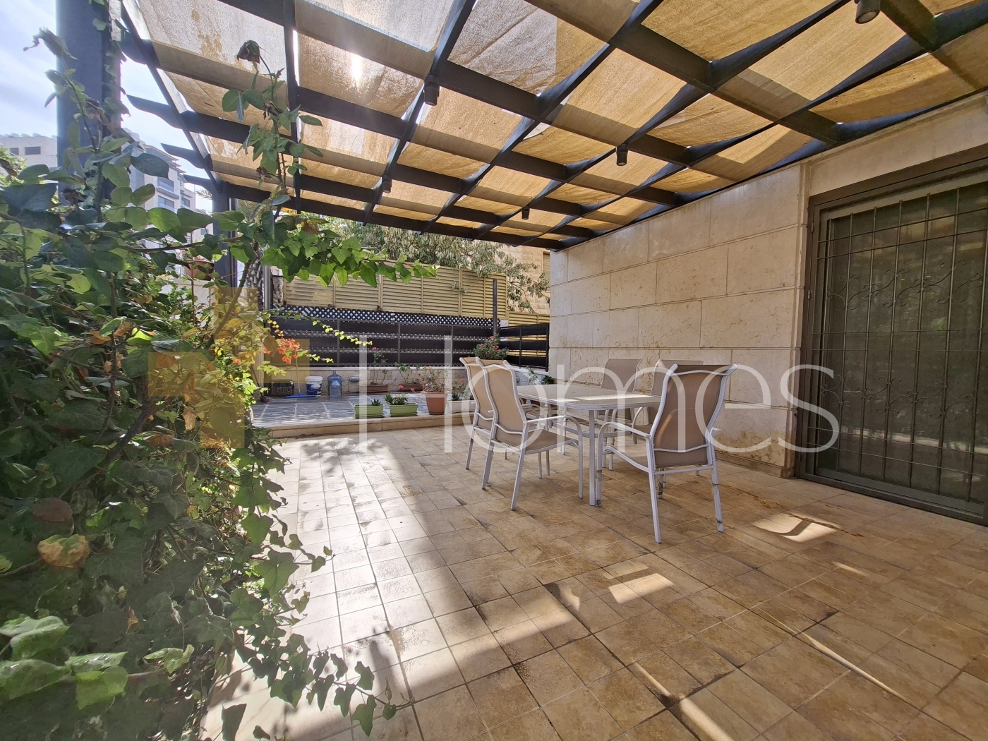 شقة ارضية مفروشة مع ترس بمدخل و كراج خاص للبيع في قرية النخيل بمساحة بناء 200م بالاضافة الى مساحة ترس خارجية 50م