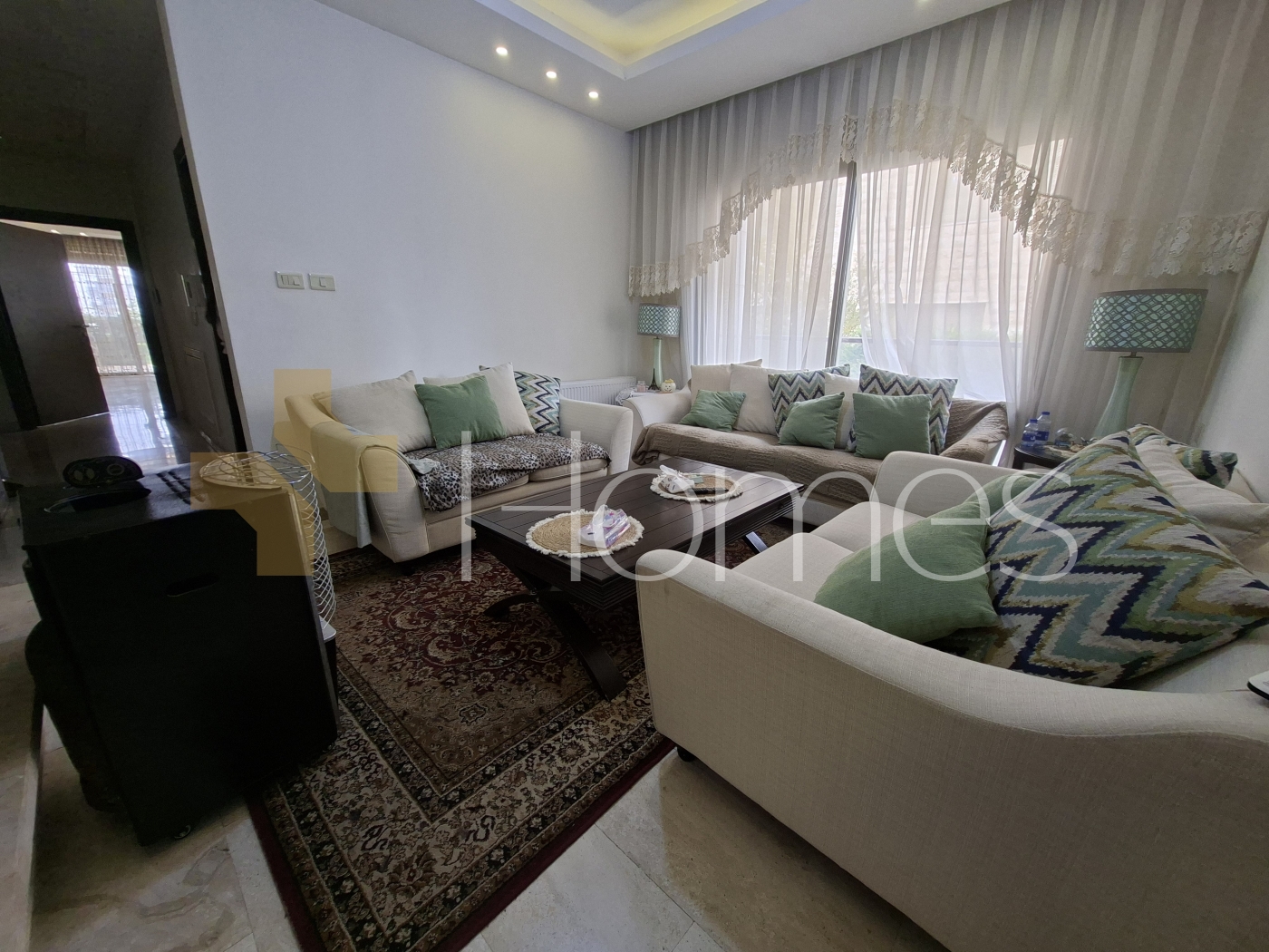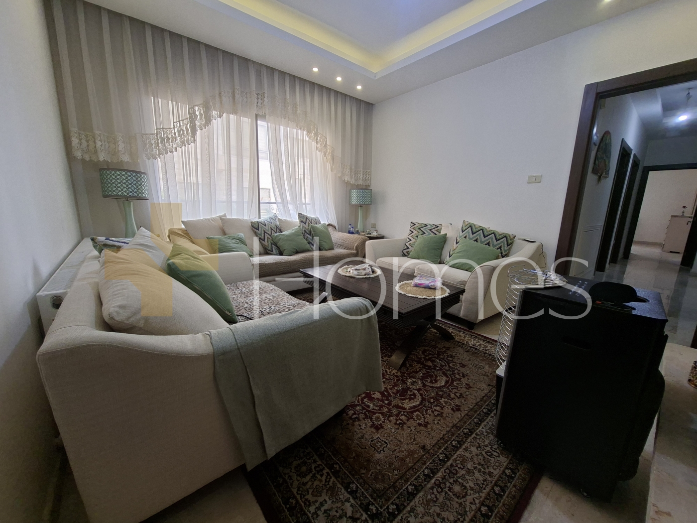 أرضيات بورسلان + رخام - وحدات تكييف - تدفئة على الغاز - مطبخ راكب - ديكورات جبصين + خشبية - حمامات معلقة - اباجورات كهربائية - شاور بوكس - موقد - مصعد - ابواب امان - كاميرات مراقبة - إنارة مخفية - زجاج دبل - تشطيبات سوبر ديلوكس