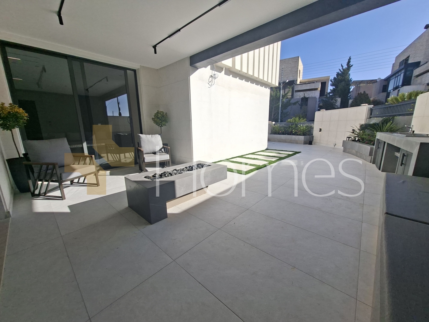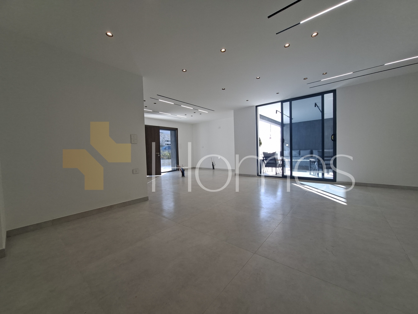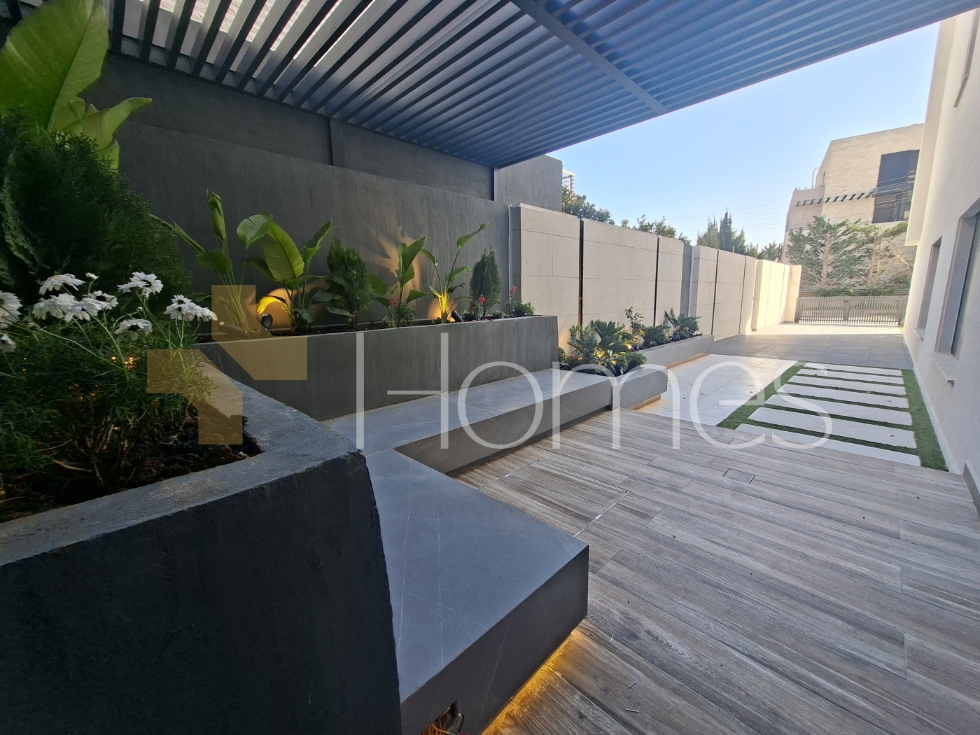 شقة مع حديقة بمدخل خاص للبيع في رجم عميش بمساحة بناء 285م، بالاضافة الى مساحة خارجية 200م (حديقة + ترس)