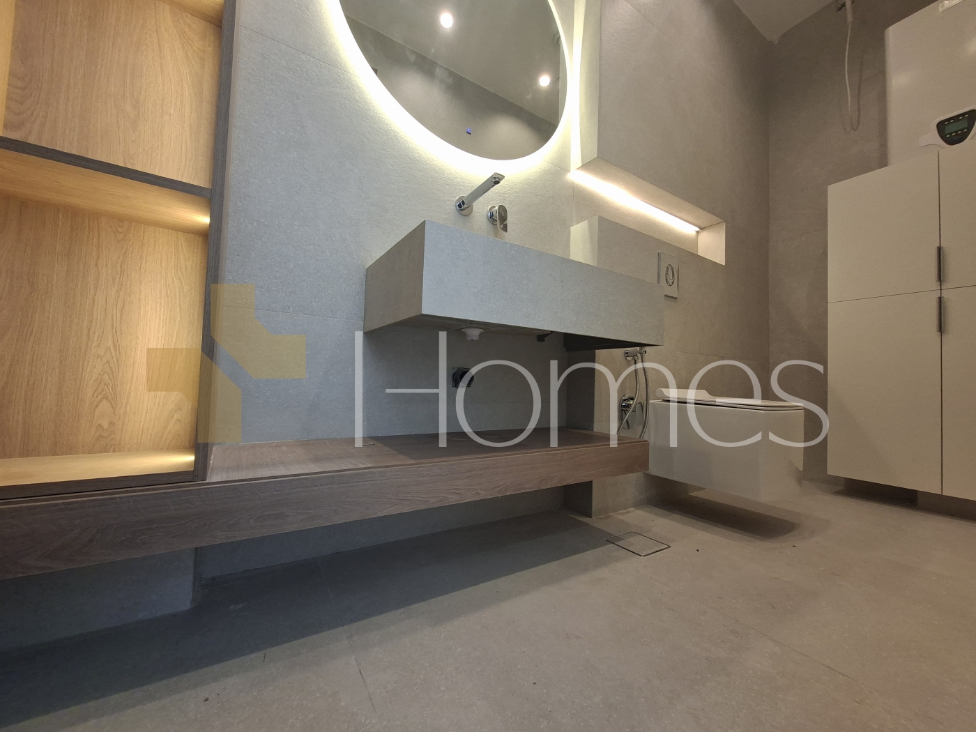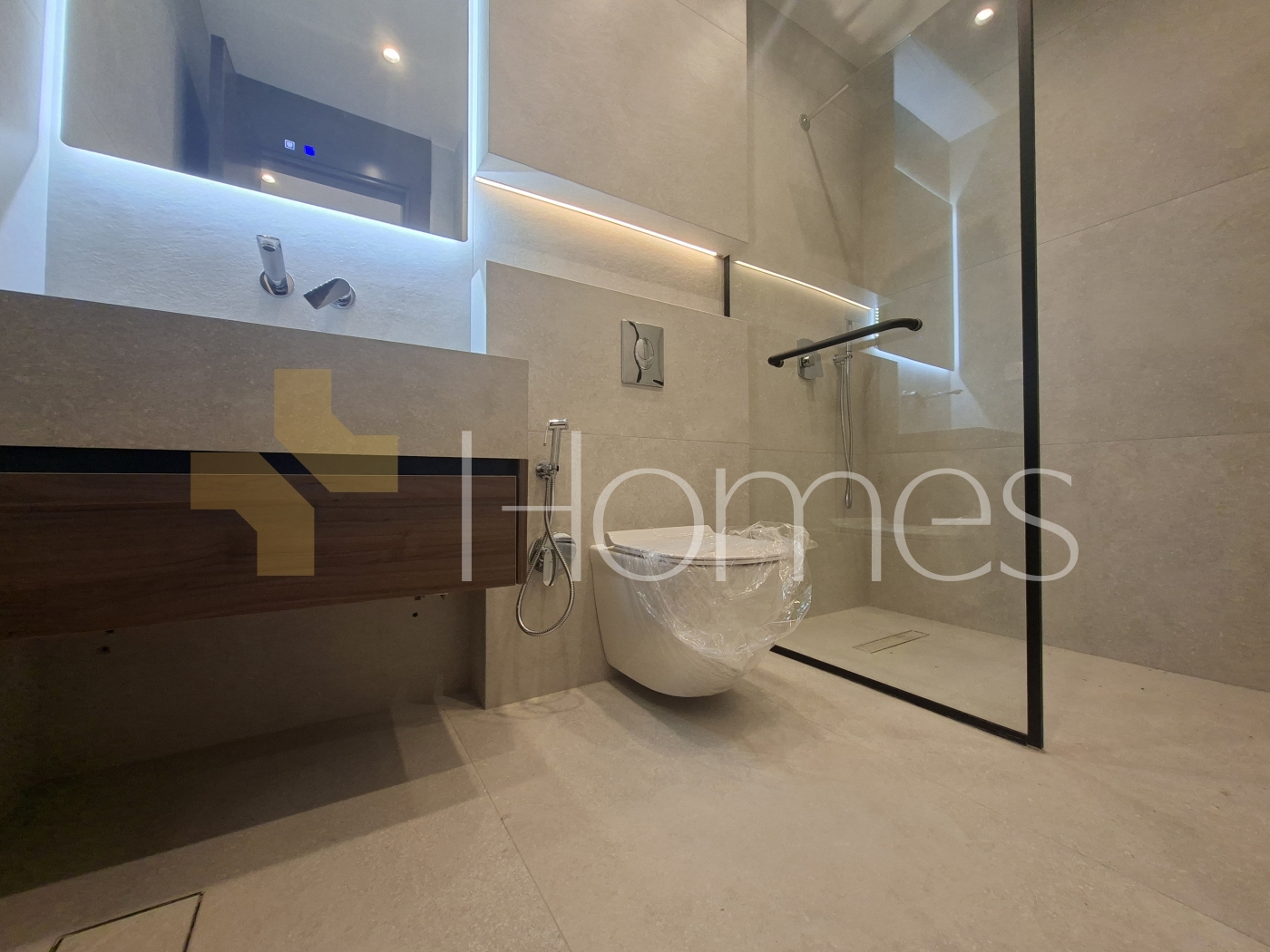 ارضيات بورسلان + رخام - تكييف مركزي + وحدات - تدفئة تحت البلاط على الغاز - ديكورات جبصين - حمامات معلقة - اباجورات كهربائية - شاور بوكس - موقد - مصعد - ابواب امان - كاميرات مراقبة - انارة مخفية - زجاج دبل - تشطيبات سوبر ديلوكس