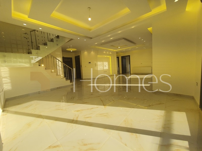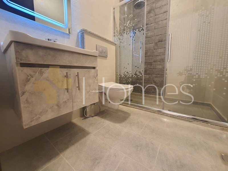 ارضيات بورسلان - تاسيس تكييف ndash; تدفئه غاز - ديكورات جبصين ndash; حمامات معلقة - ابجورات كهرباء - شاور بوكس - كراج - مصعد ndash; ابواب امان - زجاج دبل - تشطيبات سوبر ديلوكس - اطلالة خلابة