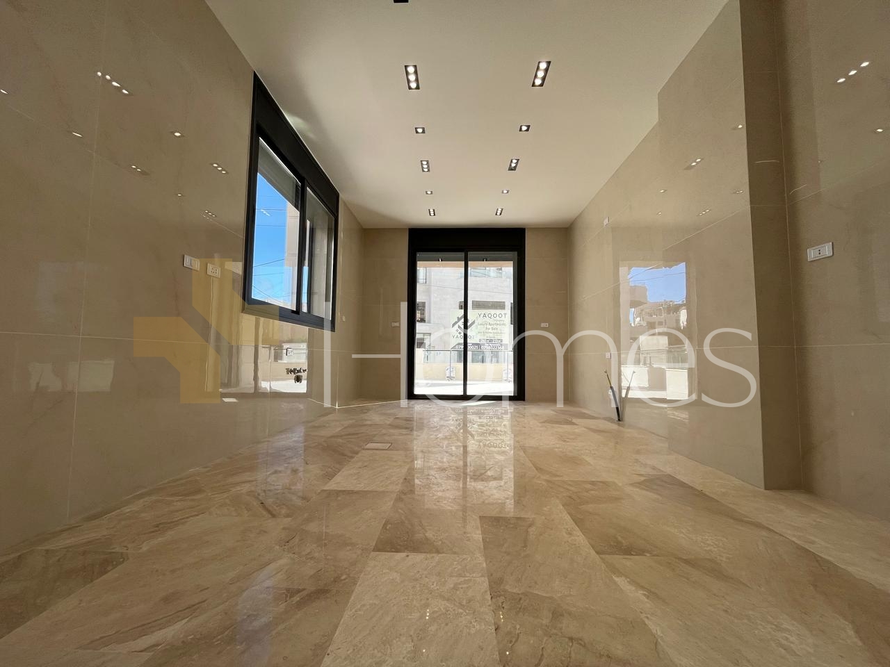 ارضيات بورسلان - تكييف مركزي - تدفئة تحت البلاط على الغاز - ديكورات جبصين + خشبية + حجرية - حمامات معلقة - اباجورات كهربائية - شاور بوكس - موقد - مصعد - ابواب امان - انارة مخفية - زجاج دبل - تشطيبات سوبر ديلوكس