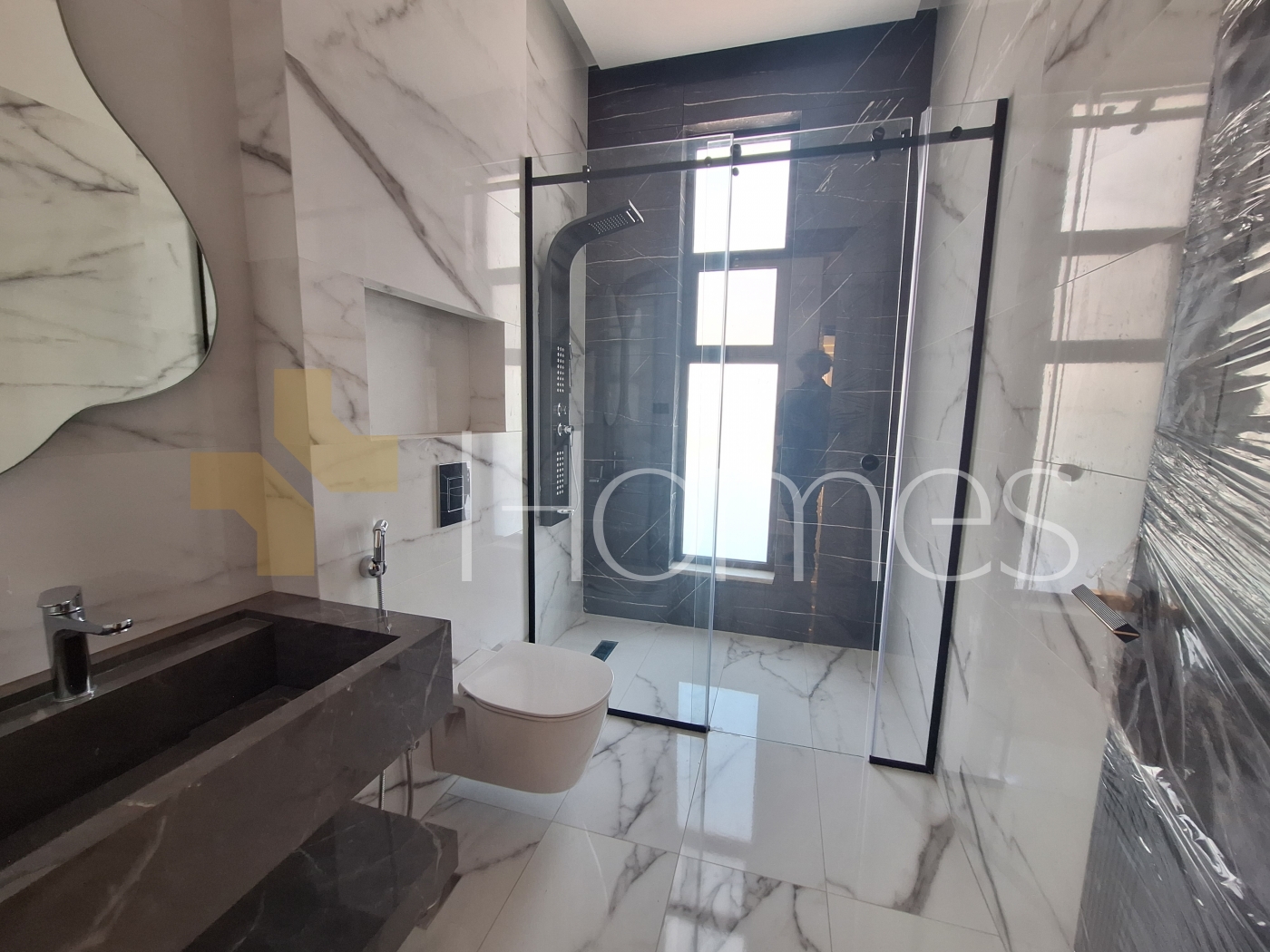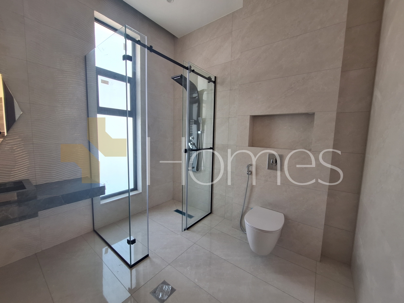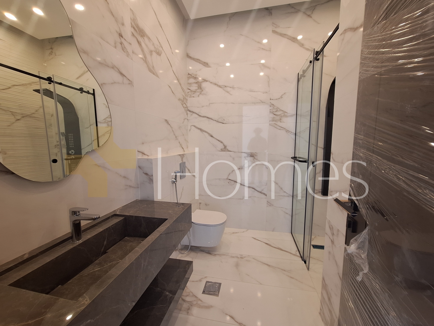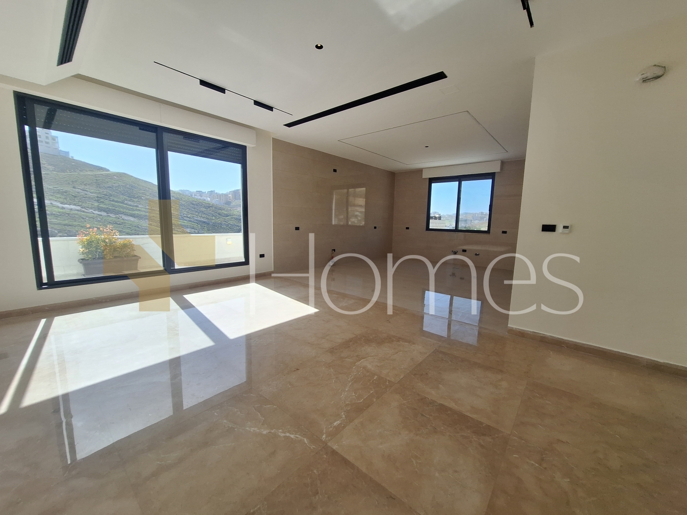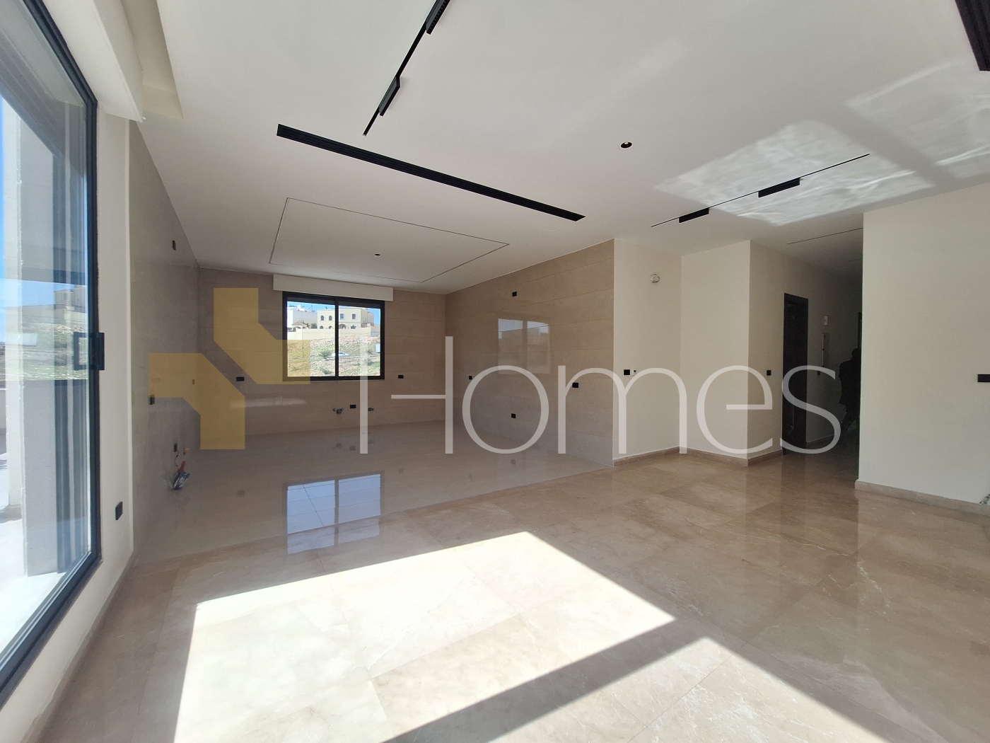 ارضيات رخام - تكييف مركزي - تدفئة تحت البلاط - زجاج دبل - تشطيبات سوبر ديلوكس - ديكورات جبصين - حمامات معلقة - اباجورات كهرباء - شاور بوكس - مصعد - انارة سبوت لايت - تقع في حي هادئ
