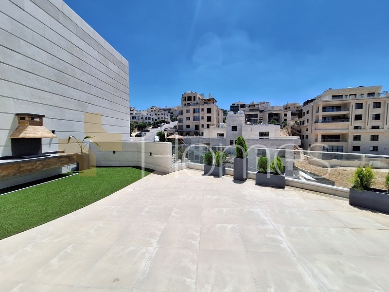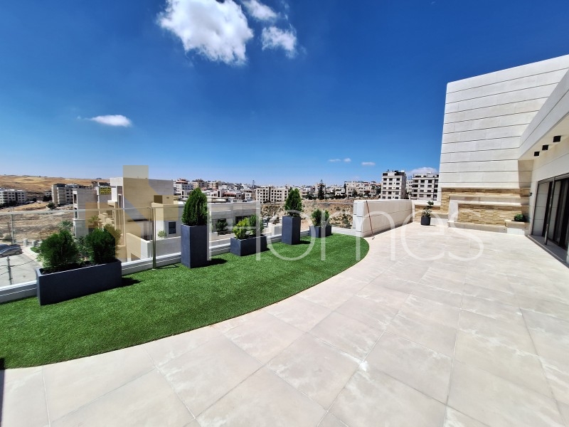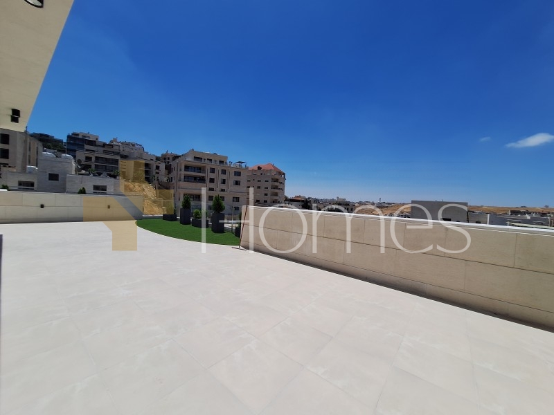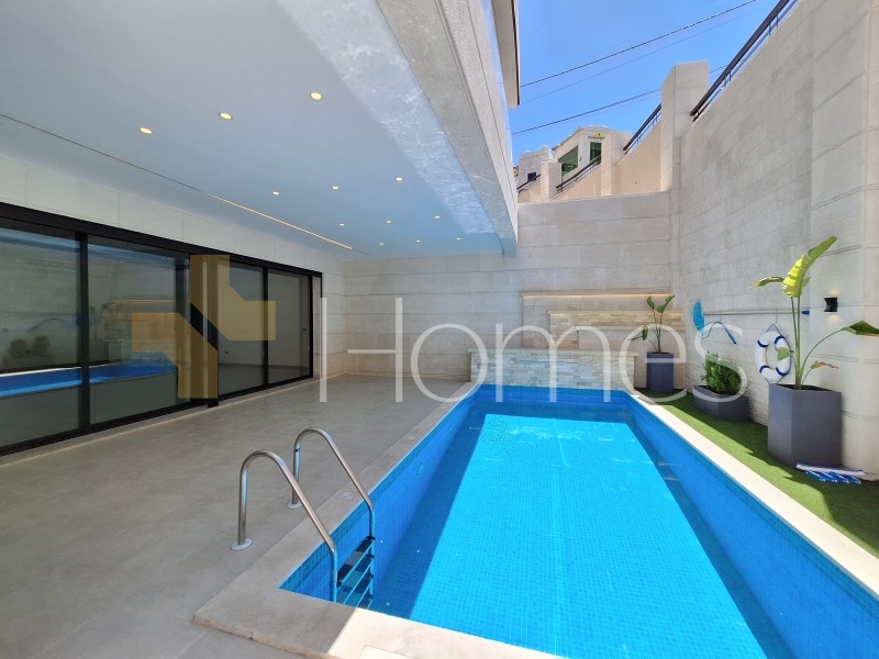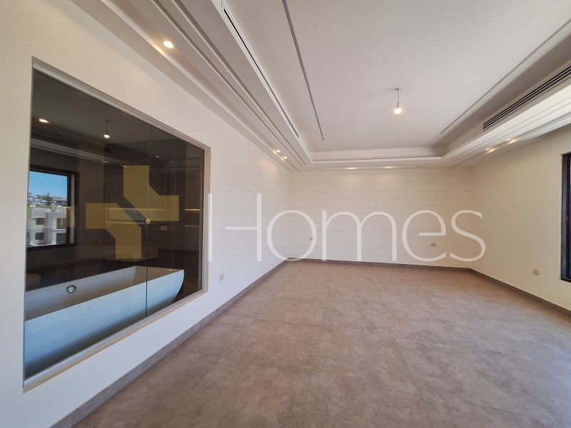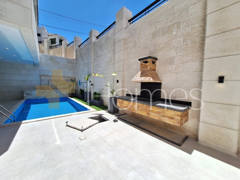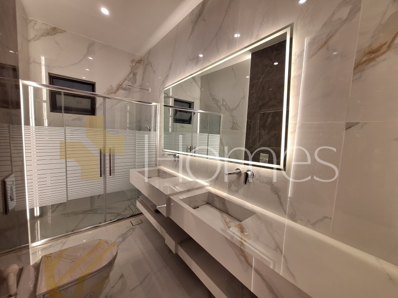 ارضيات بورسلان + رخام - تكييف مركزي - تدفئة تحت البلاط على الغاز - ديكورات جبصين + خشبية + حجرية - حمامات معلقة - اباجورات كهربائية - شاور بوكس - موقد - بئر ماء - مصعد - ابواب امان - كاميرات مراقبة - انارة مخفية - زجاج دبل - تشطيبات سوبر ديلوكس