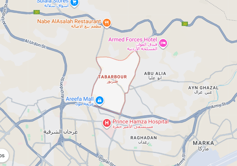 كان الأبرز في حديثنا عن دابوق هو قصر الحسينية المقر السكني لجلالة الملك عبدالله الثاني، بينما احتضنت طبربور مكتب القائد الأعلى للقوات المسلحة جلالة الملك عبدالله الثاني الذي يوجد في مقر القيادة العامة للقوات المسلحة الأردنية، ولكن الفرق أن السكن في طبربور لا يحتاج الحصول على موافقة أمنية كما في دابوق.