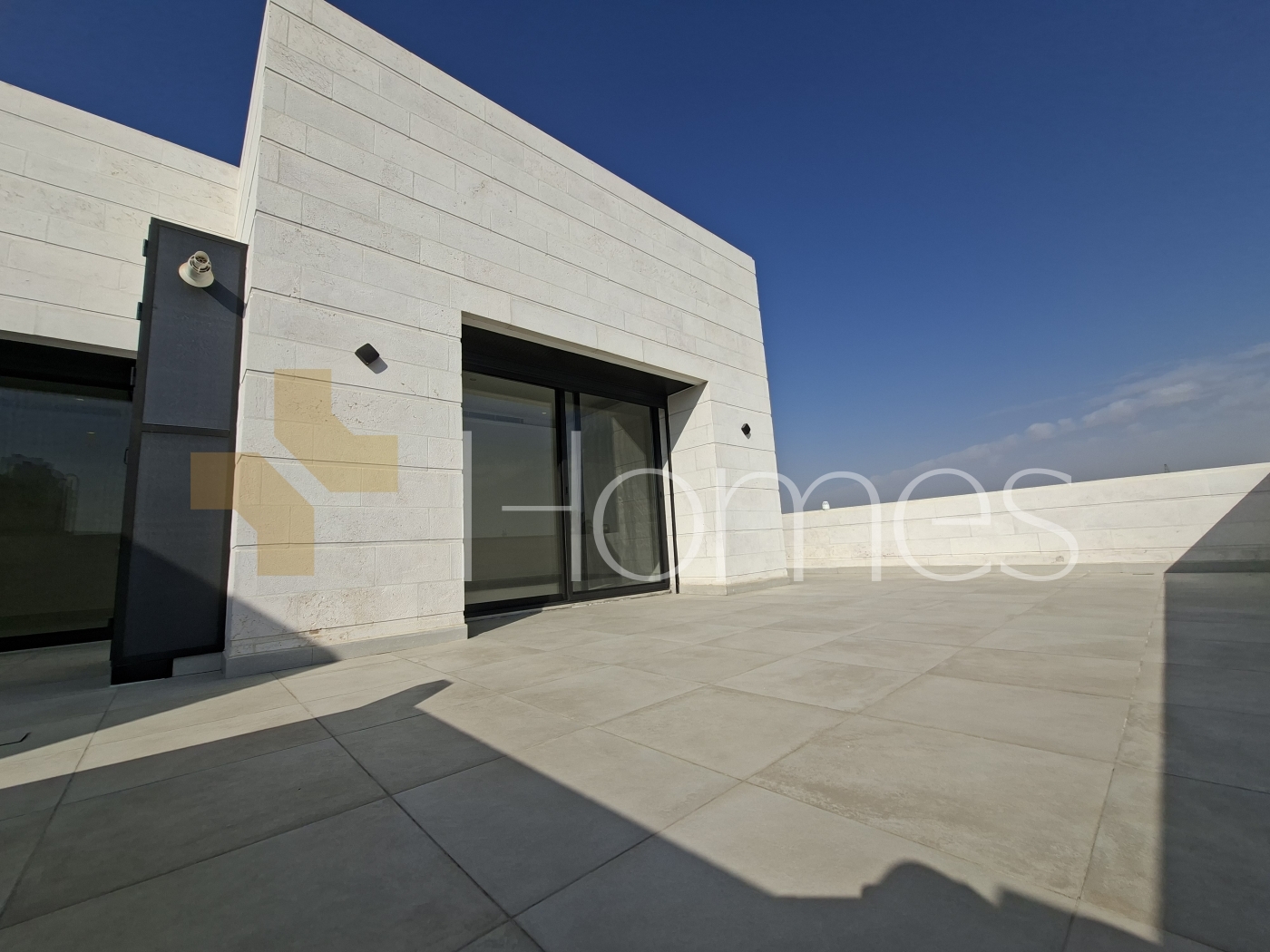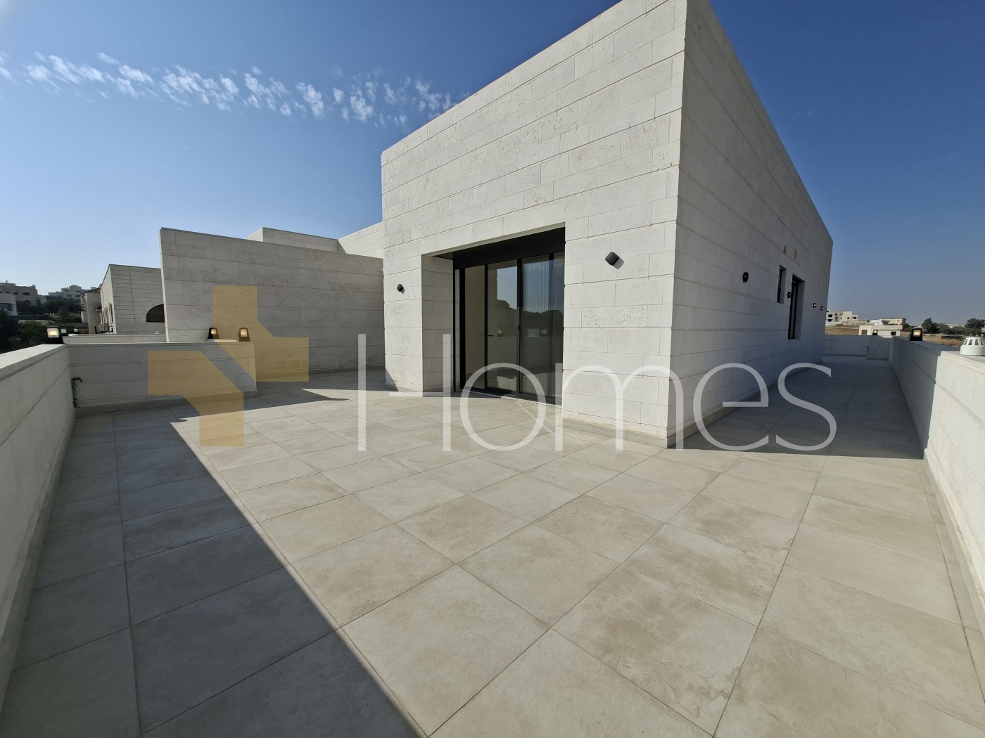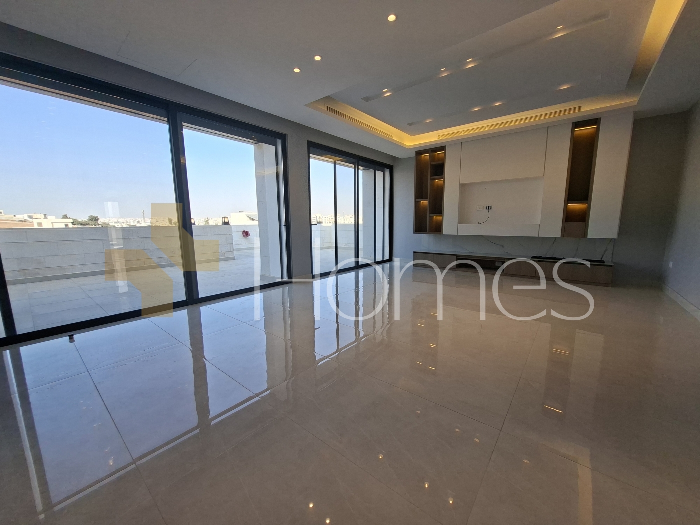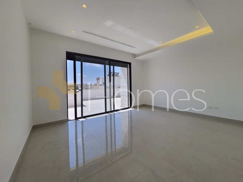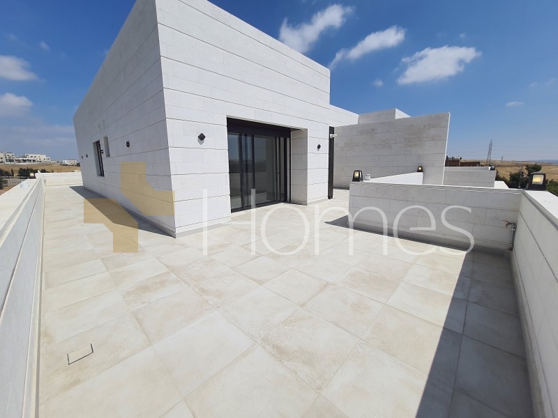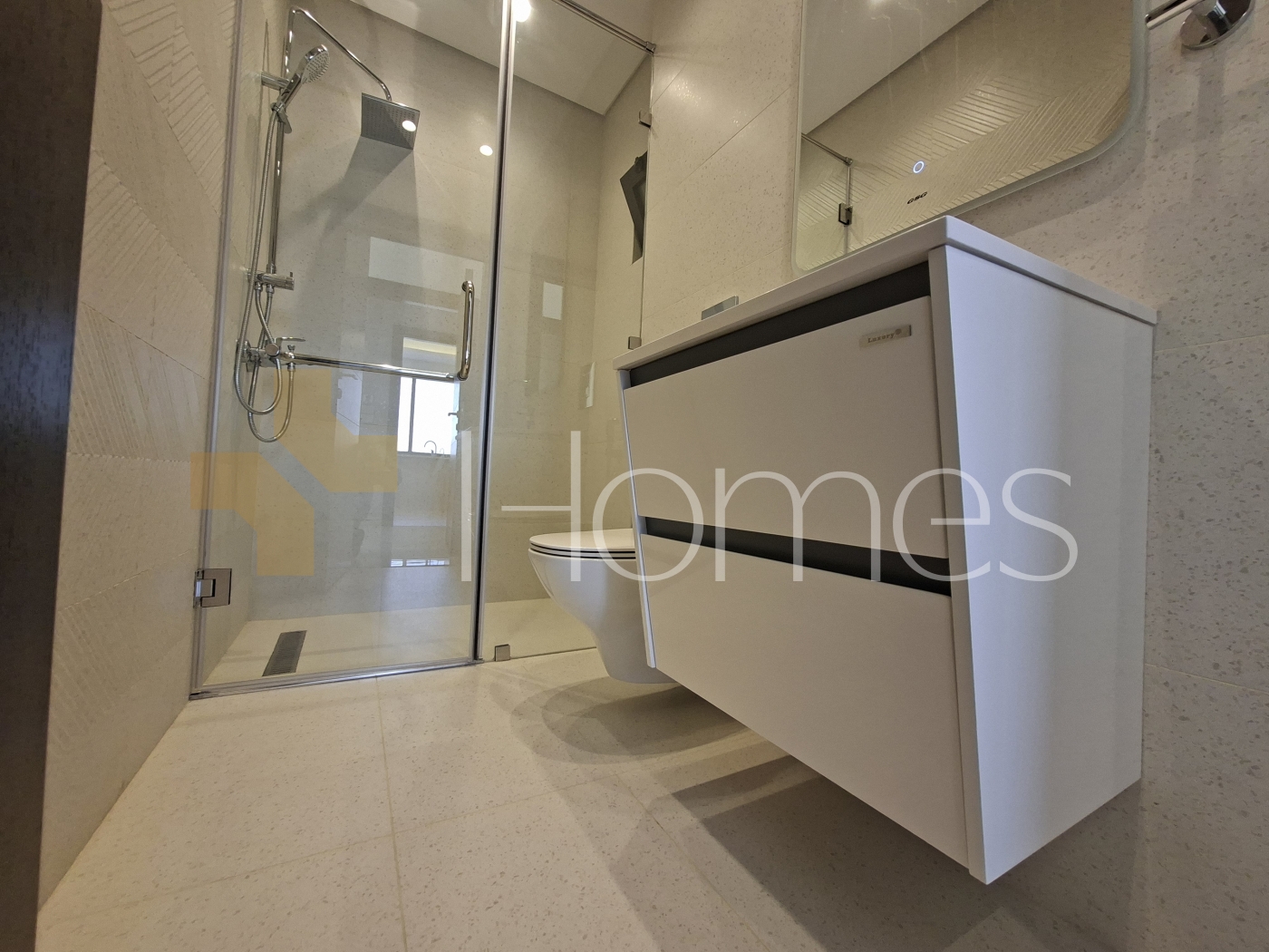ارضيات بورسلان - تكييف مركزي - تدفئه تحت البلاط على الغاز - ديكورات جبصين + خشبية - حمامات معلقة - اباجورات كهربائية - شاور بوكس - موقد - بئر ماء - مصعد - ابواب امان - كاميرات مراقبة - انارة مخفية - زجاج دبل - تشطيبات سوبر ديلوكس