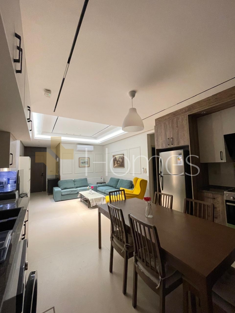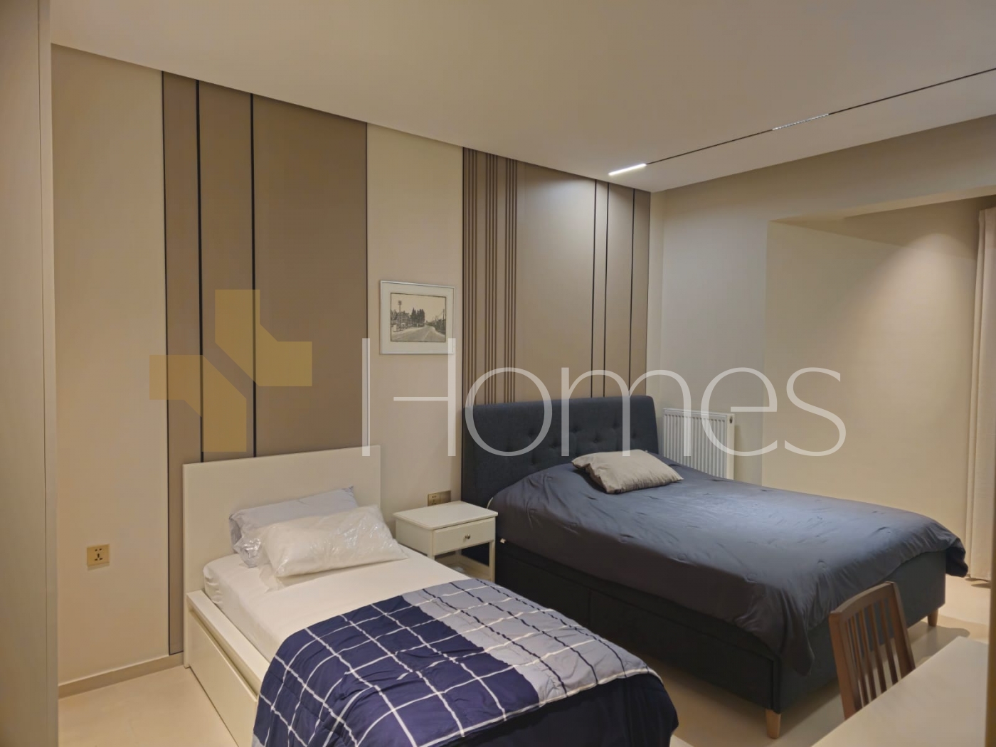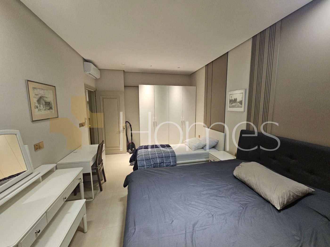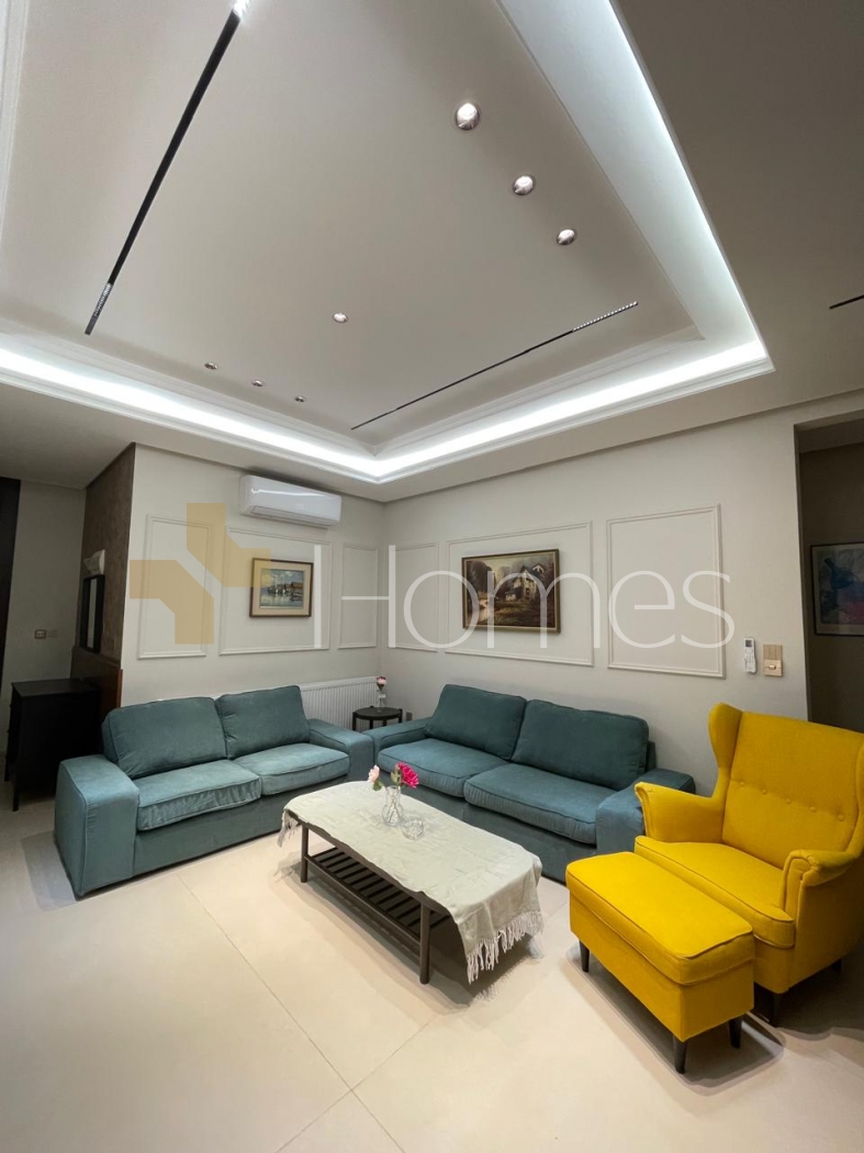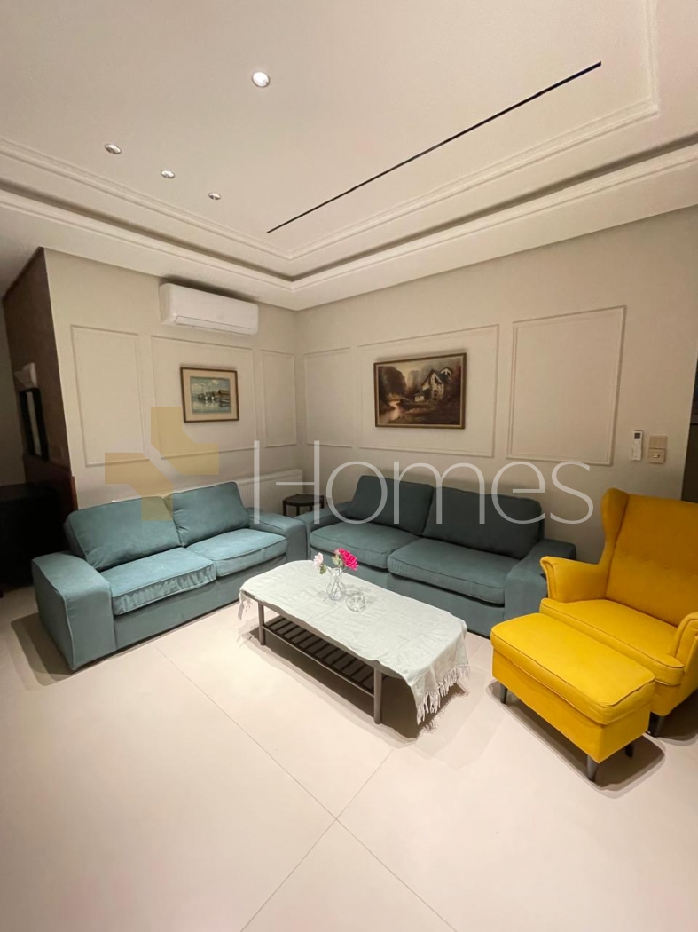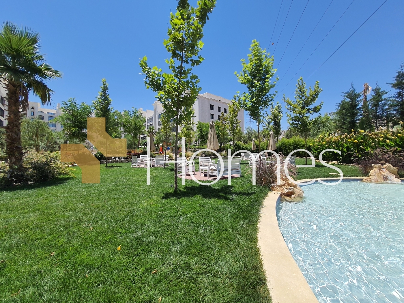 شقة مفروشة طابق ثاني ضمن كمباوند مع مسبح مشترك و مساحات خارجية واسعة للايجار في طريق المطار بمساحة بناء 105م