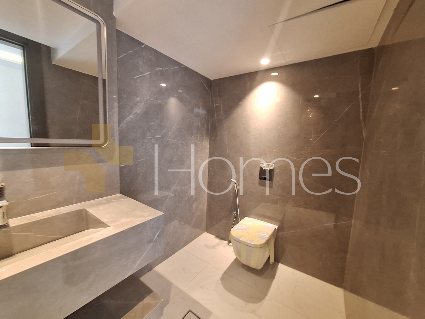 ارضيات بورسلان - تكييف مركزي - مطبخ راكب - خزائن - ديكورات جبصين + خشبية + حجرية - ابواب امان - حمامات معلقة - اباجورات كهربائية - شاور بوكس - مصعد - انارة مخفية - تشطيبات ديلوكس