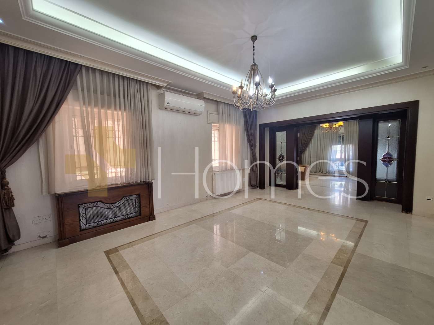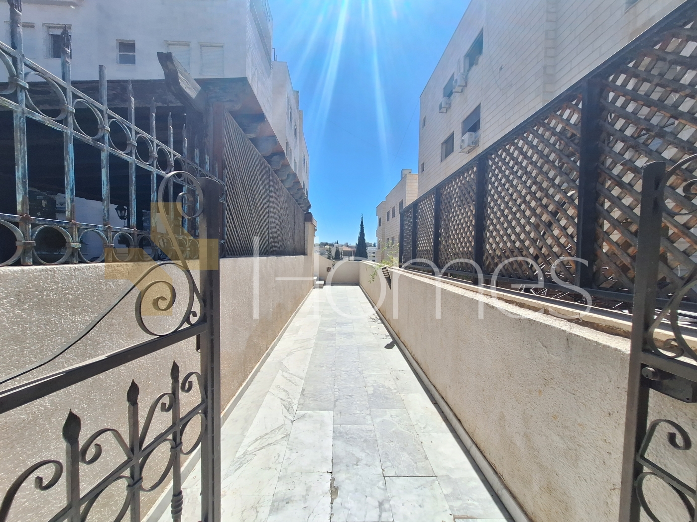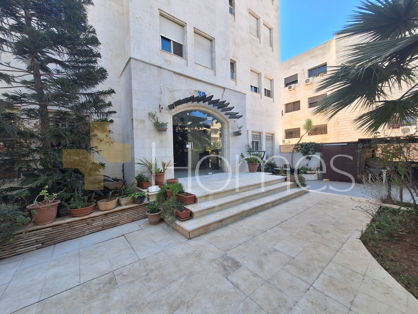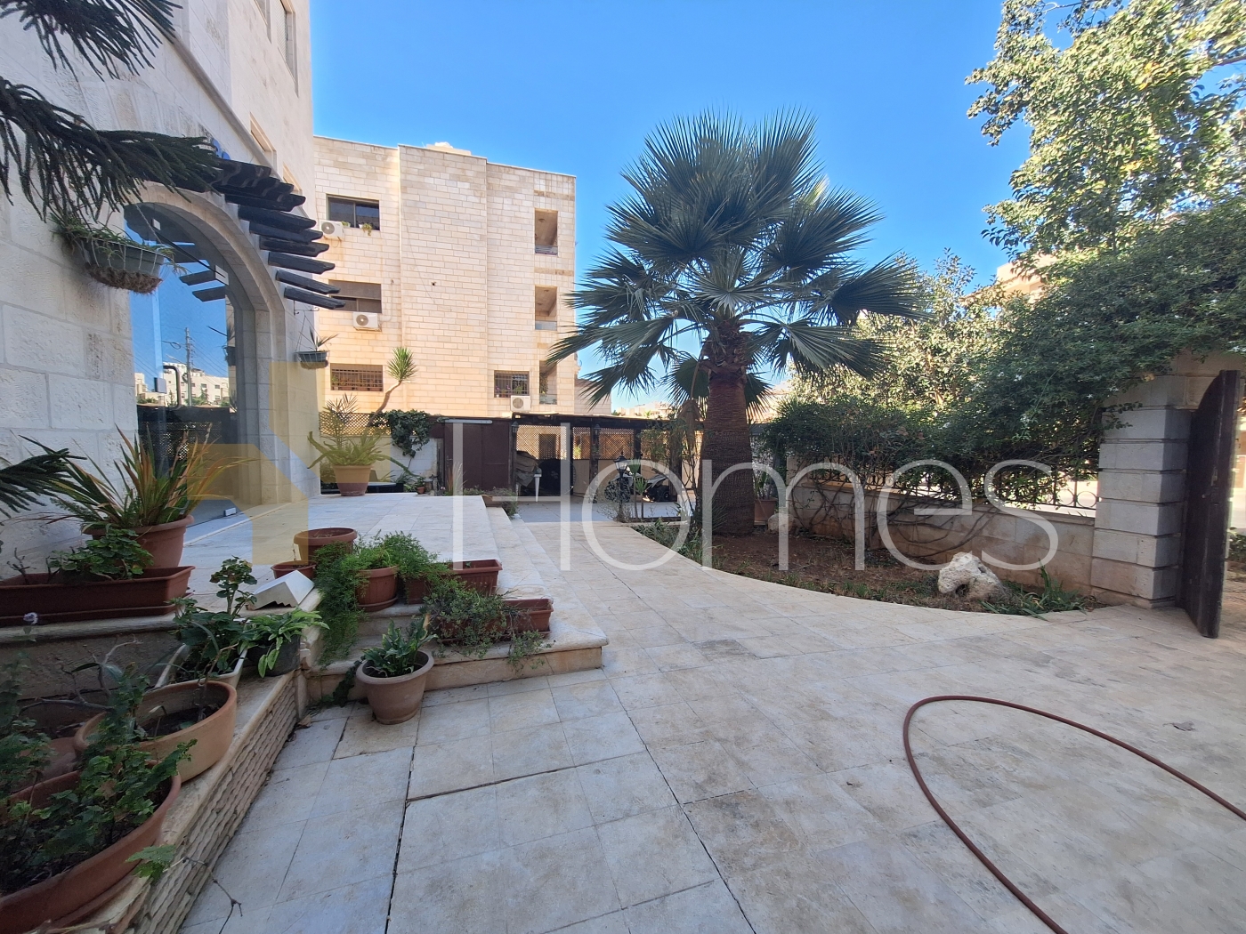 شقة ارضية طابقية غير مفروشة مع حديقة للايجار في خلدا بمساحة بناء 460م بالاضافة الى مساحة خارجية (حديقة + ترس) 200م