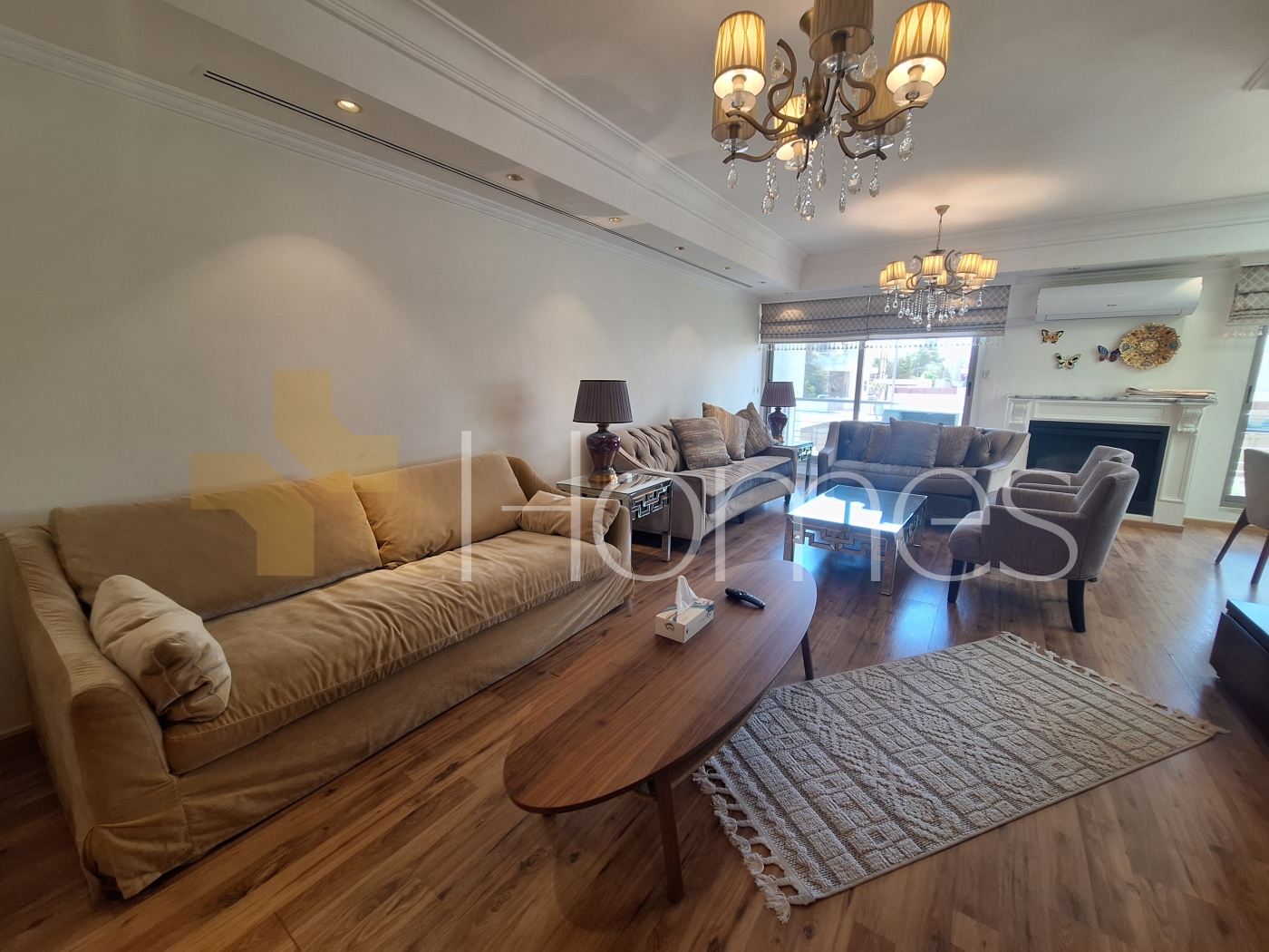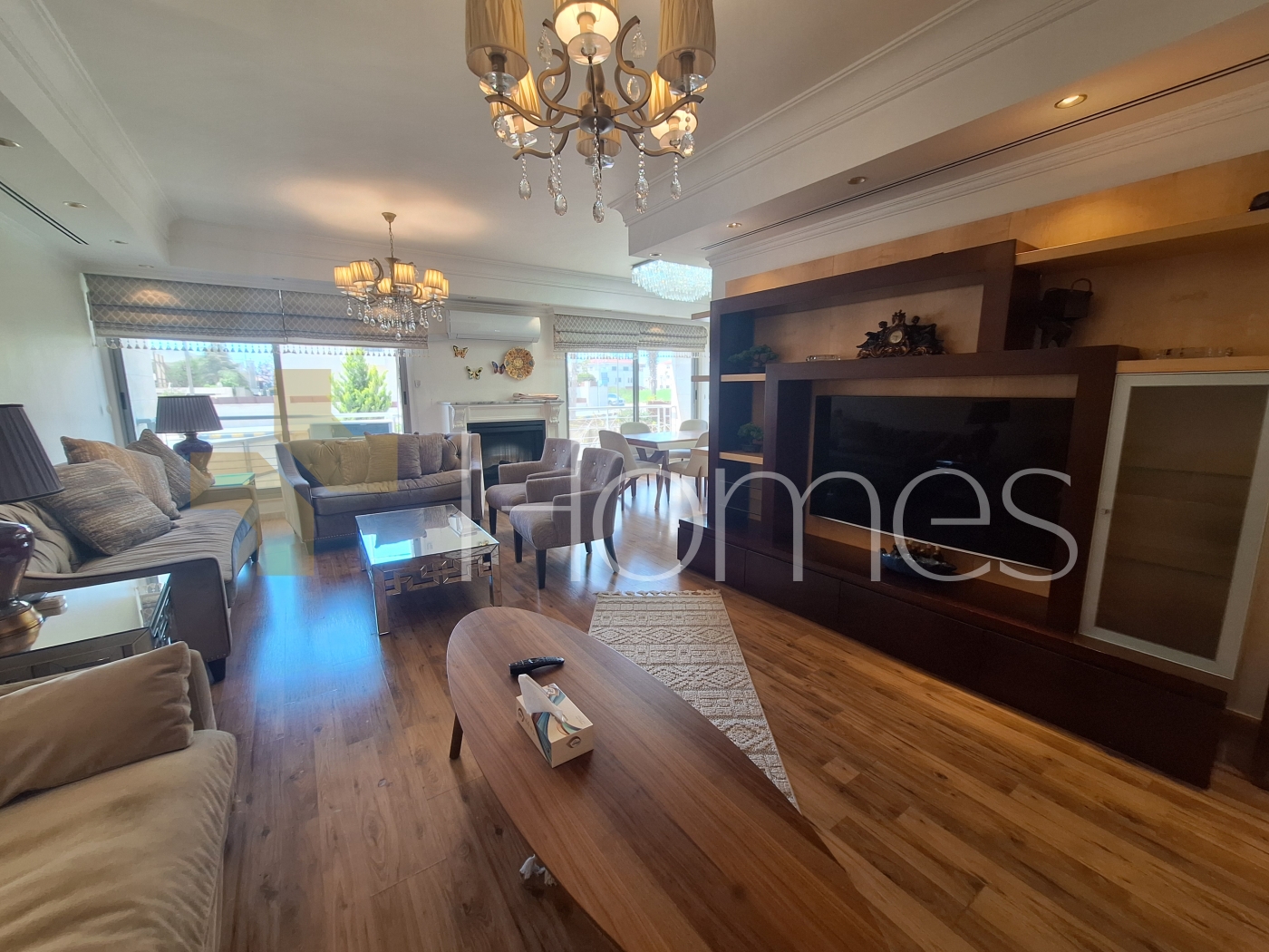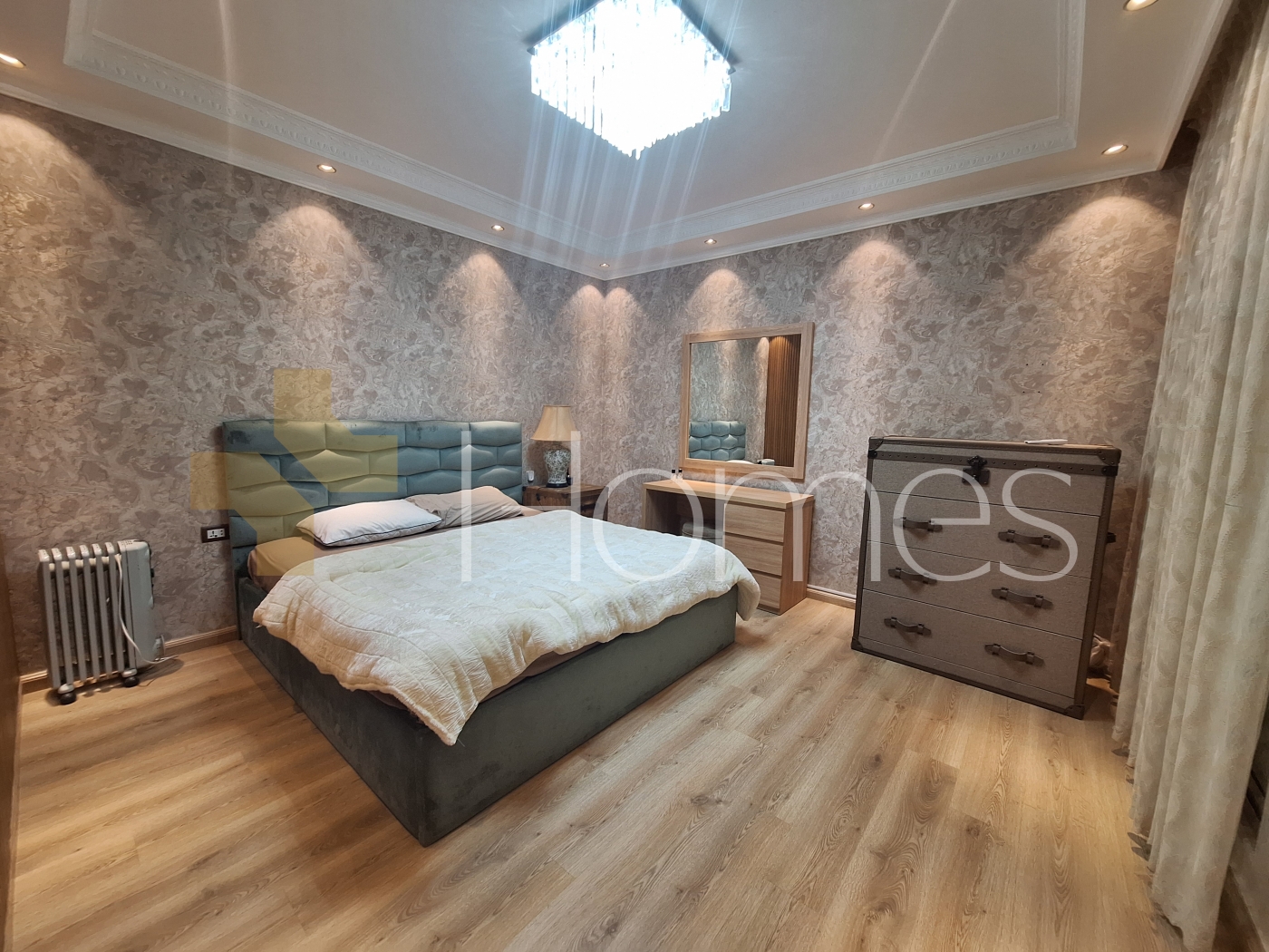 ارضيات باركيه - تكييف مركزي - مطبخ راكب - خزائن - زجاج دبل - تشطيبات سوبر ديلوكس - ديكورات جبصين - حمامات معلقة - اباجورات كهرباء - شاور بوكس - مصعد - انارة سبوت لايت - تقع في حي هادئ