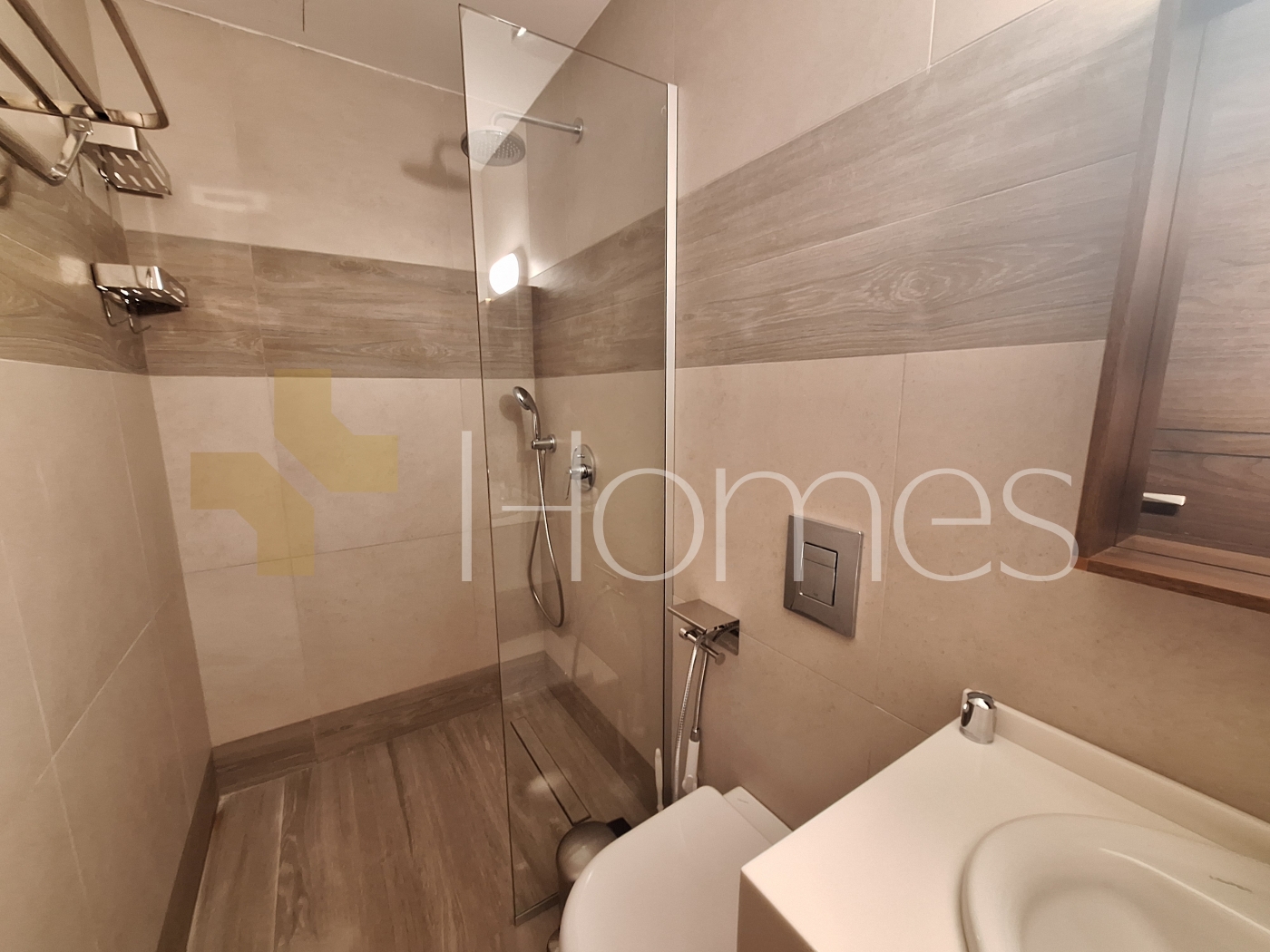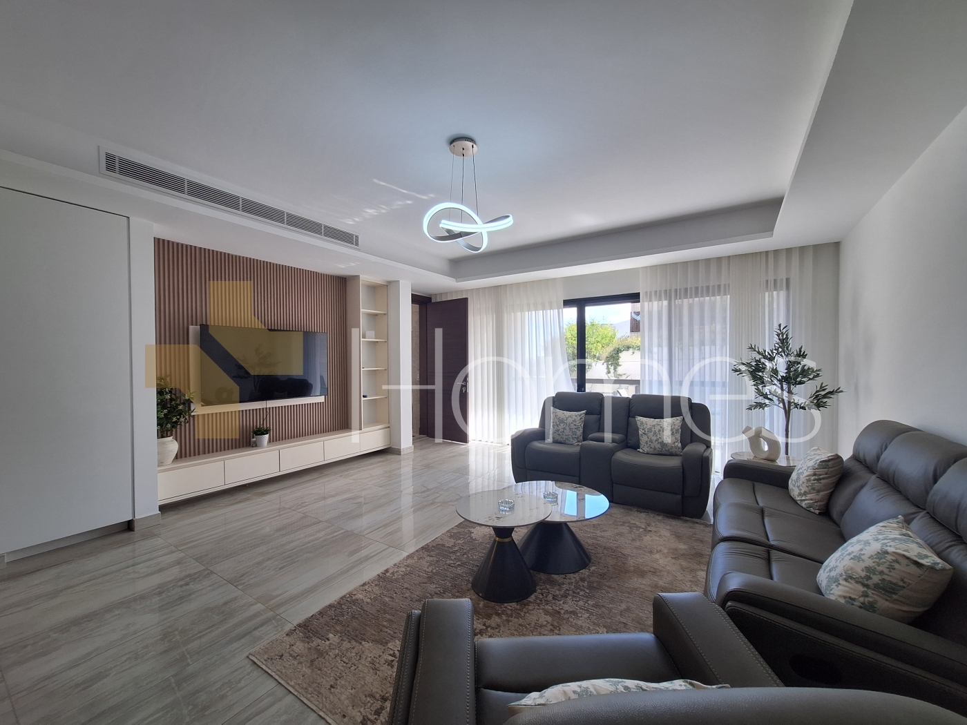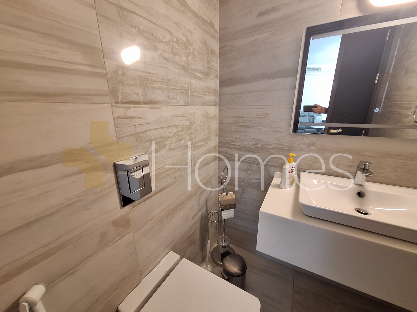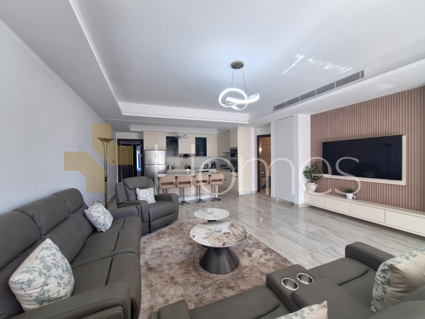 ارضيات رخام + سيراميك - تكييف مركزي - تدفئة تحت البلاط على الغاز - مطبخ راكب - خزائن - ديكورات جبصين + خشبية - حمامات معلقة - اباجورات كهربائية - شاور بوكس - مصعد - كاميرات مراقبة - انارة مخفية - زجاج دبل - تشطيبات سوبر ديلوكس