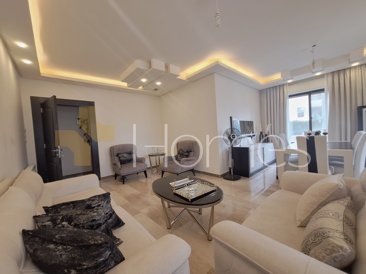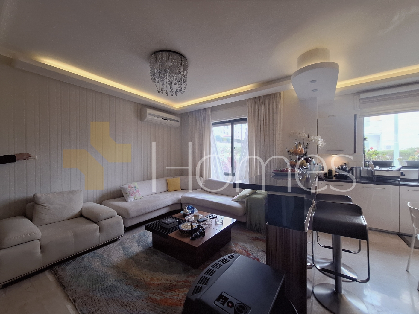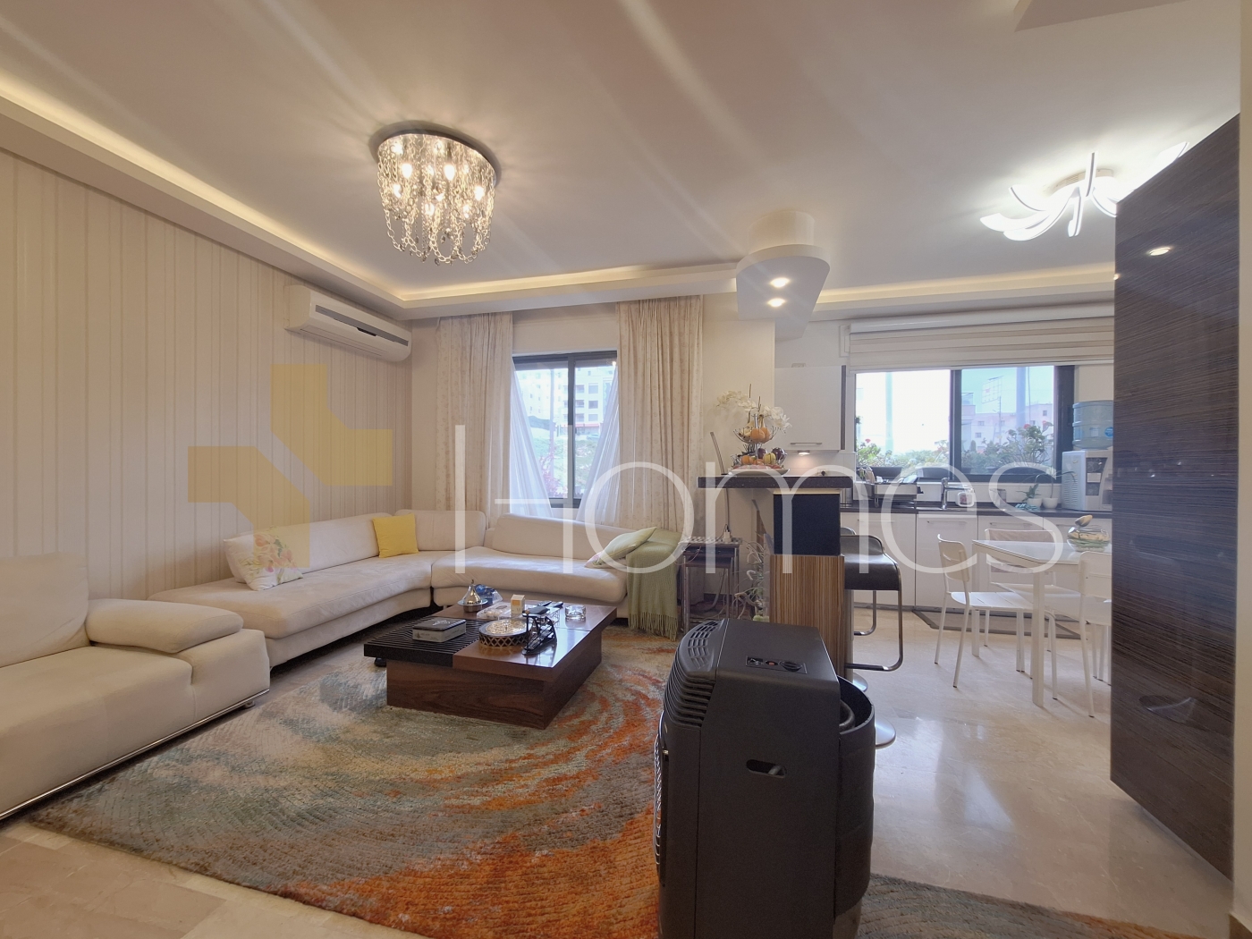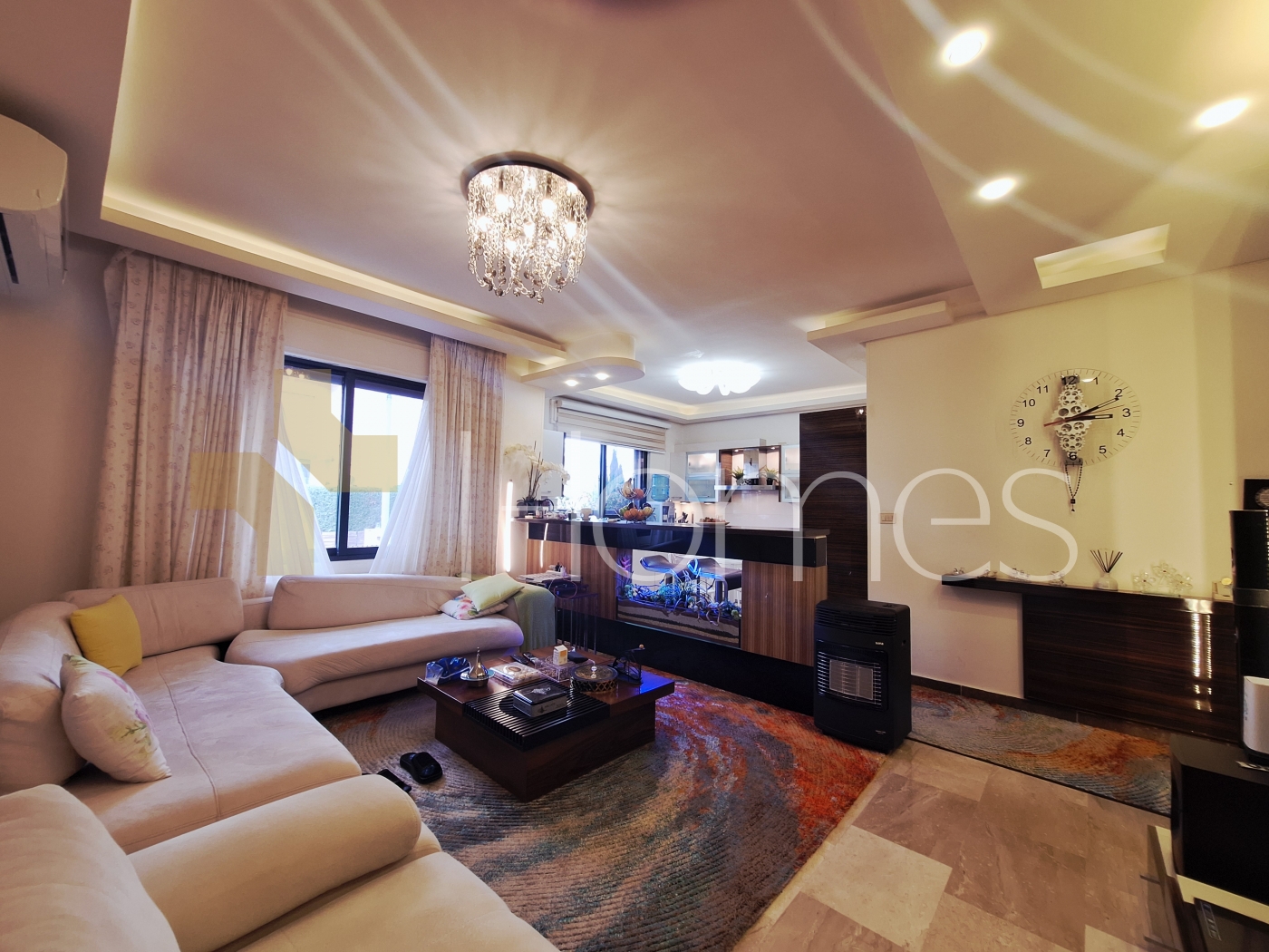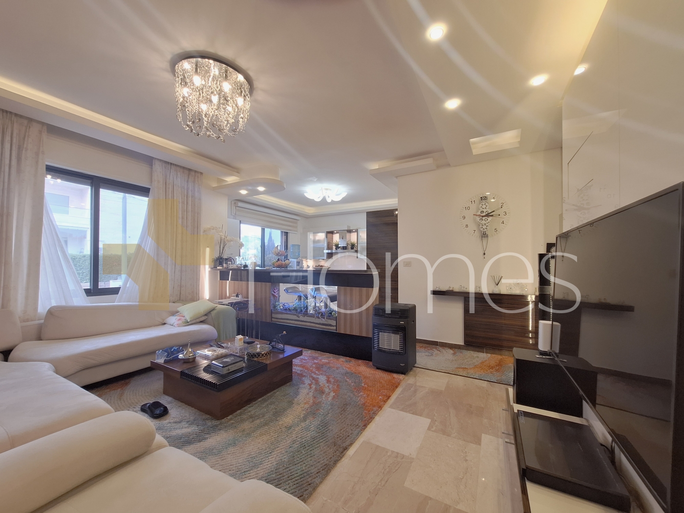 ارضيات رخام - وحدات تكييف - تدفئة - مطبخ راكب - خزائن بالحائط + عادية - ديكورات جبصين + خشبية - حمامات معلقة - اباجورات كهربائية - شاور بوكس - مصعد - ابواب امان - انارة مخفية - زجاج دبل - تشطيبات سوبر ديلوكس