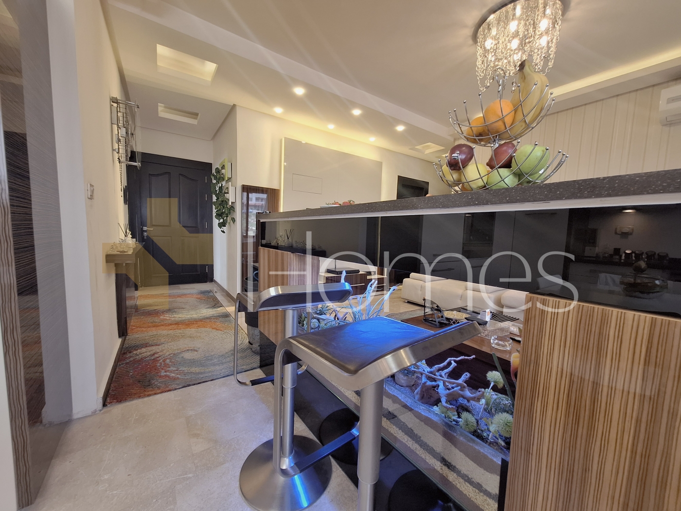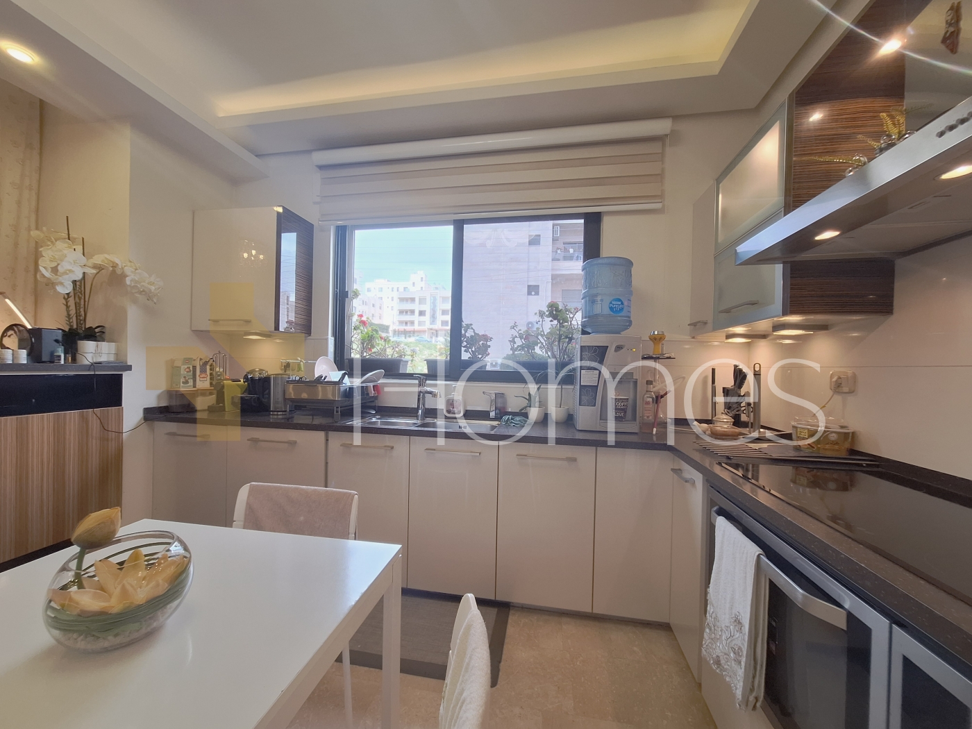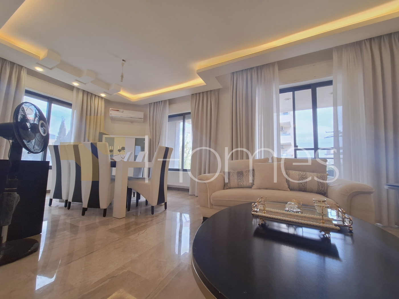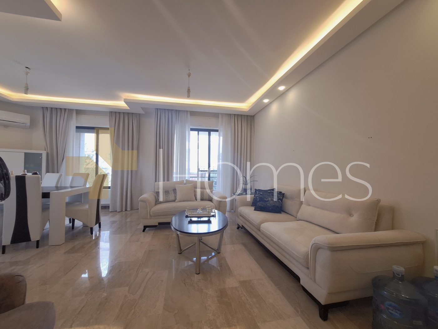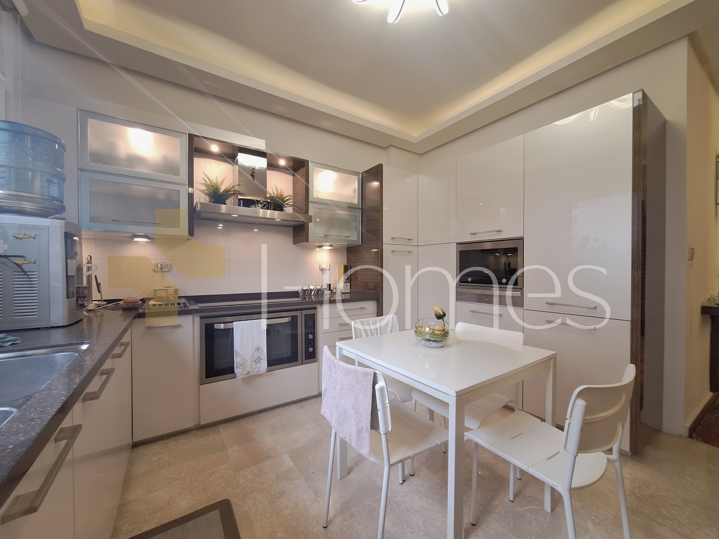 ارضيات رخام - وحدات تكييف - تدفئة - مطبخ راكب - خزائن بالحائط + عادية - ديكورات جبصين + خشبية - حمامات معلقة - اباجورات كهربائية - شاور بوكس - مصعد - ابواب امان - انارة مخفية - زجاج دبل - تشطيبات سوبر ديلوكس