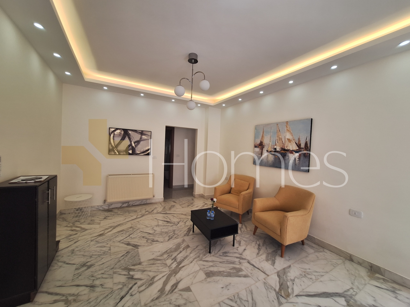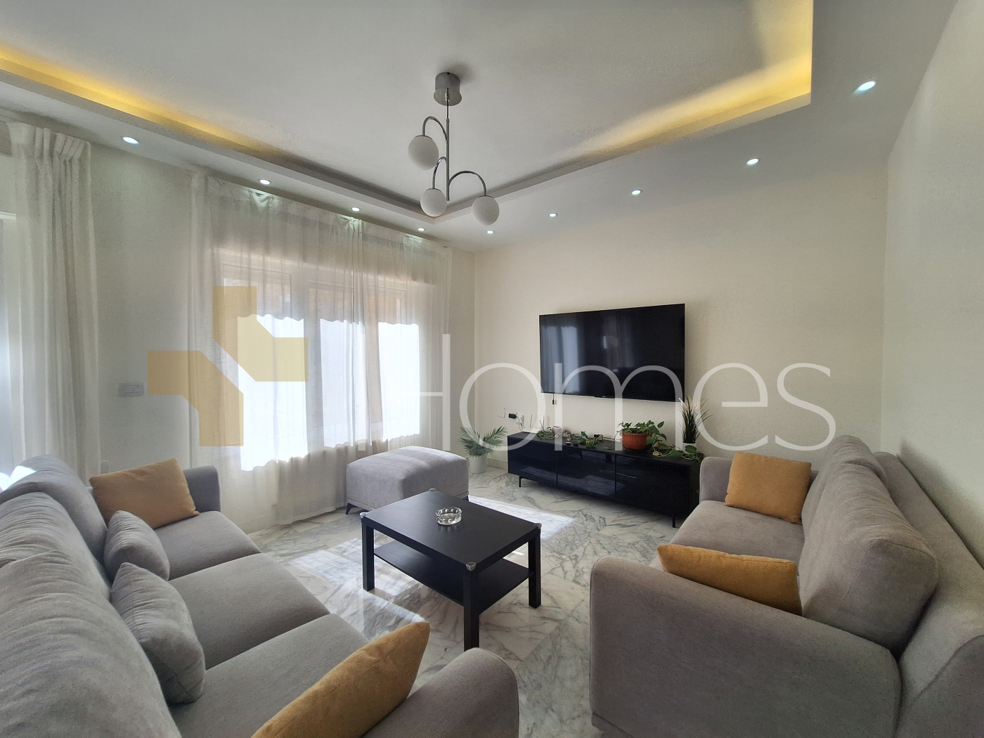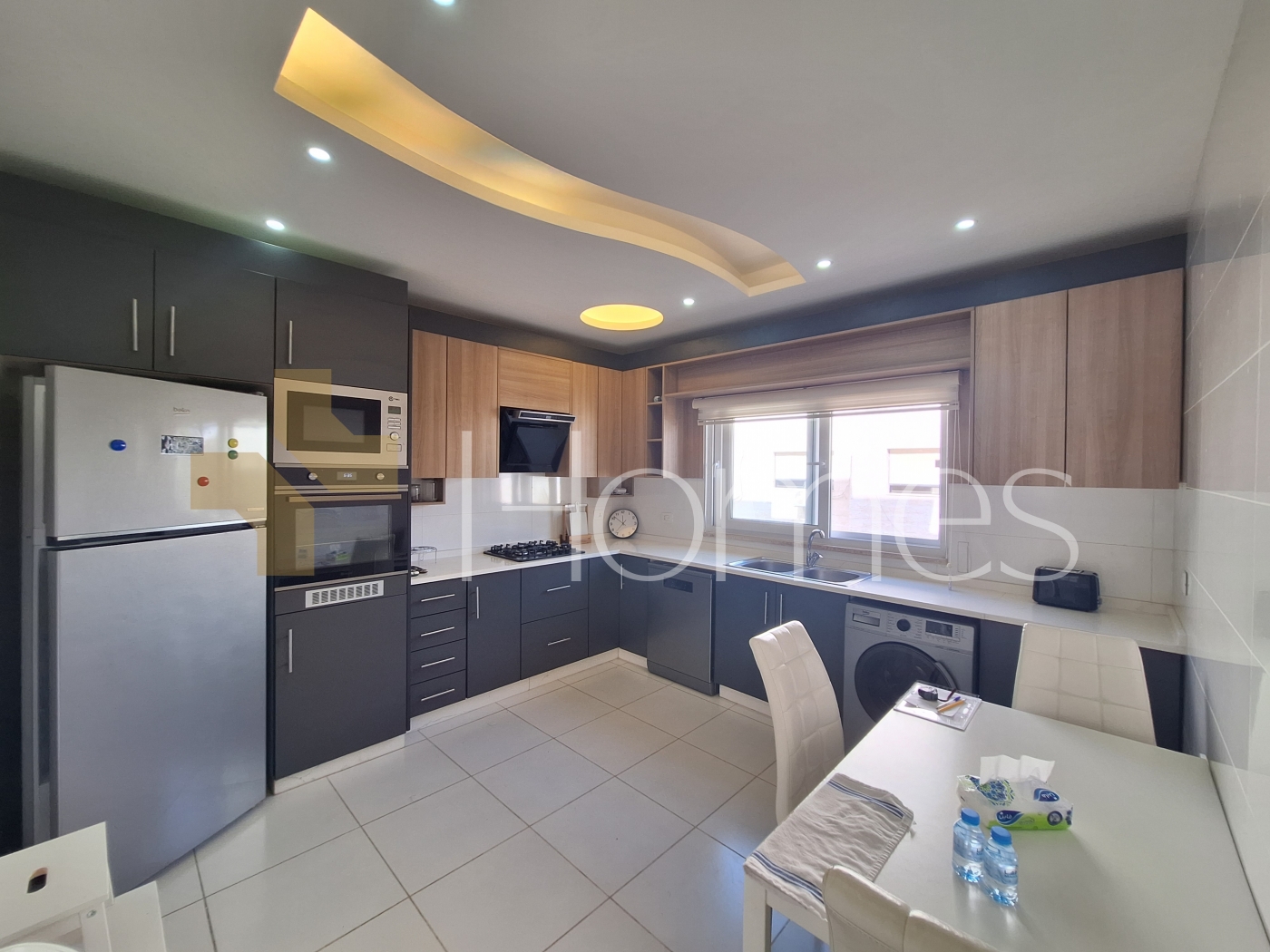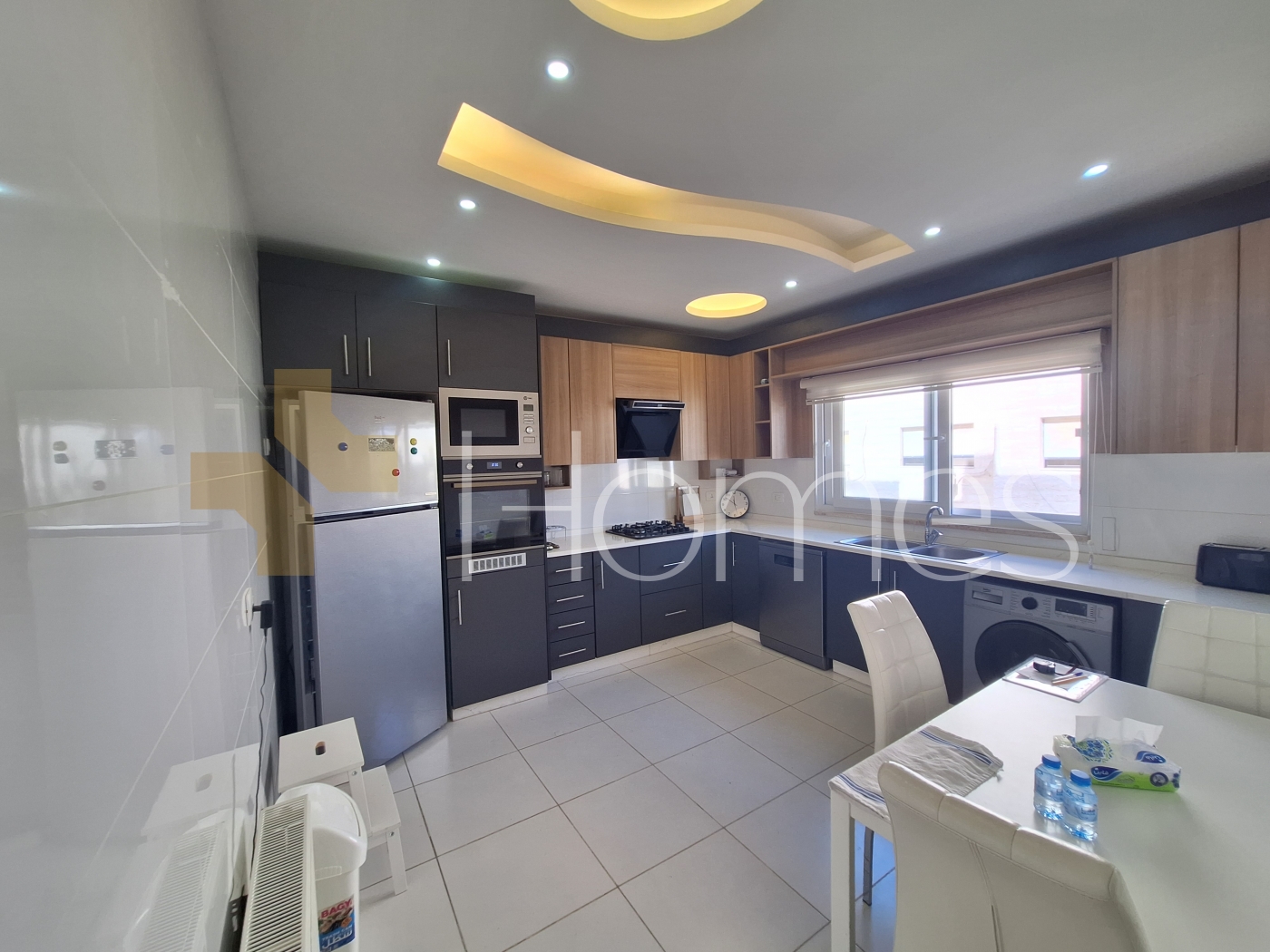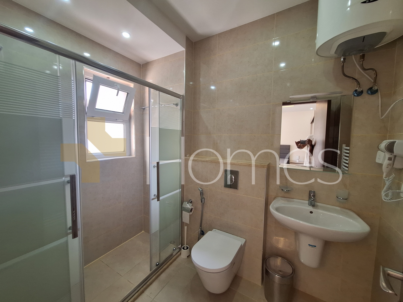 ارضيات رخام + بورسلان - وحدات تكييف - مطبخ راكب - خزائن بالحائط + عادية - ديكورات جبصين + حجرية - حمامات معلقة - اباجورات كهربائية - شاور بوكس - مصعد - ابواب امان - انارة مخفية - زجاج دبل - تشطيبات سوبر ديلوكس