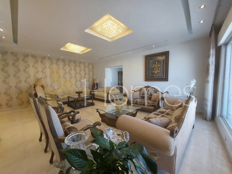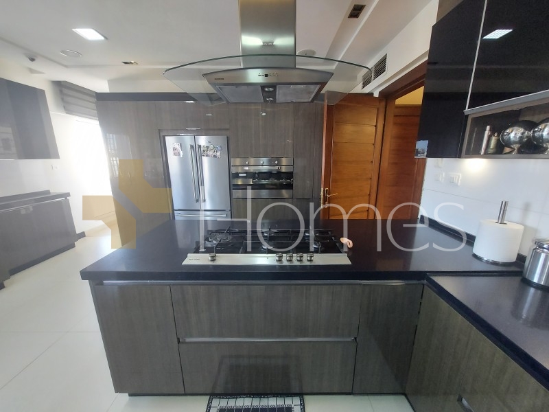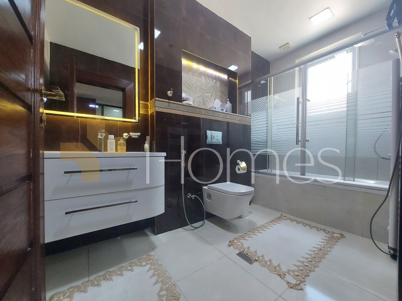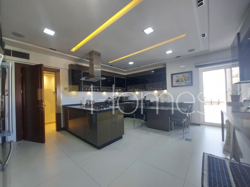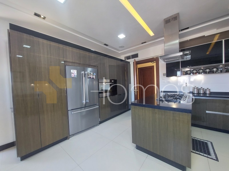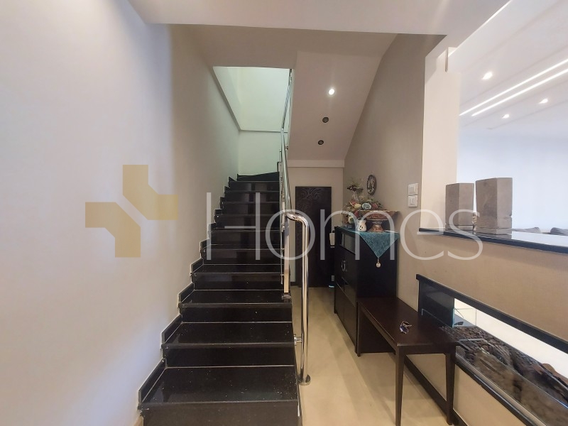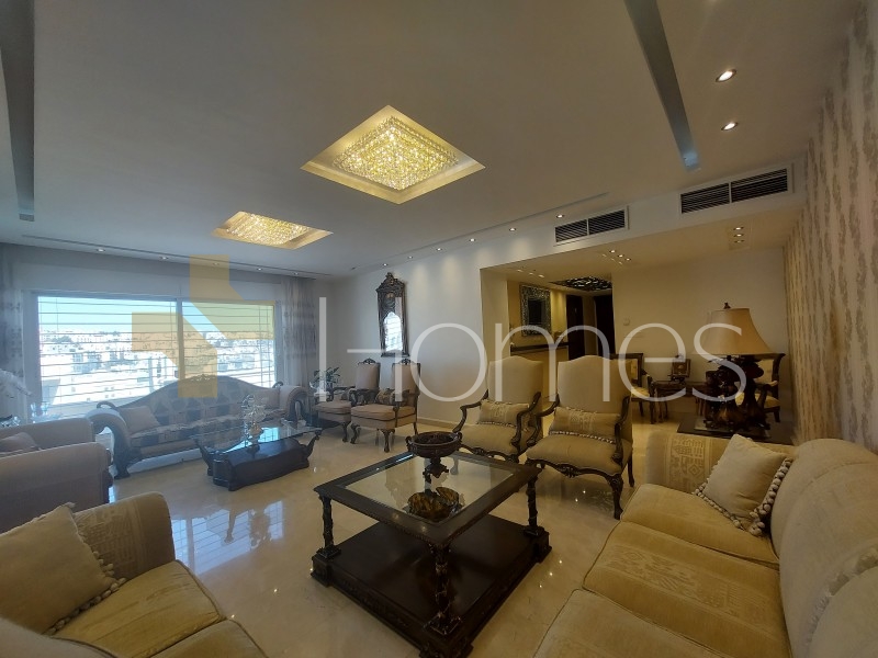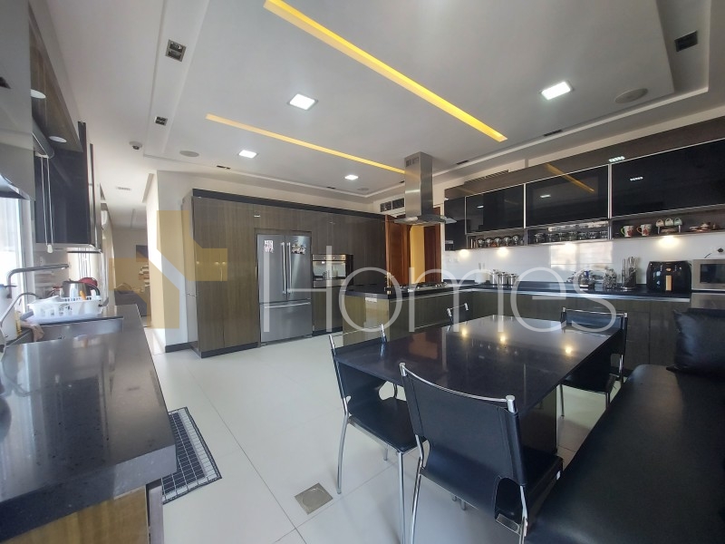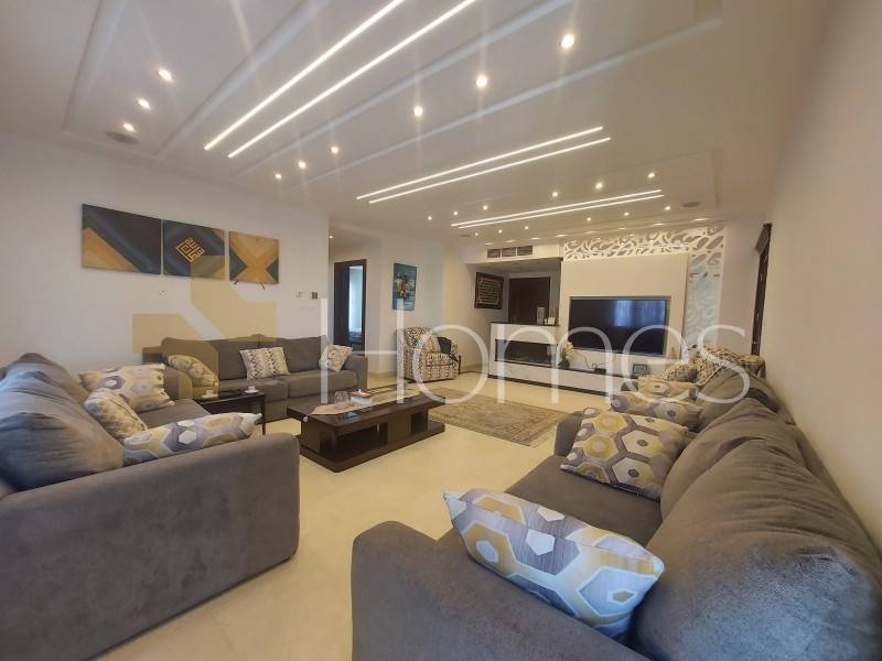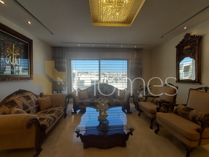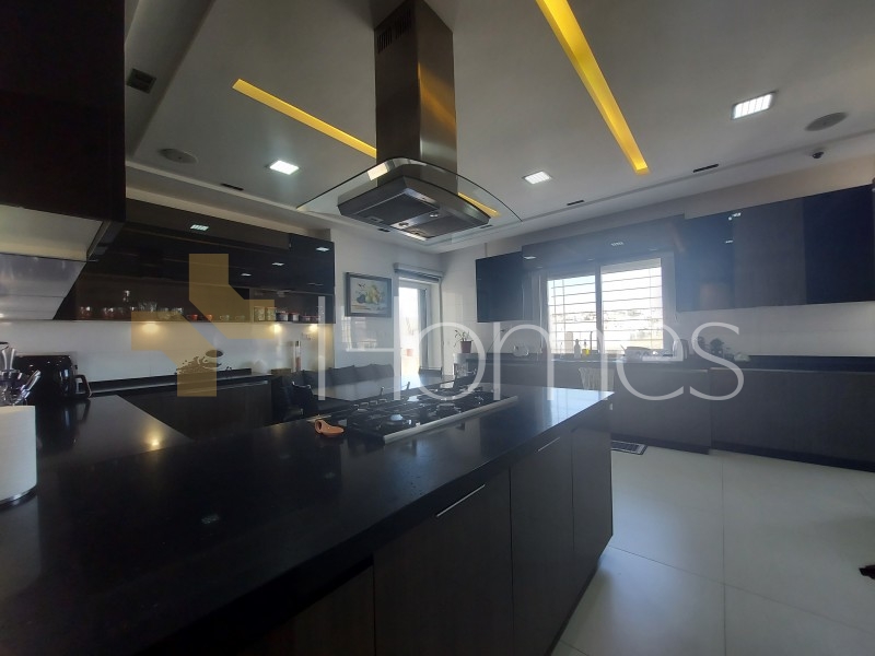 ارضيات رخام -مطبخ راكب من العامر - خزائن - تكييف مركزي - تدفئة تحت البلاط - زجاج دبل - ابواب امان - تشطيبات سوبر ديلوكس - ديكورات جبصين - موقد - حمامات معلقة - اباجورات كهرباء - شاور بوكس - مصعد - انارة مخفية - تقع في منطقة هادئة