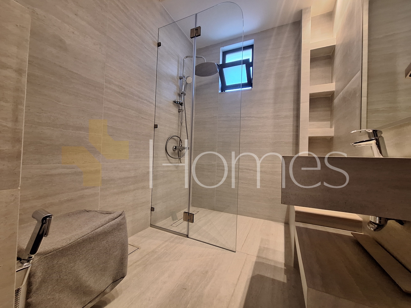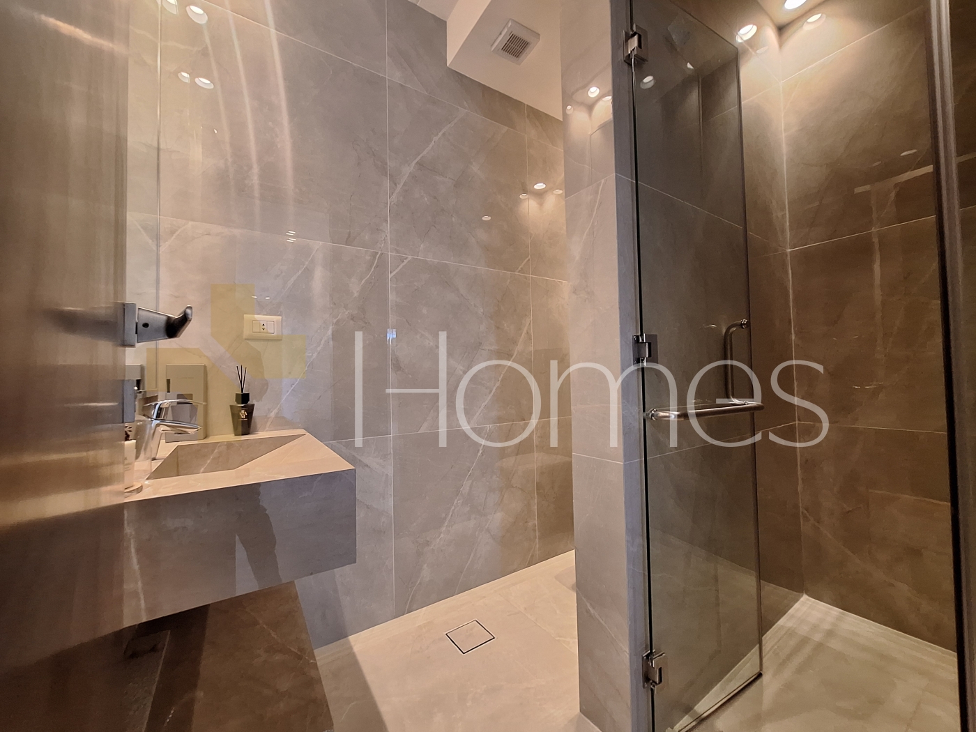 ارضيات بورسلان - تكييف وحدات - تدفئة تحت البلاط - ديكورات جبصين + خشبية + حجرية - حمامات معلقة - اباجورات كهربائية - شاور بوكس - موقد - ابواب امان - انارة مخفية - زجاج دبل - تشطيبات سوبر ديلوكس