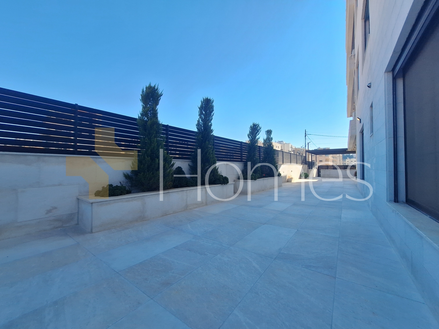 شقة ارضية مع كراج خاص للبيع في خلدا بمساحة بناء 190م بالاضافة الى مساحة خارجية 250م (حديقة + ترس )
