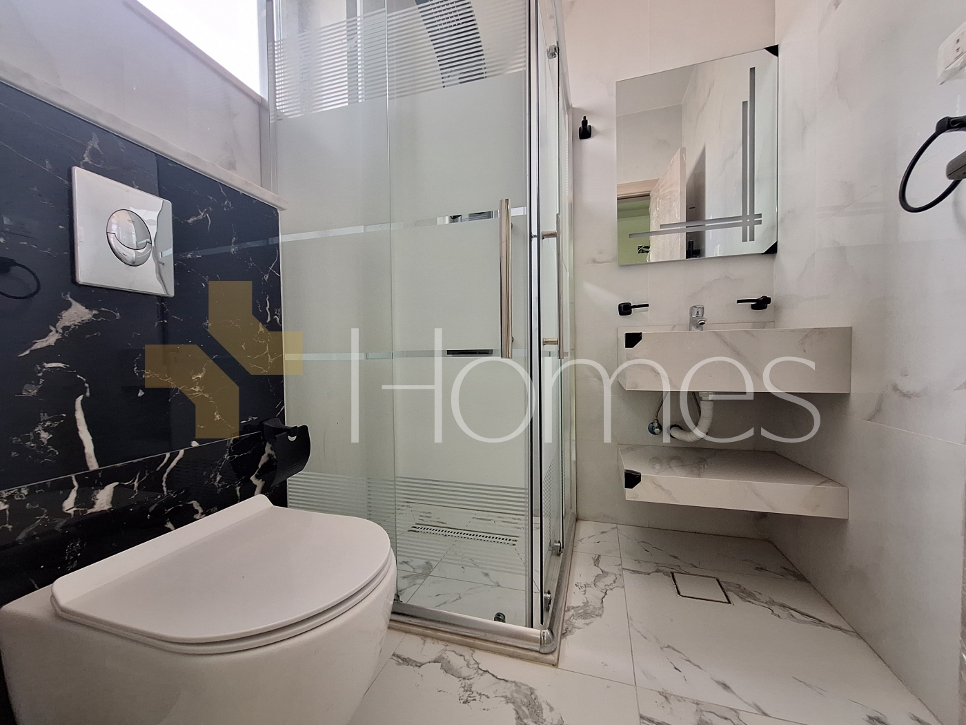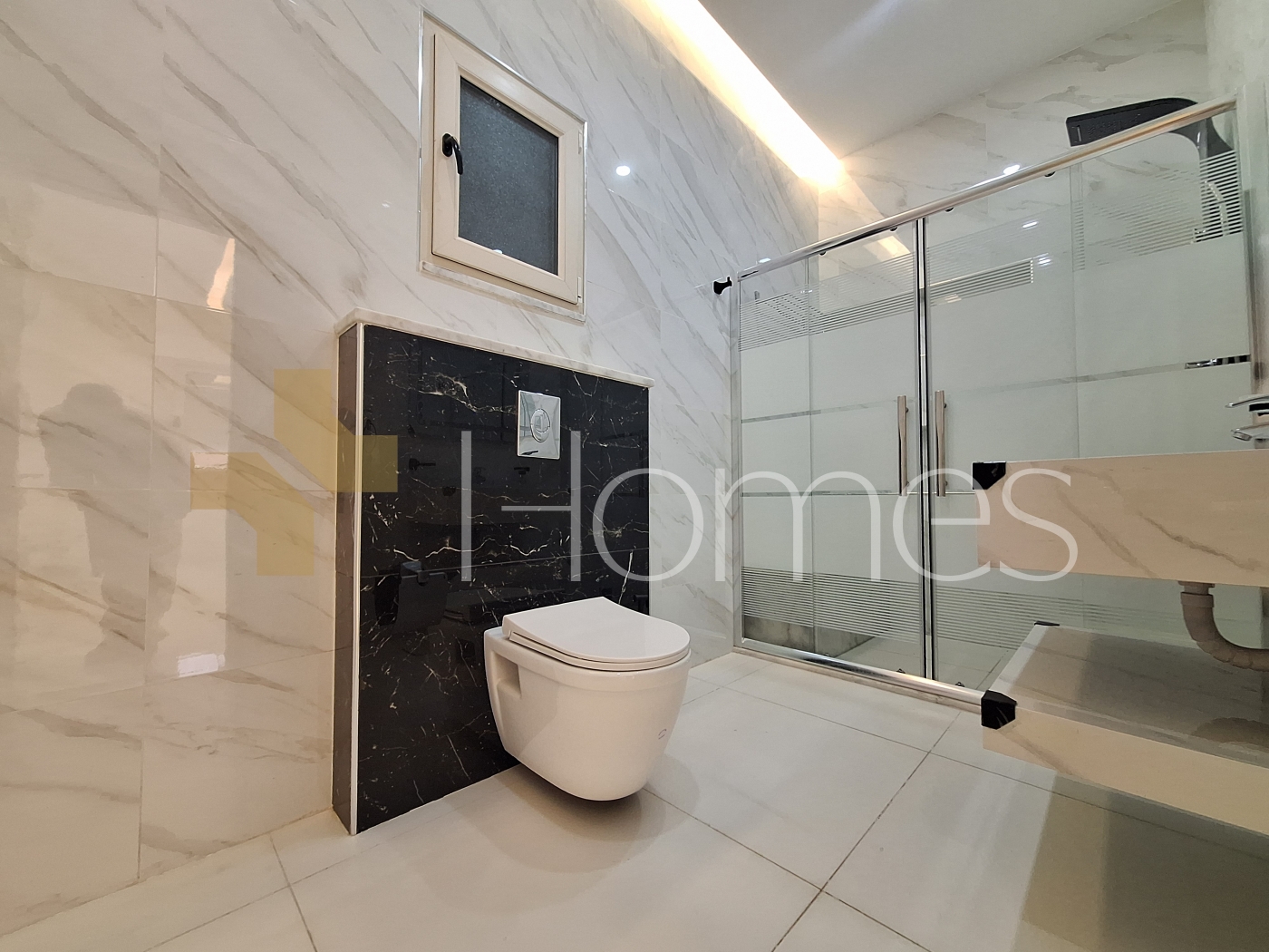 ارضيات بورسلان - تكييف مركزي - تدفئة تحت البلاط - ديكورات جبصين + خشبية - حمامات معلقة - اباجورات كهربائية - شاور بوكس - مصعد - انارة مخفية - زجاج دبل