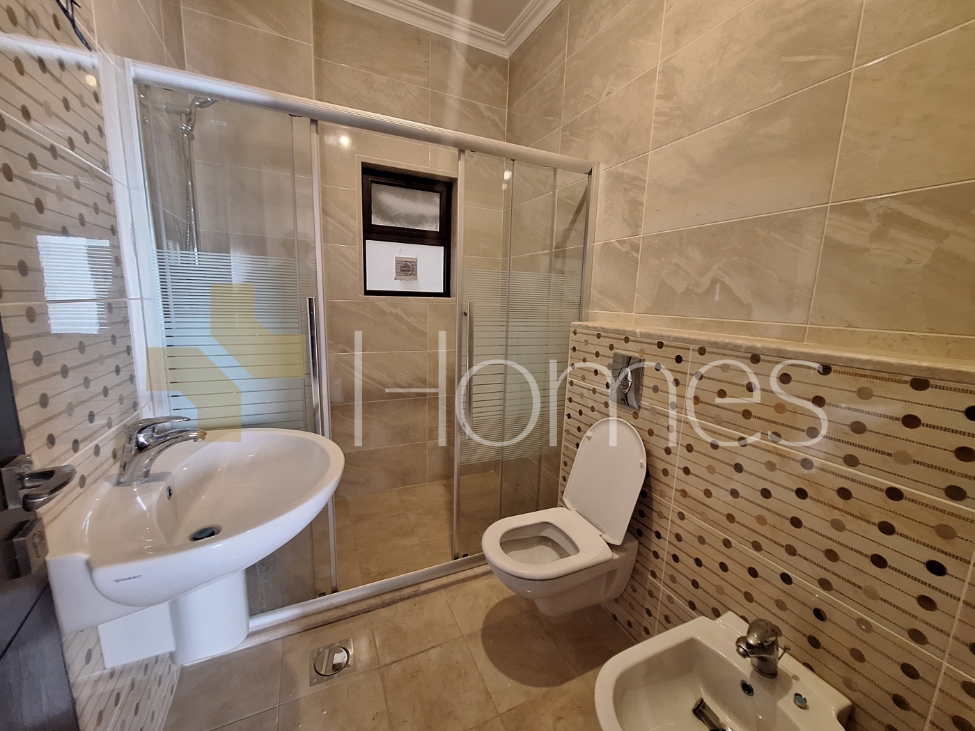 ارضيات رخام - تاسيس تكييف مركزي - تدفئة تحت البلاط - زجاج دبل - تشطيبات ديلوكس - ابواب امان - بئر ماء - انارة مخفية - حمامات معلقة - اباجورات كهرباء - مصعد - تقع في منطقة هادئة