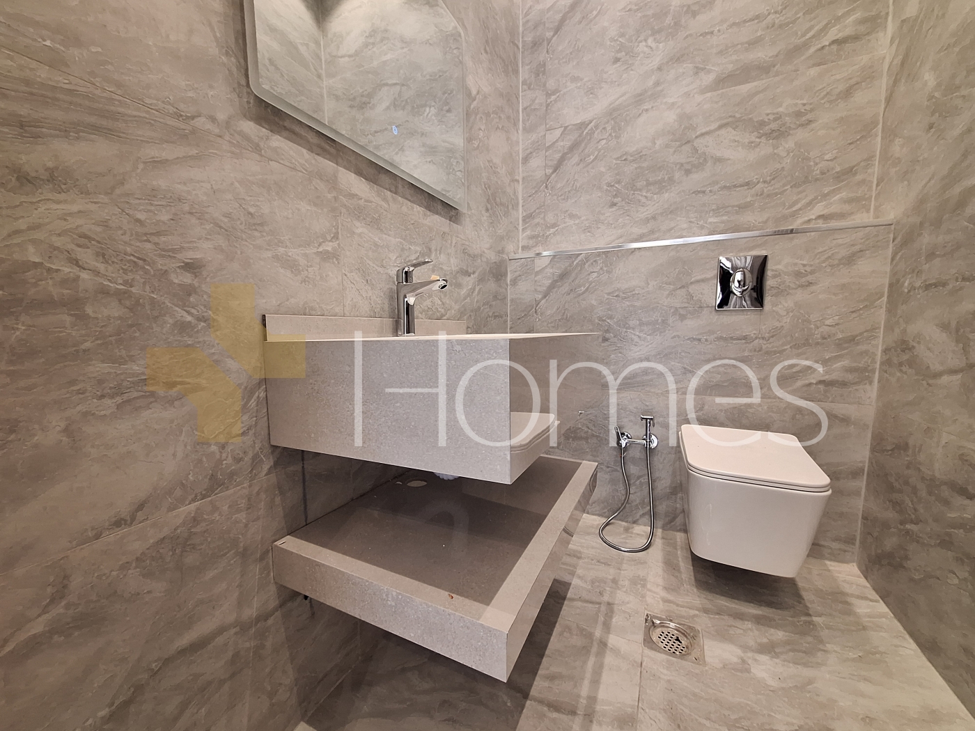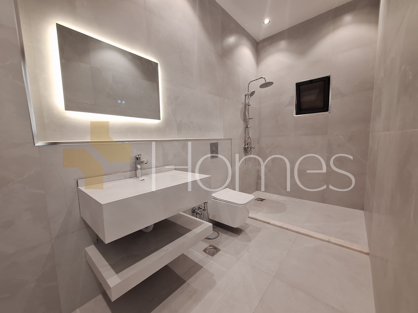 ارضيات بورسلان - تكييف مركزي - تدفئة على الغاز - ديكورات جبصين - حمامات معلقة - اباجورات كهربائية - شاور بوكس - مصعد - انارة مخفية - زجاج دبل - تشطيبات سوبرديلوكس