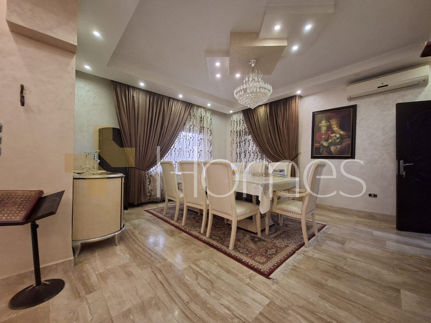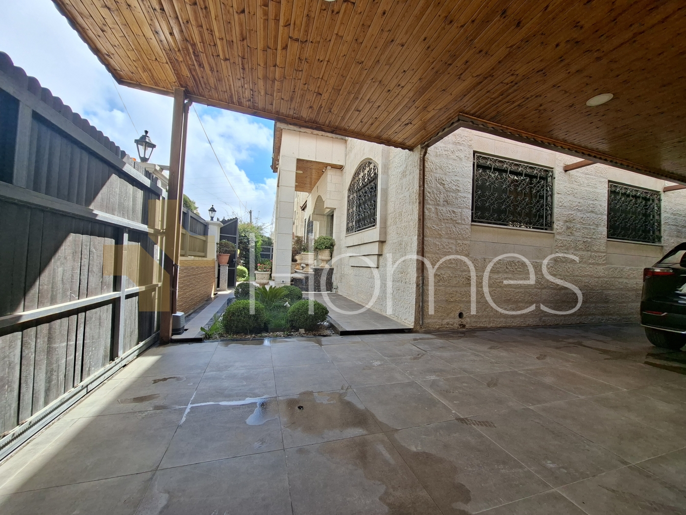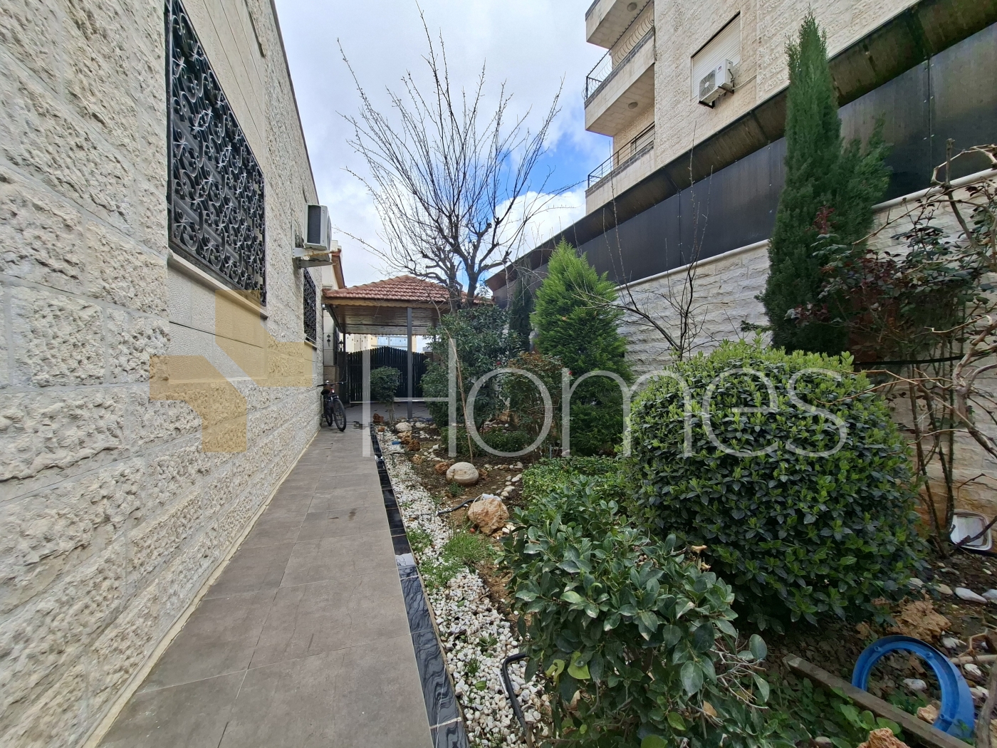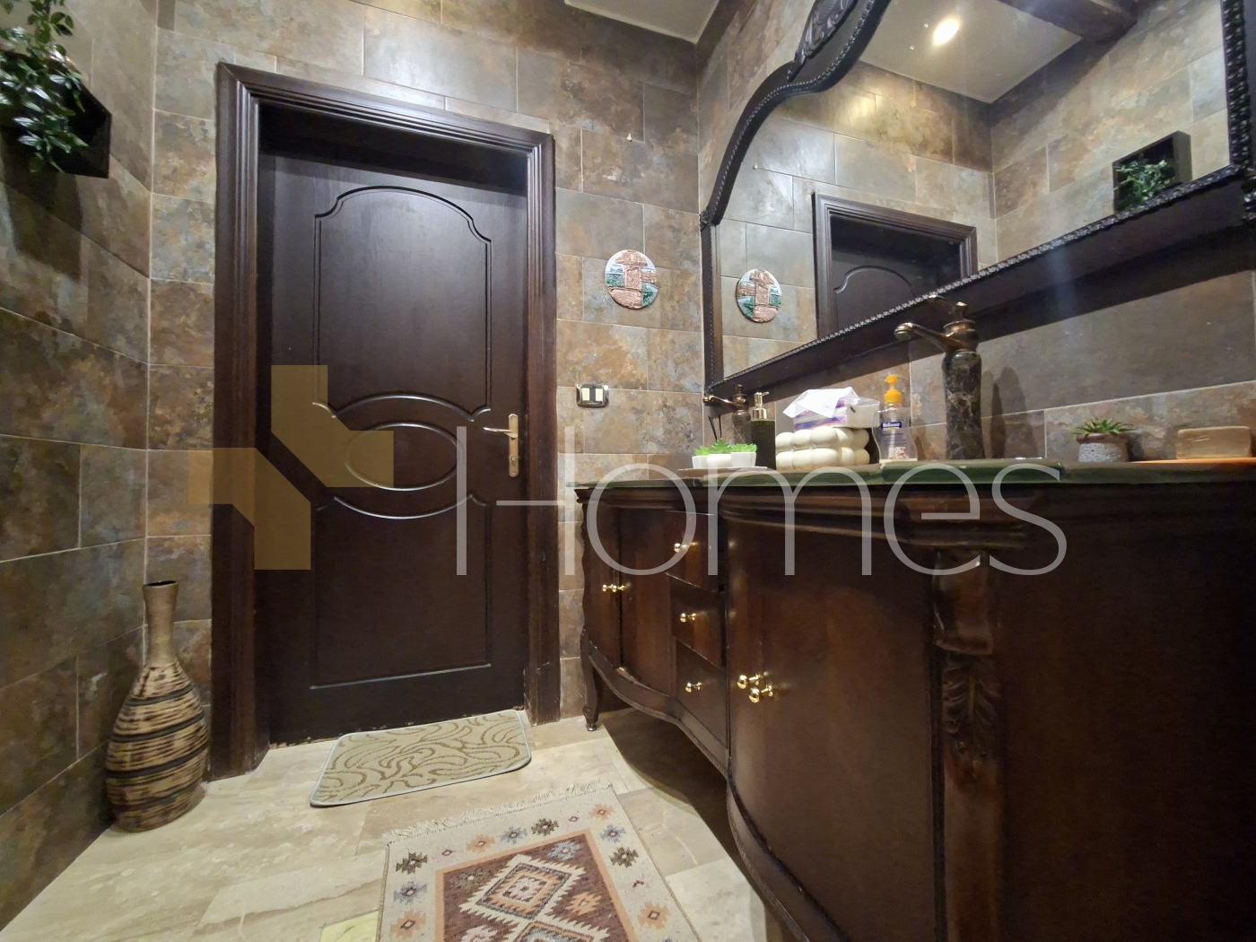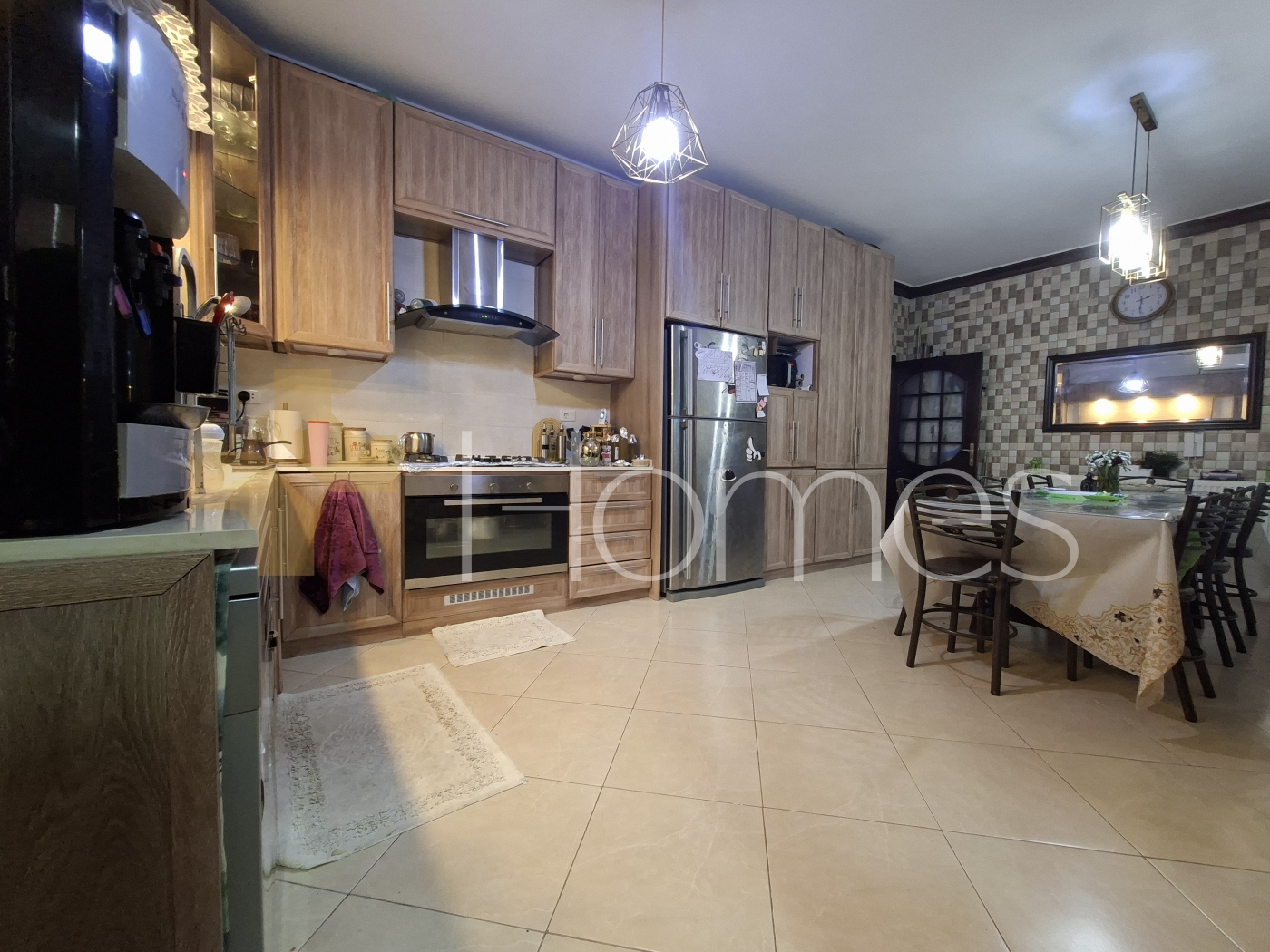 ارضيات بورسلان - وحدات تكييف منفصلة - تدفئة - مطبخ راكب - خزائن بالحائط + عادية - ديكورات حجرية + خشبية - موقد - كاميرات مراقبة - انارة مخفية - تقع في حي راقي و هادئ