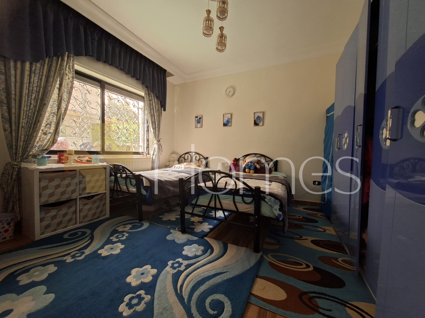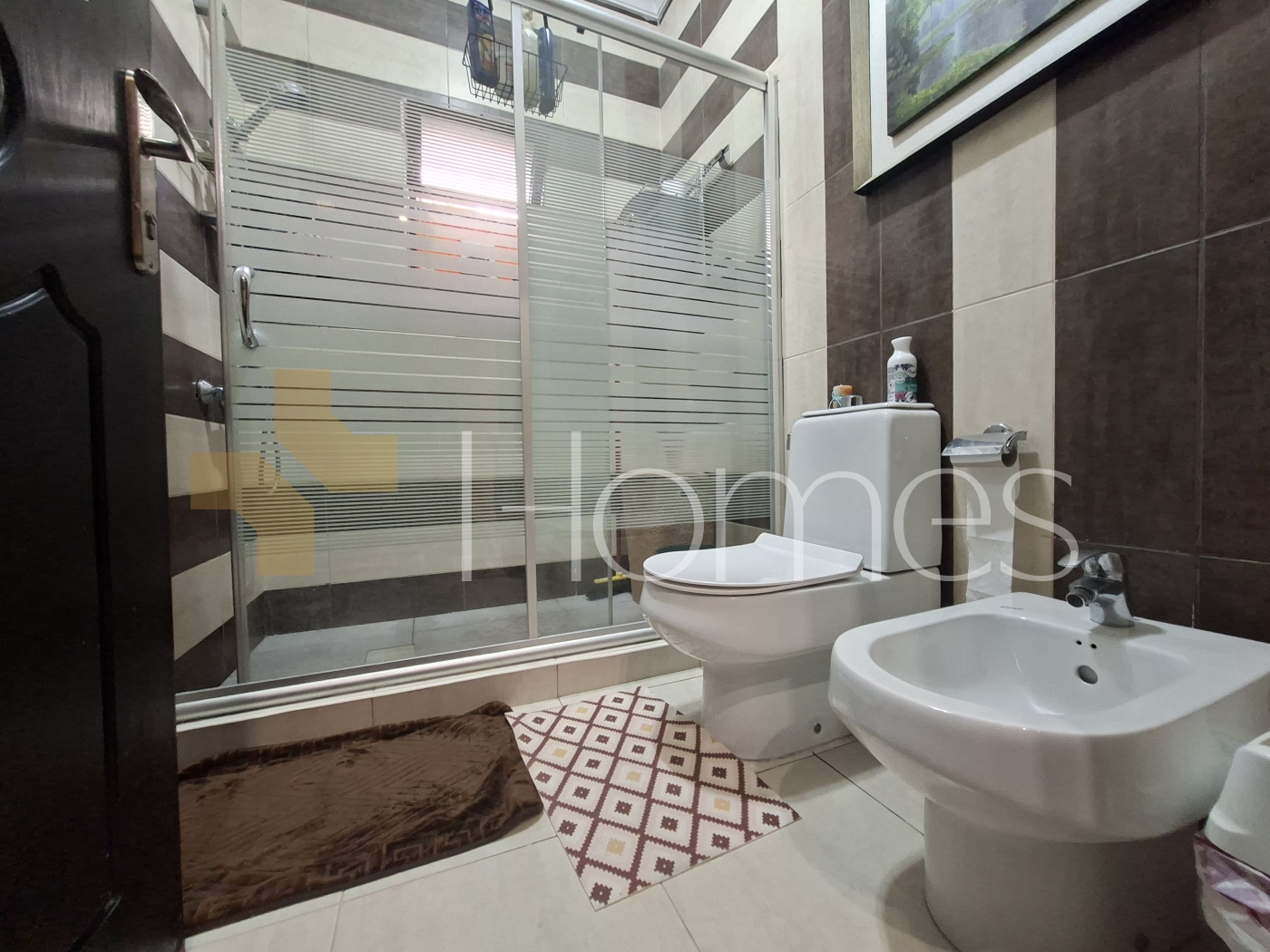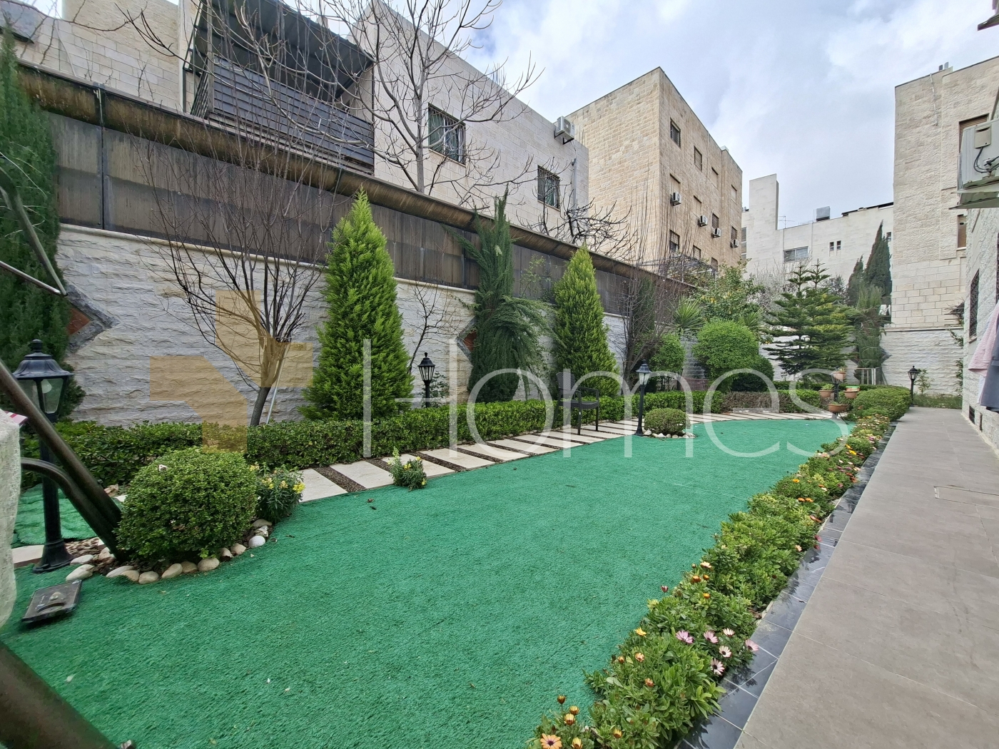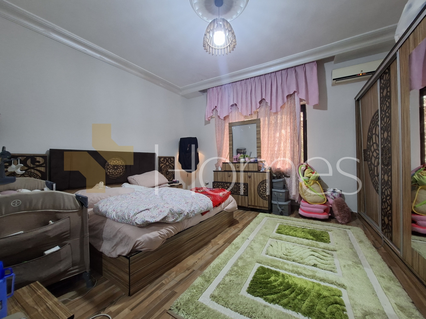 ارضيات بورسلان - وحدات تكييف منفصلة - تدفئة - مطبخ راكب - خزائن بالحائط + عادية - ديكورات حجرية + خشبية - موقد - كاميرات مراقبة - انارة مخفية - تقع في حي راقي و هادئ
