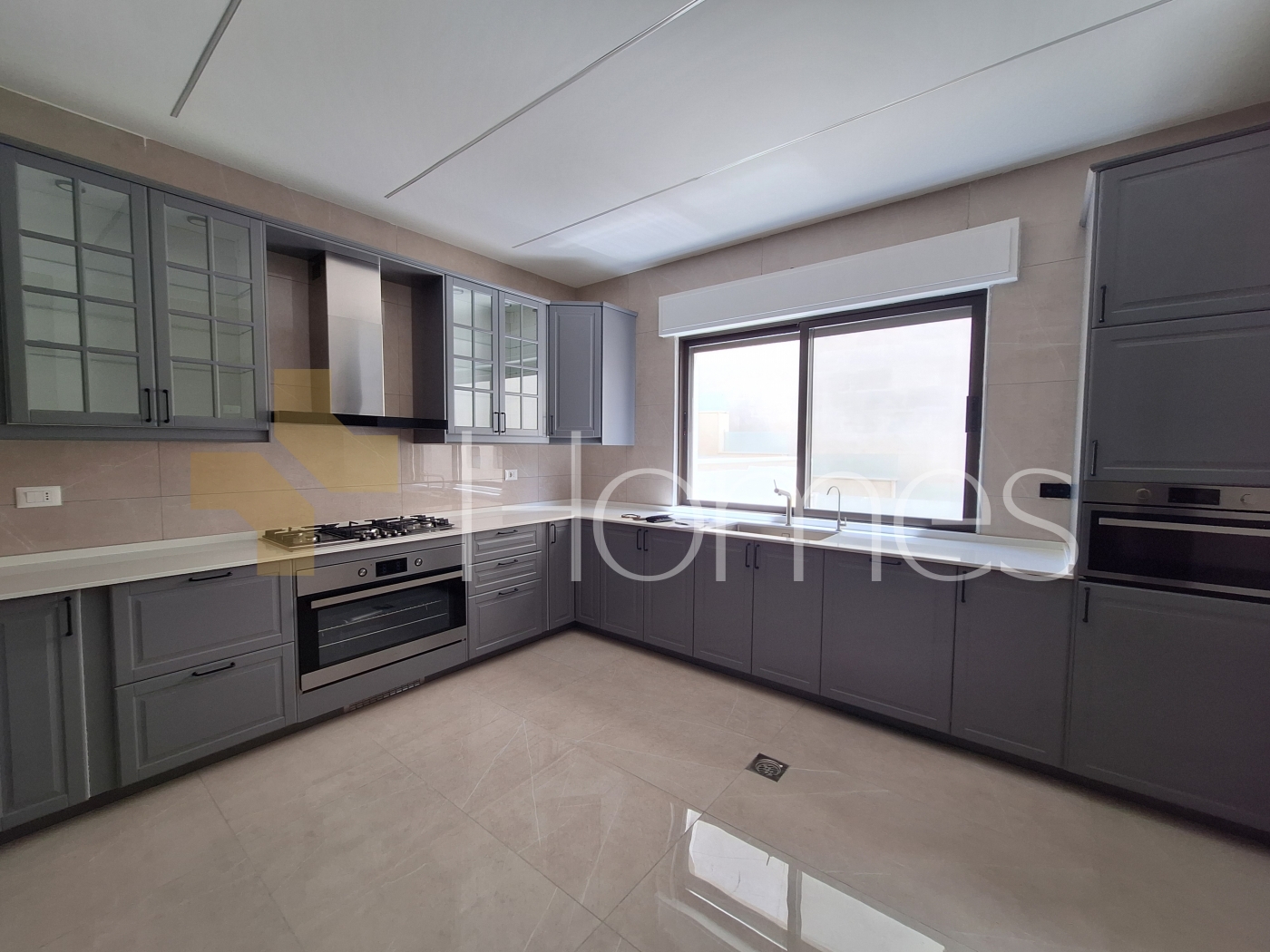 Porcelain flooring - Central air conditioning - Underfloor gas heating - Built-in wardrobes - Gypsum, wood, and stone decorations - Fireplace - Electric window shutters - Shower enclosure - Elevator - Security doors - suspended toilets - Security cameras - Concealed lighting - Double classes - Super deluxe finishing