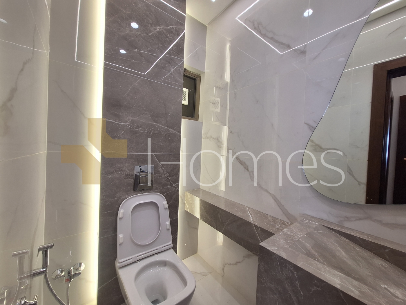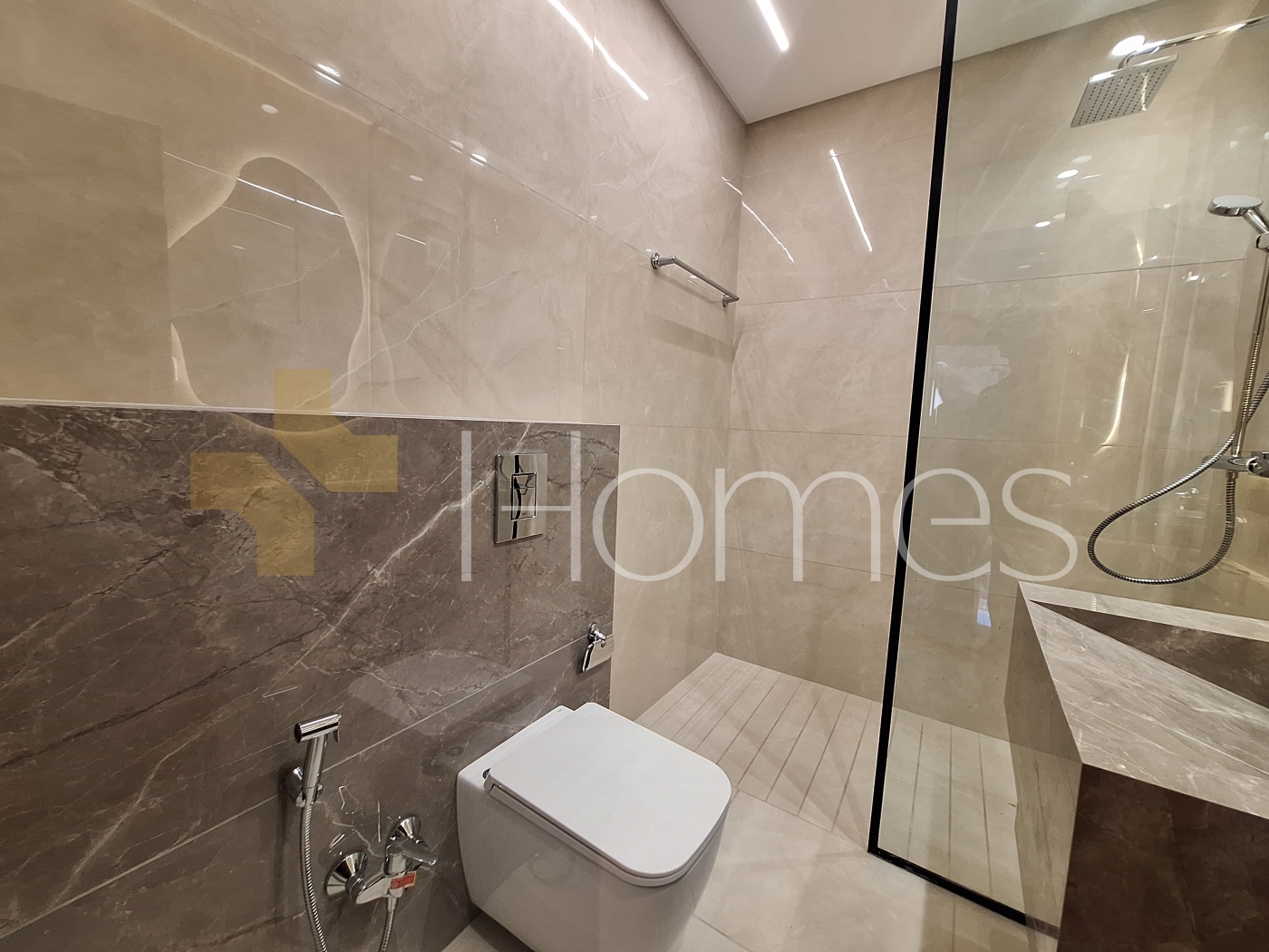 Marble Floors - Split Air Conditioning - Heating - Kitchen - Built-in Wardrobes - Double classes - Security Doors - Super Deluxe Finishes - Gypsum Decorations - Wall-Hung Toilets - Electric window shutters - Shower Enclosures - Elevator - Spotlights - Located in a Quiet Neighborhood