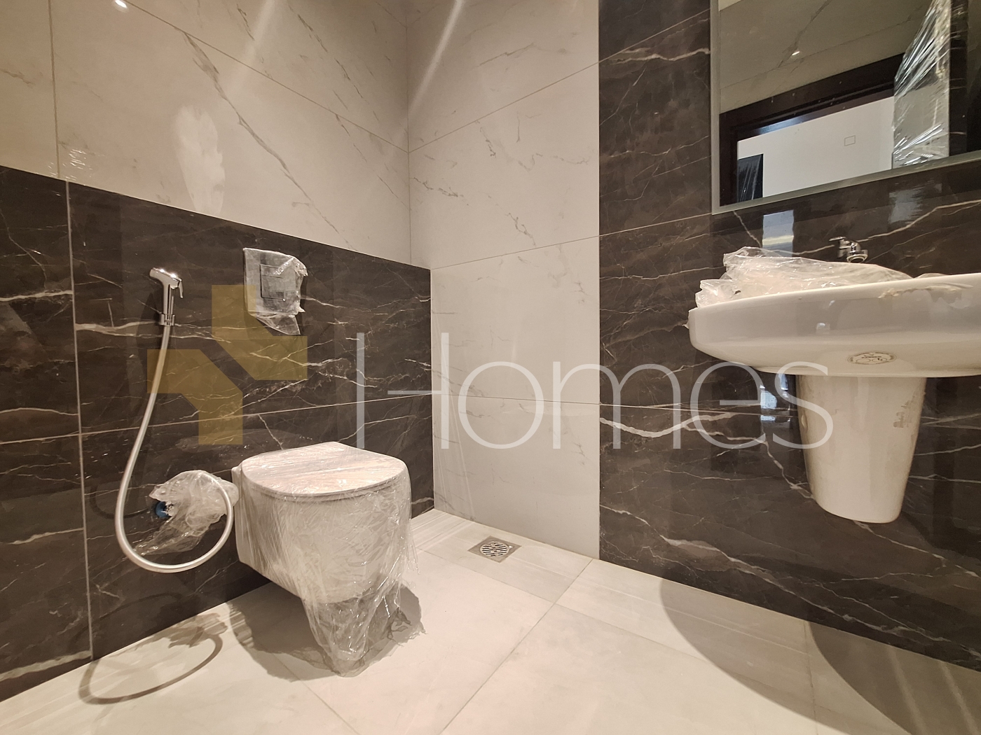 Porcelain floors - split air conditioning - gas heating - gypsum, wood, and stone decorations - wall-hung toilets - electric window shutters - shower enclosure - elevator - security doors - recessed lighting - double classes - super deluxe finishing