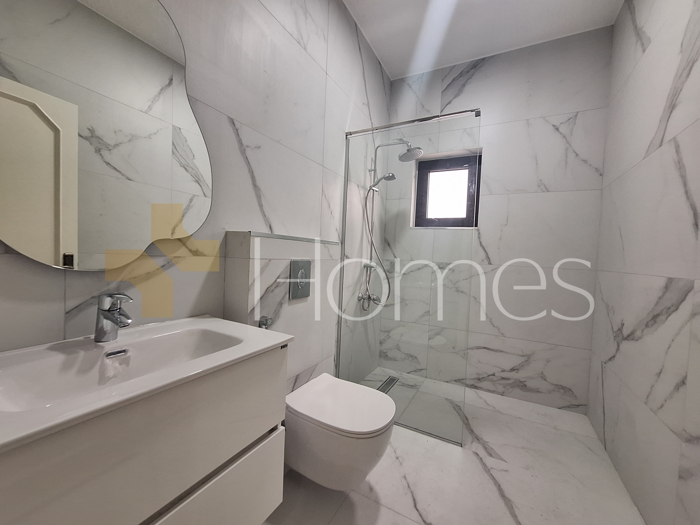 kitchen - porcelain floors - split air conditioning - heating - built-in wardrobes - security doors - wall hung toilets - electric window shutters - gypsum board decorations - shower enclosure - elevator - super deluxe finishing