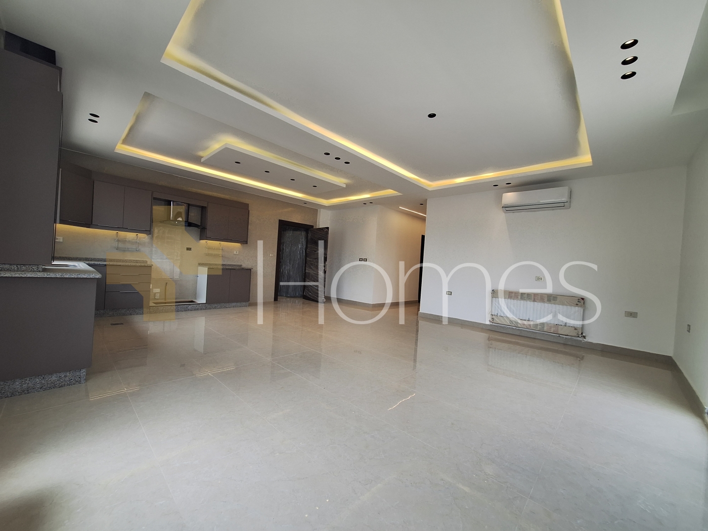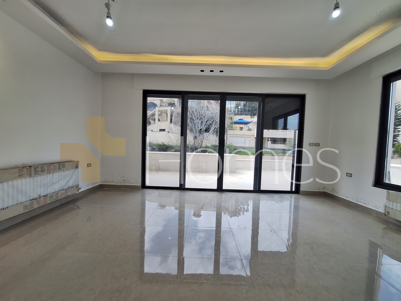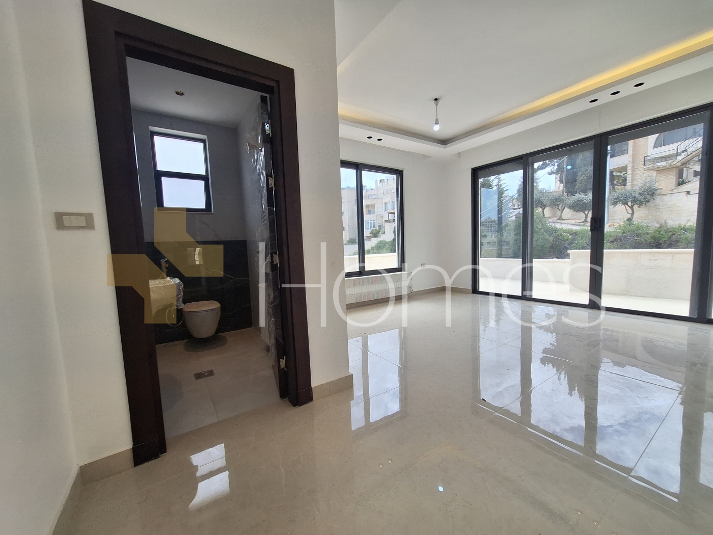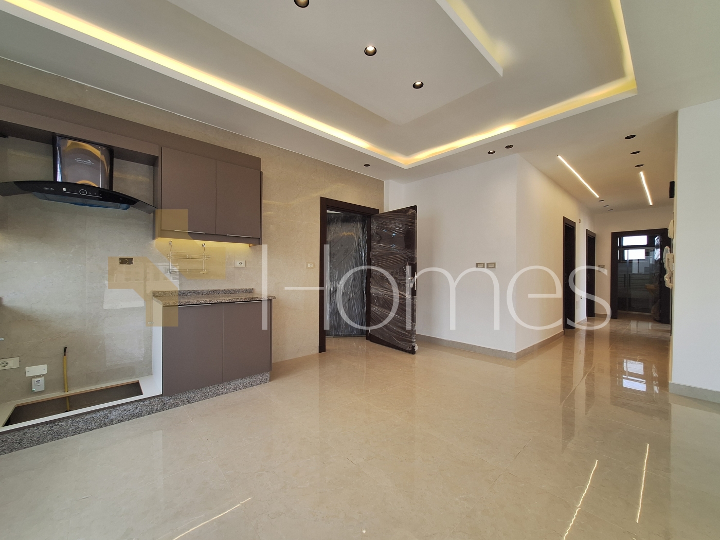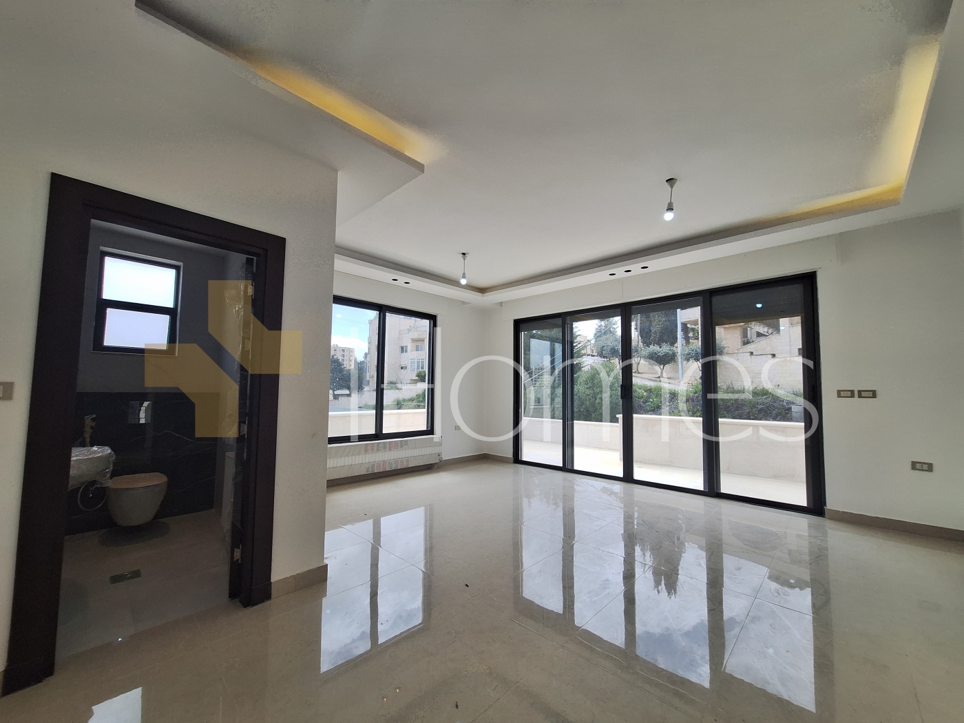 Porcelain floors - split air conditioning - gas heating - gypsum, wood, and stone decorations - wall-hung toilets - electric window shutters - shower enclosure - elevator - security doors - recessed lighting - double classes - super deluxe finishing