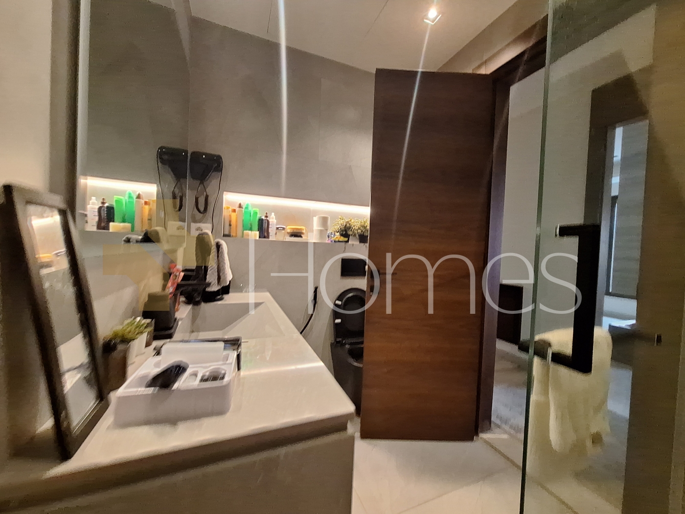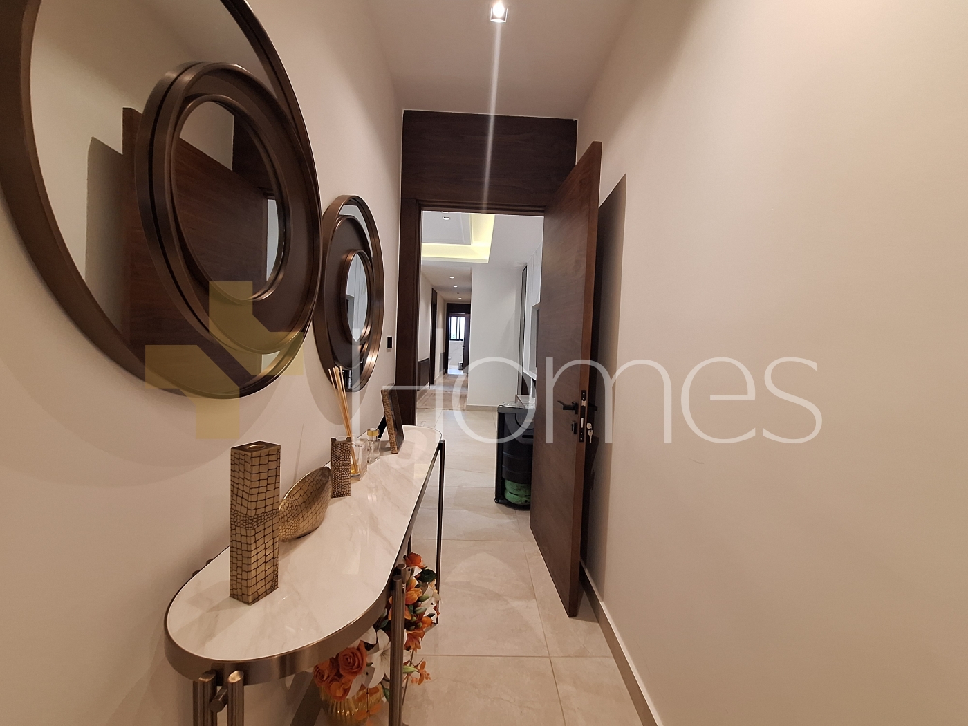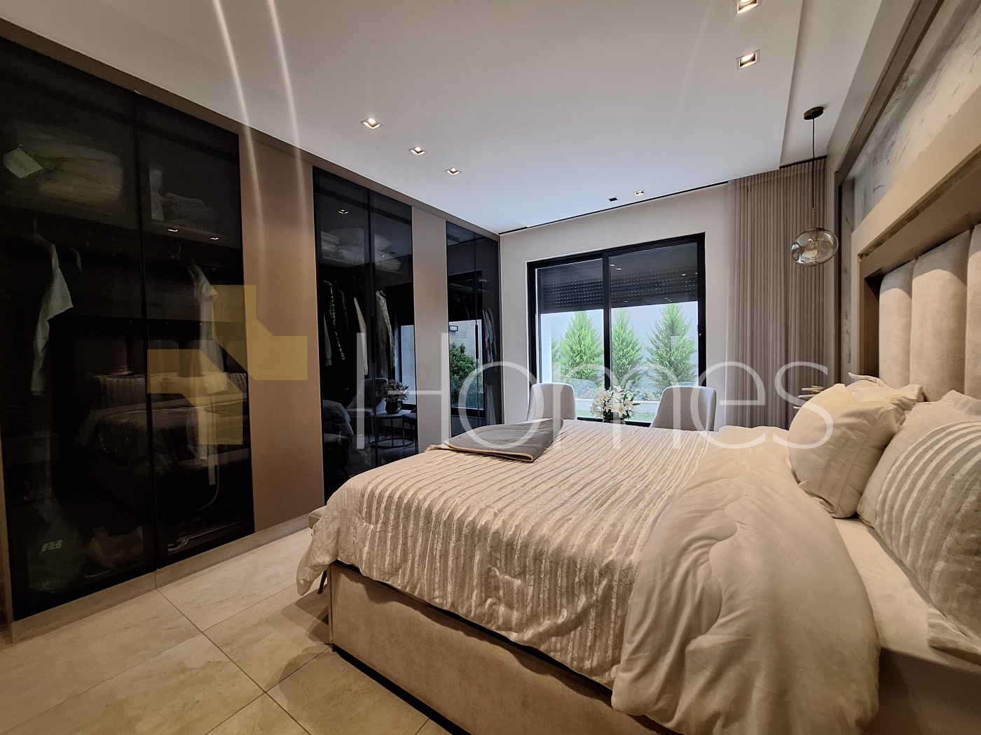 Marble floors - central air conditioning - gas underfloor heating - built-in wardrobes - electric window shutters - fireplace - security doors - gypsum board decorations - wall-hung toilets - shower enclosures - elevator - recessed lighting - double classes - super deluxe finishing