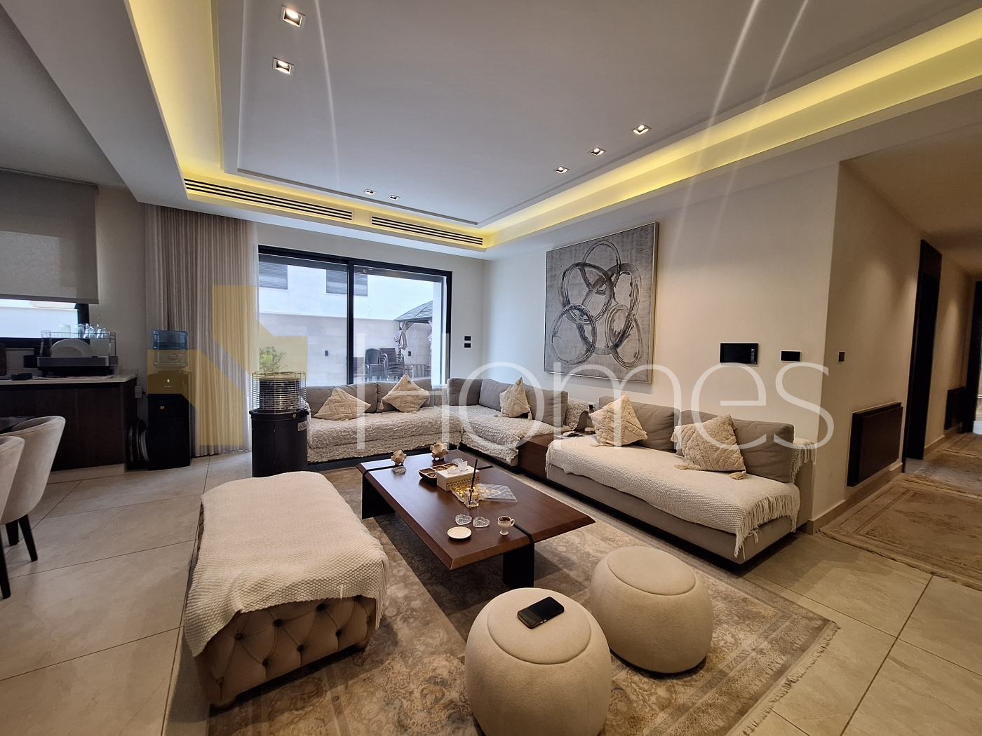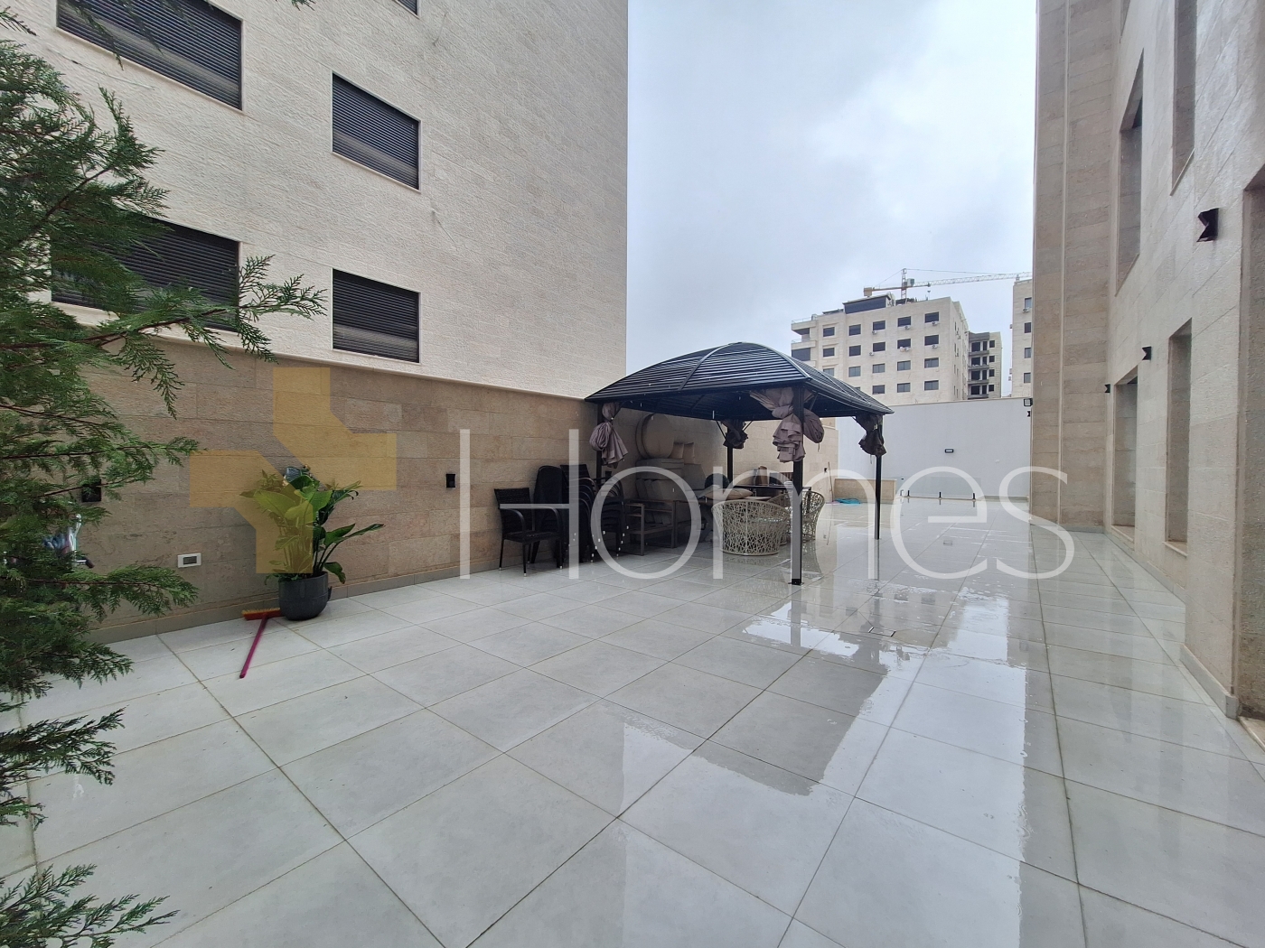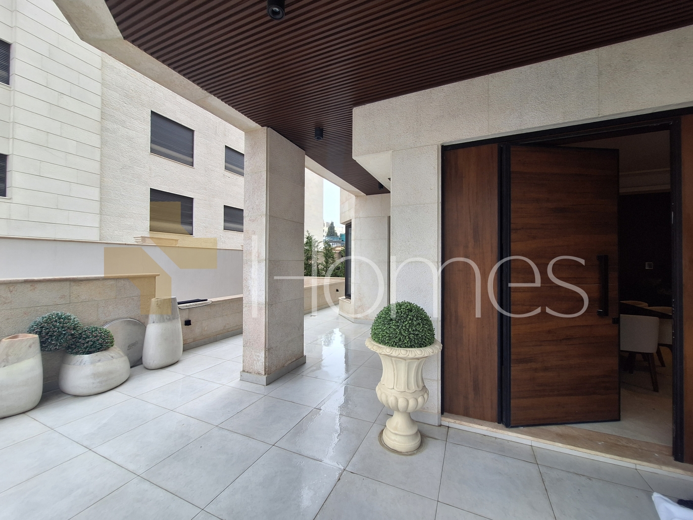 Ground floor apartment with a garden for rent in Khalda with a building area of 250m plus a 500m outdoor terrace