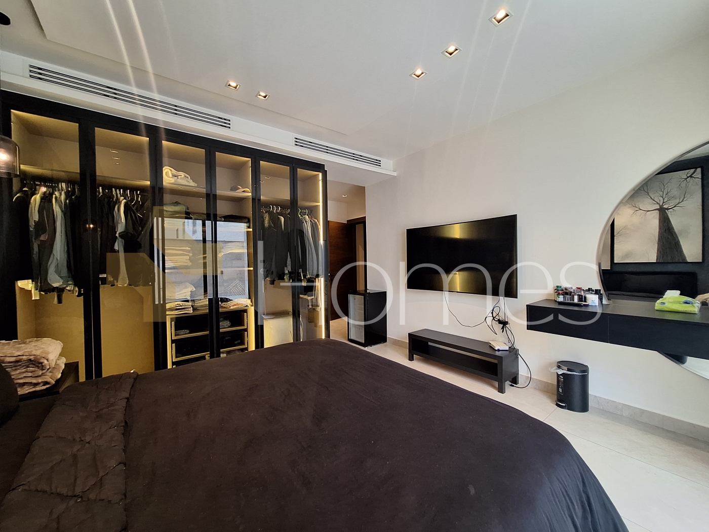 3 bedrooms (2 master) - 4 bathrooms - living room - salon - kitchen - garden - laundry room and maid's room - storage room - terrace - garage