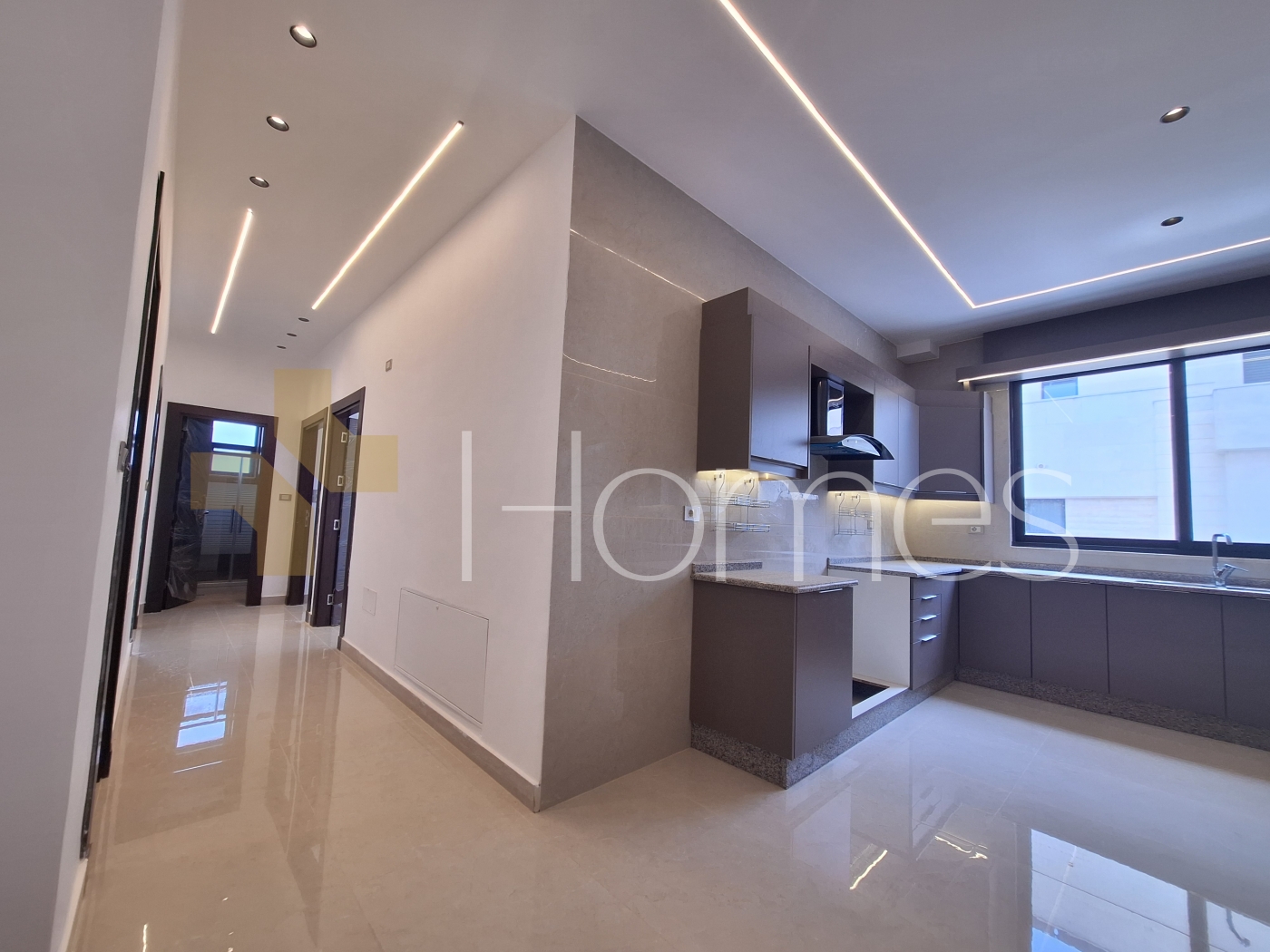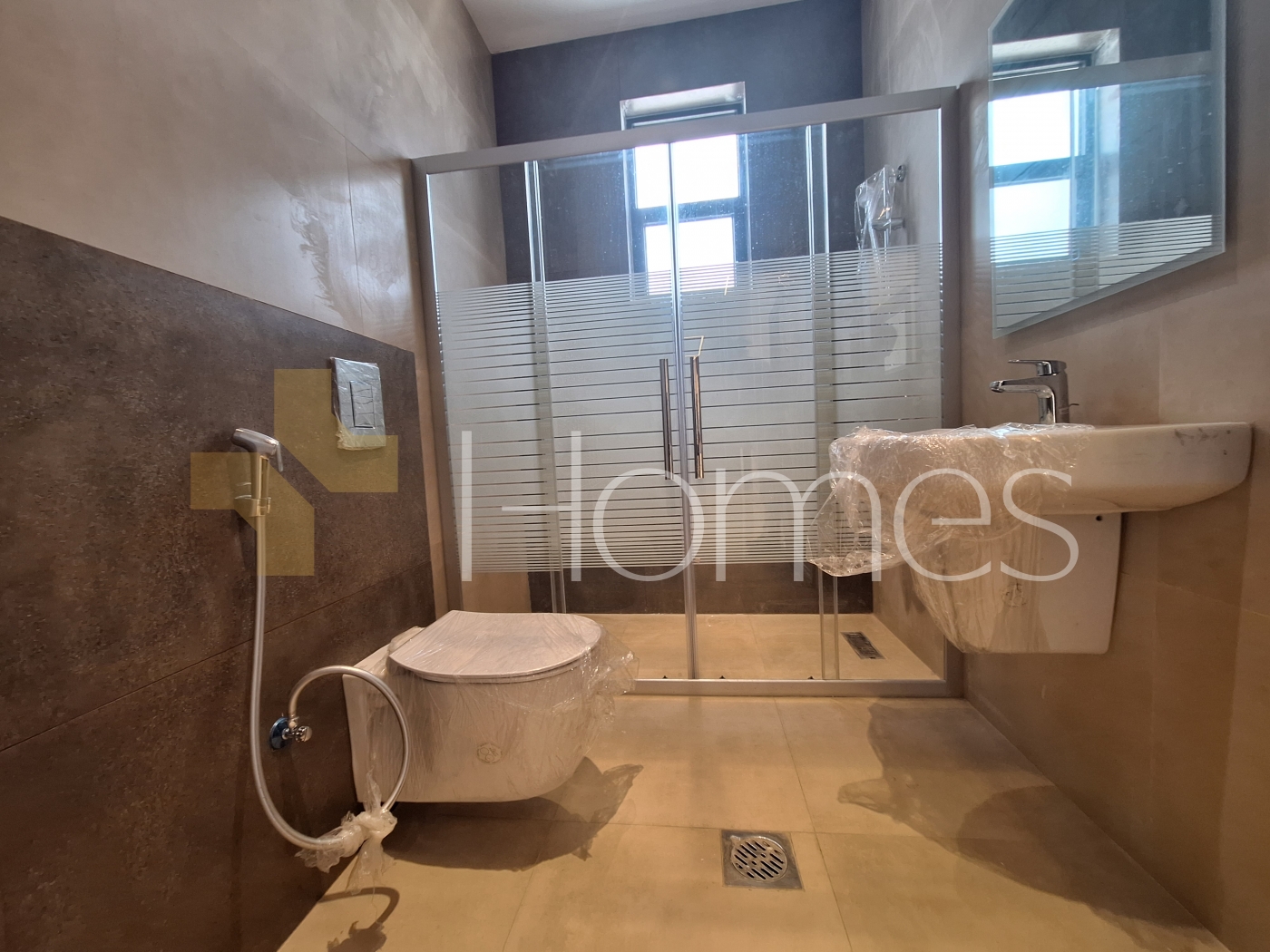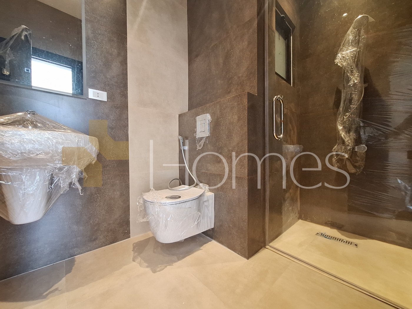 Porcelain floors - split air conditioning - gas heating - gypsum, wood, and stone decorations - wall-hung toilets - electric window shutters - shower enclosure - elevator - security doors - recessed lighting - double classes - super deluxe finishing