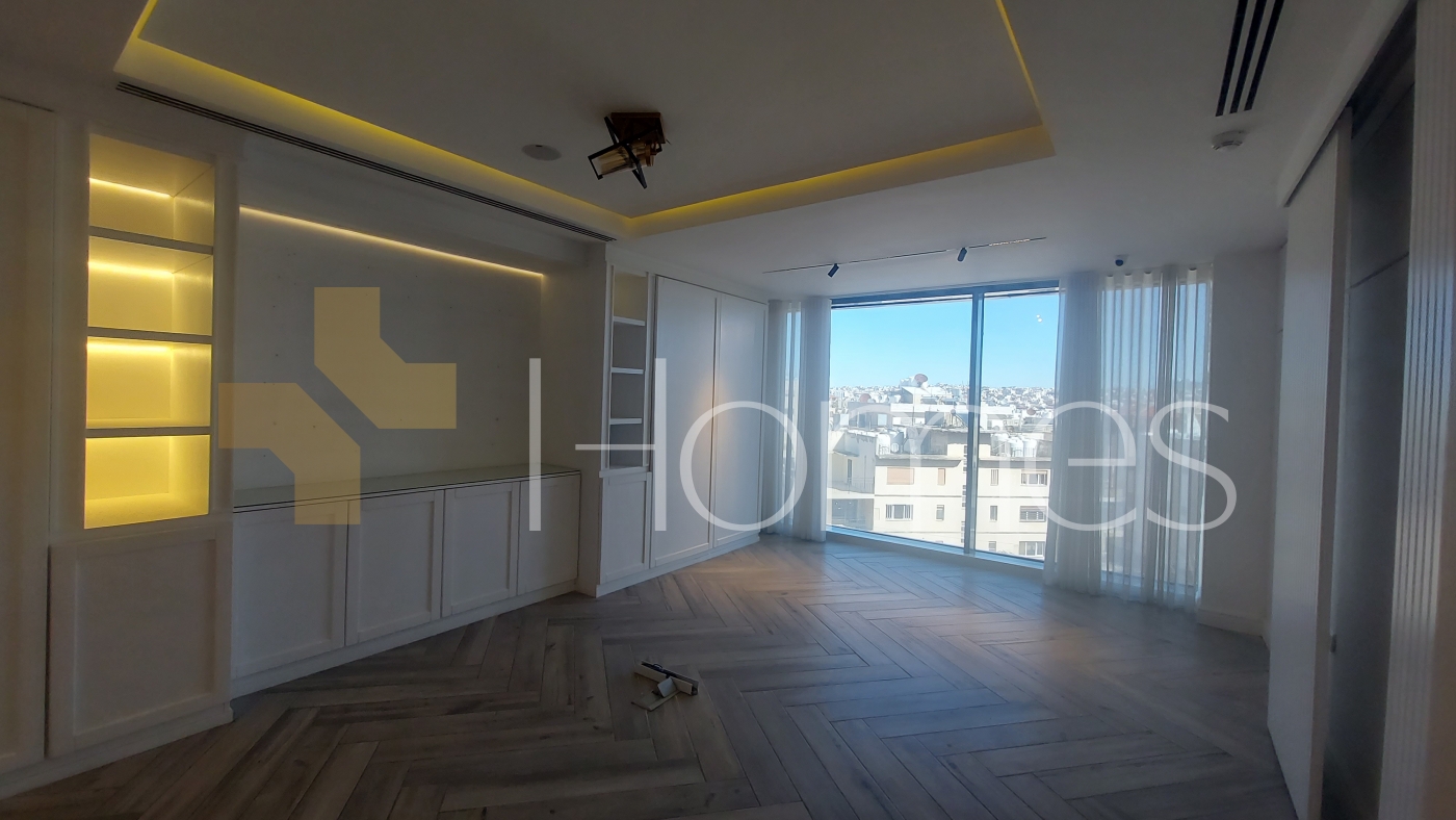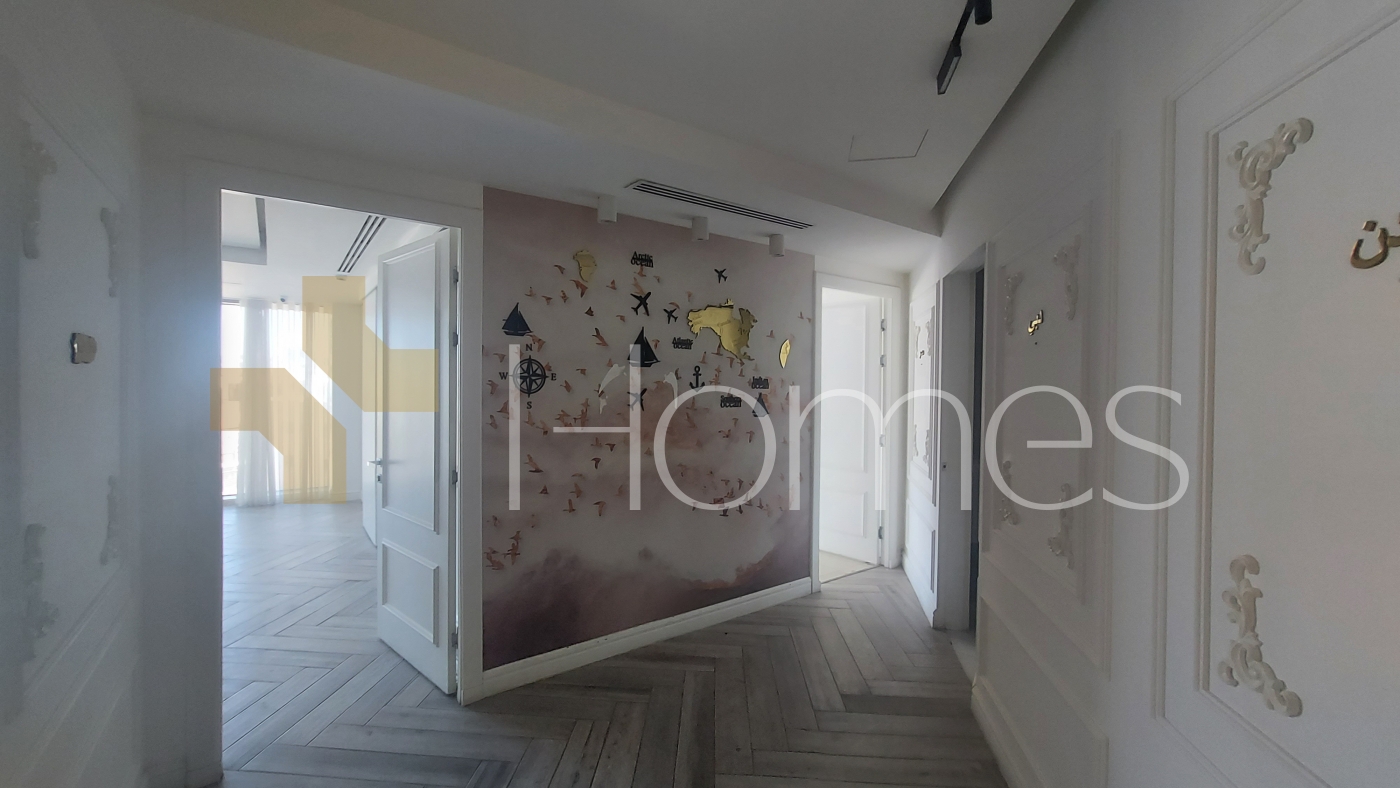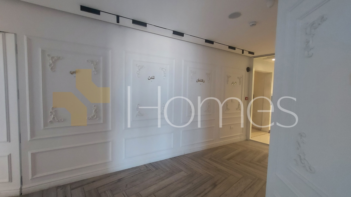 Very prime and strategic location in a luxurious and upscale building equipped with surveillance cameras - Super Deluxe finishing - Air conditioning units - Central heating - Gypsum and wood decorations - Spotlights - LED lighting - Parquet and ceramic flooring - Security system - Fire system
