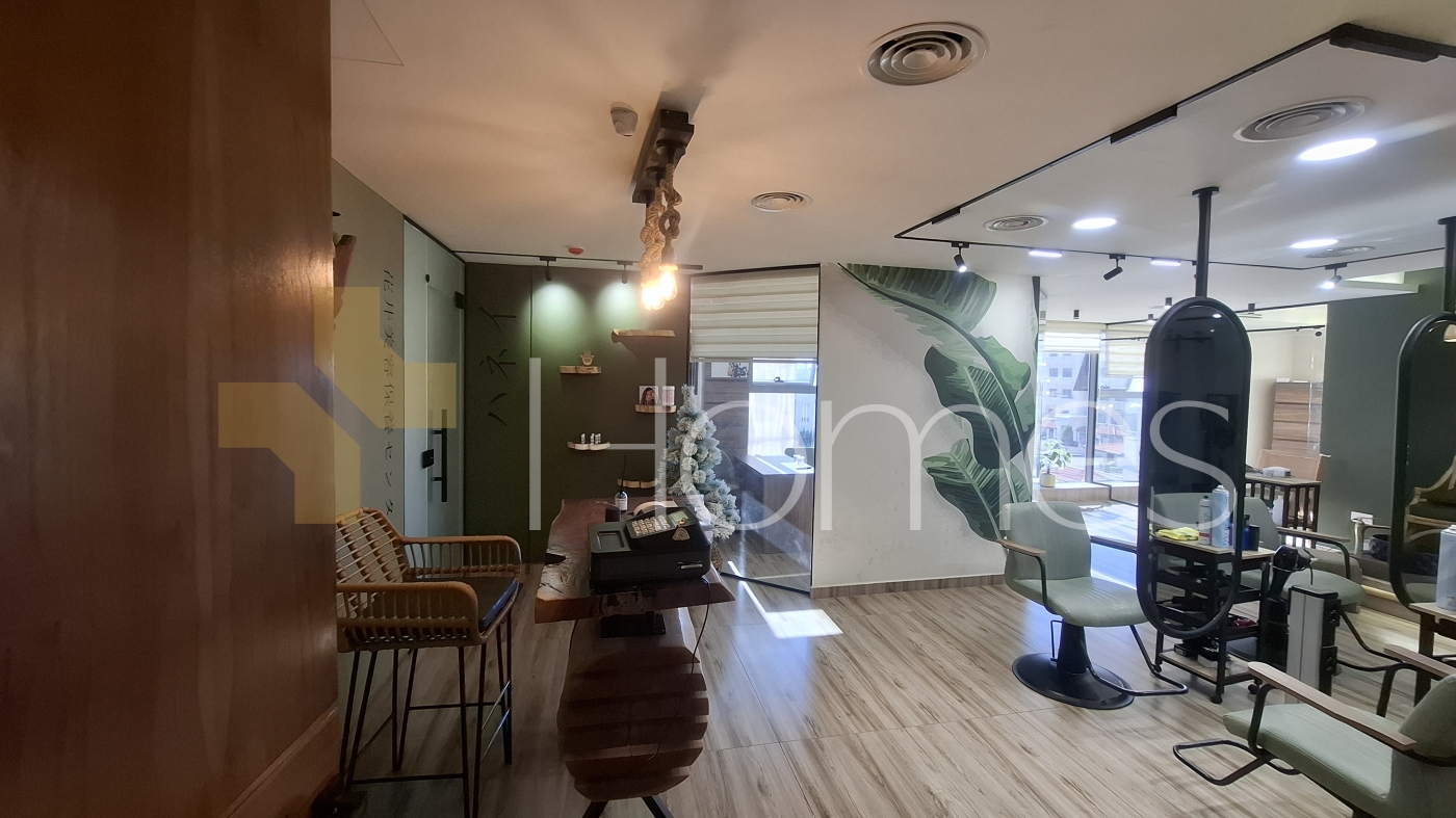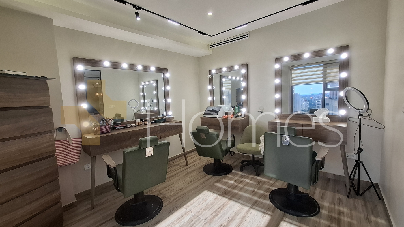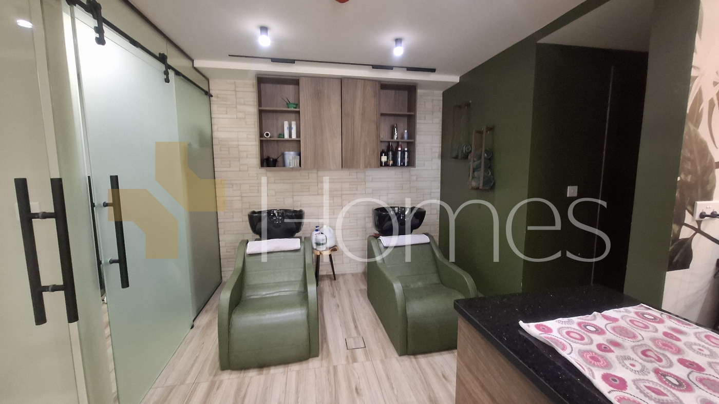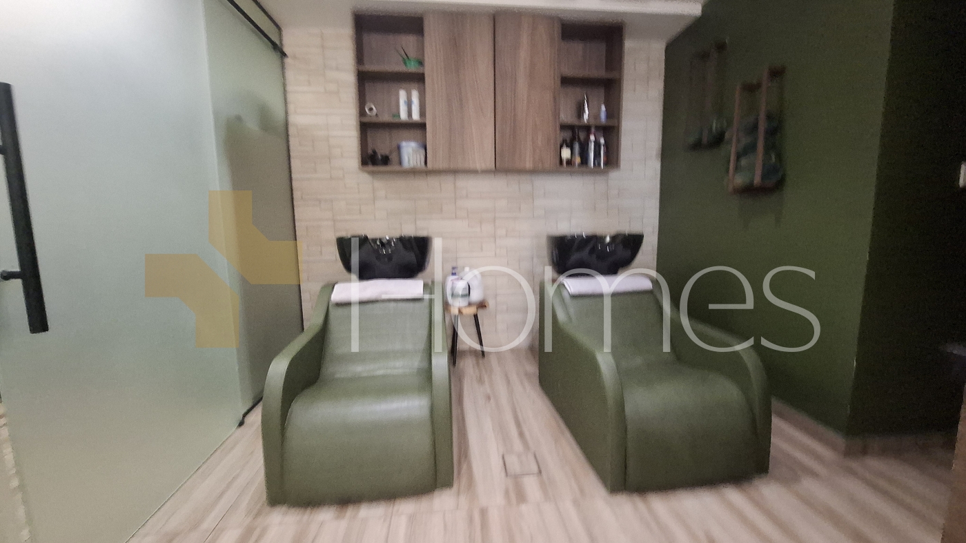Beauty center equipped ladies salon - a very distinguished and strategic location in a luxurious and well-serviced building - hair salon + pedicure and manicure area - makeup department - sound system + camera system - super deluxe finishes - gypsum decorations - air conditioning + central heating - spotlight lighting - fire system