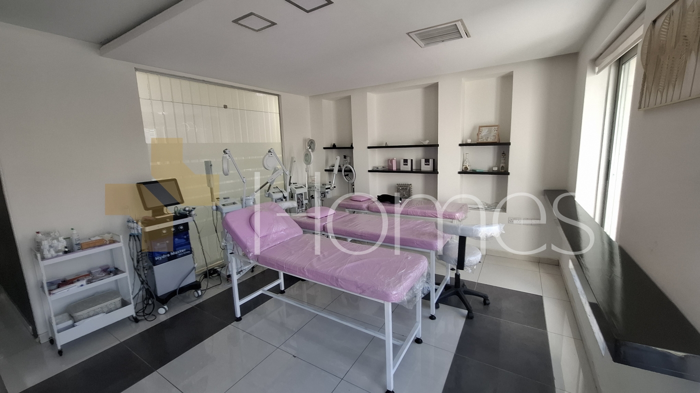 Beauty center equipped ladies salon - a very distinguished and strategic location in a luxurious and well-serviced building - hair salon + pedicure and manicure area - makeup department - sound system + camera system - super deluxe finishes - gypsum decorations - air conditioning + central heating - spotlight lighting - fire system