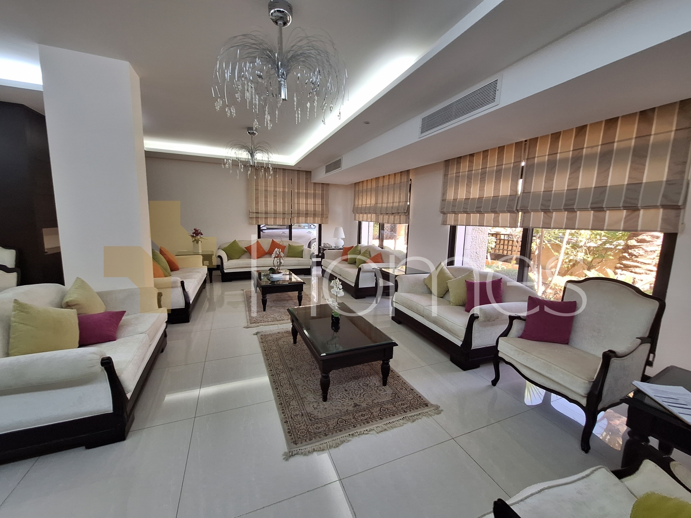 Marble floors - Central air conditioning - Underfloor heating - wall hung bathrooms - Electric window shatters - Water well - security cameras - Hidden lighting + LED lighting + Spotlights - Double glass - Located in a class and quiet neighborhood