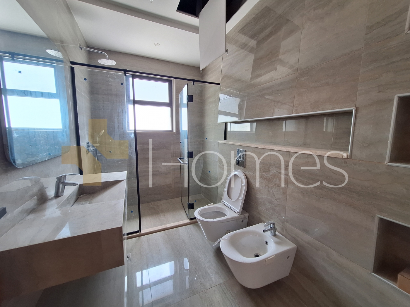 Porcelain flooring - Central air conditioning - Underfloor gas heating - Built-in wardrobes - Gypsum, wood, and stone decorations - Fireplace - Electric window shutters - suspended toilets - Elevator - Security doors - Shower enclosures - Security cameras - Concealed lighting - Double classes - Super deluxe finishing