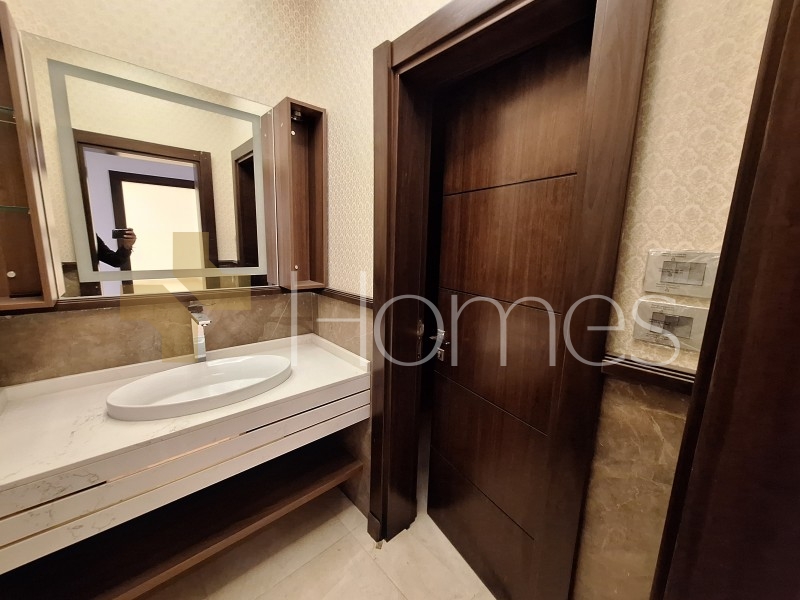 Ceramic + marble floors - central air conditioning + units - underfloor heating - gypsum + wood + stone decorations - suspended bathrooms - electric window shatters - shower box - elevator - security doors - hidden lighting - double glass - super deluxe finishes