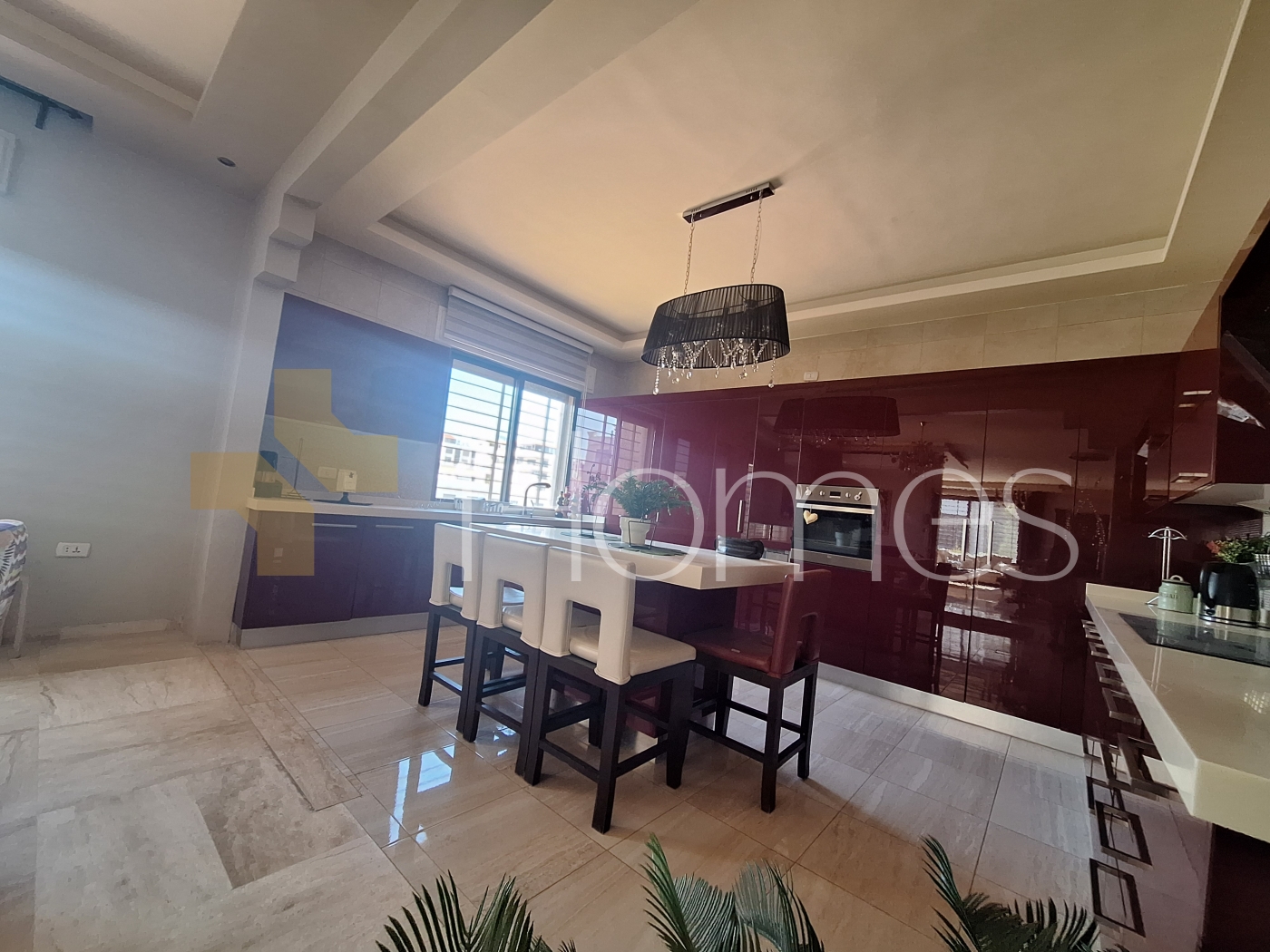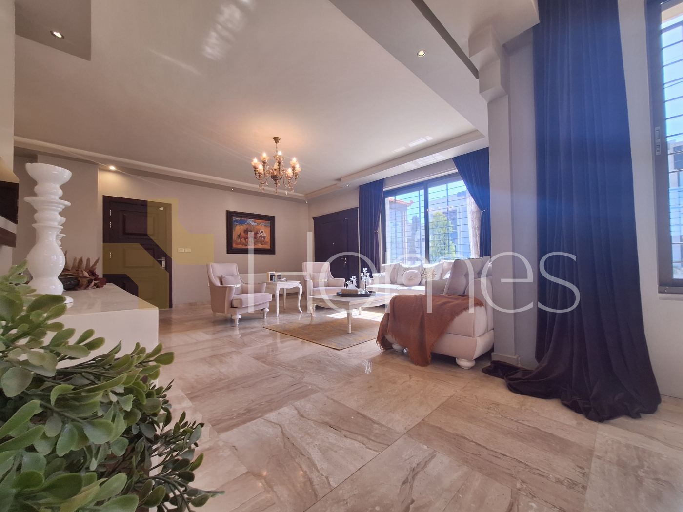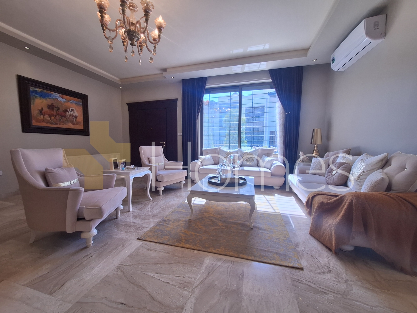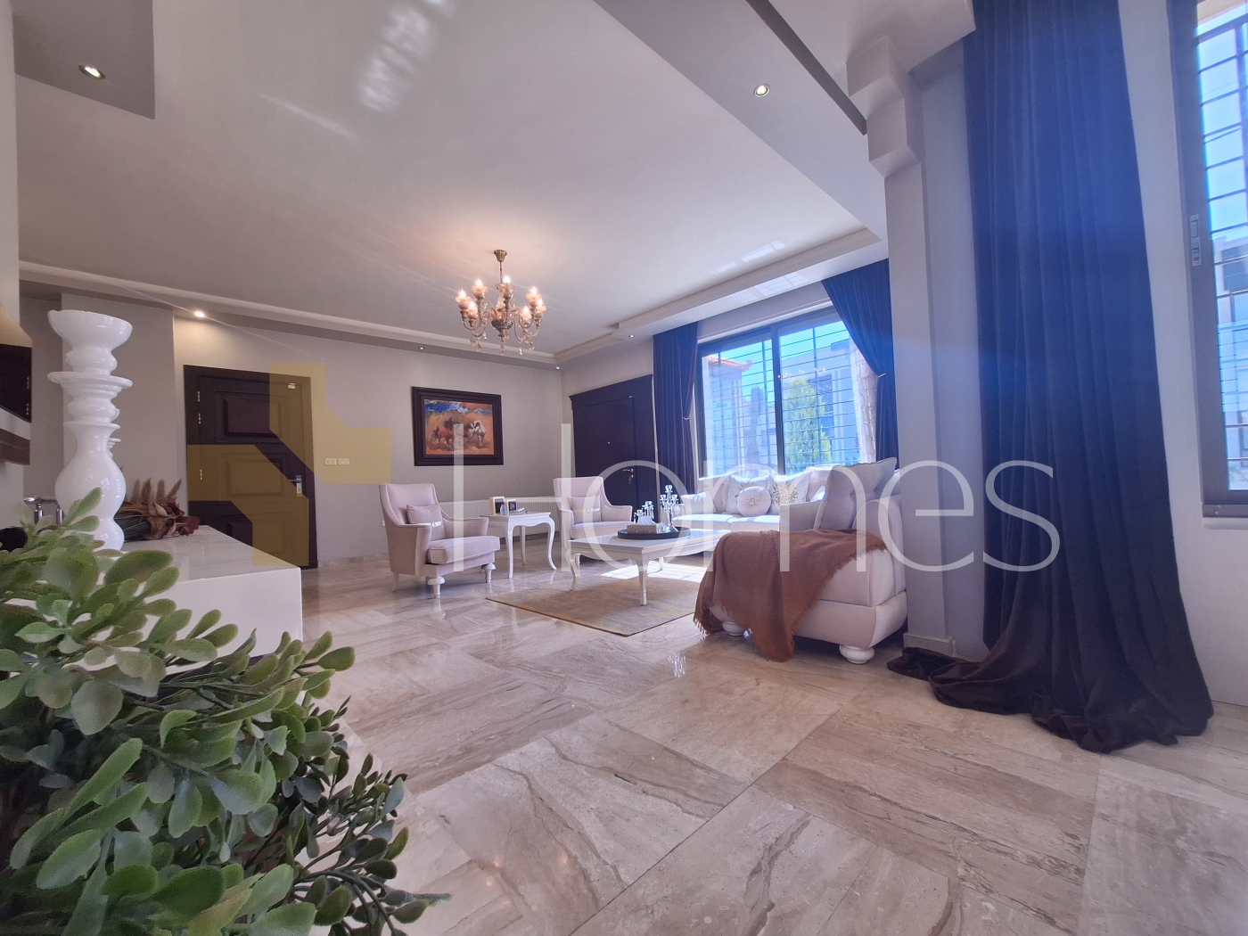 Duplex ground floor apartment with garden for sale in Khalda - Al-Hamshari - with a total area of 255m plus an outdoor area of 90m (garden + terrace) and a private garage